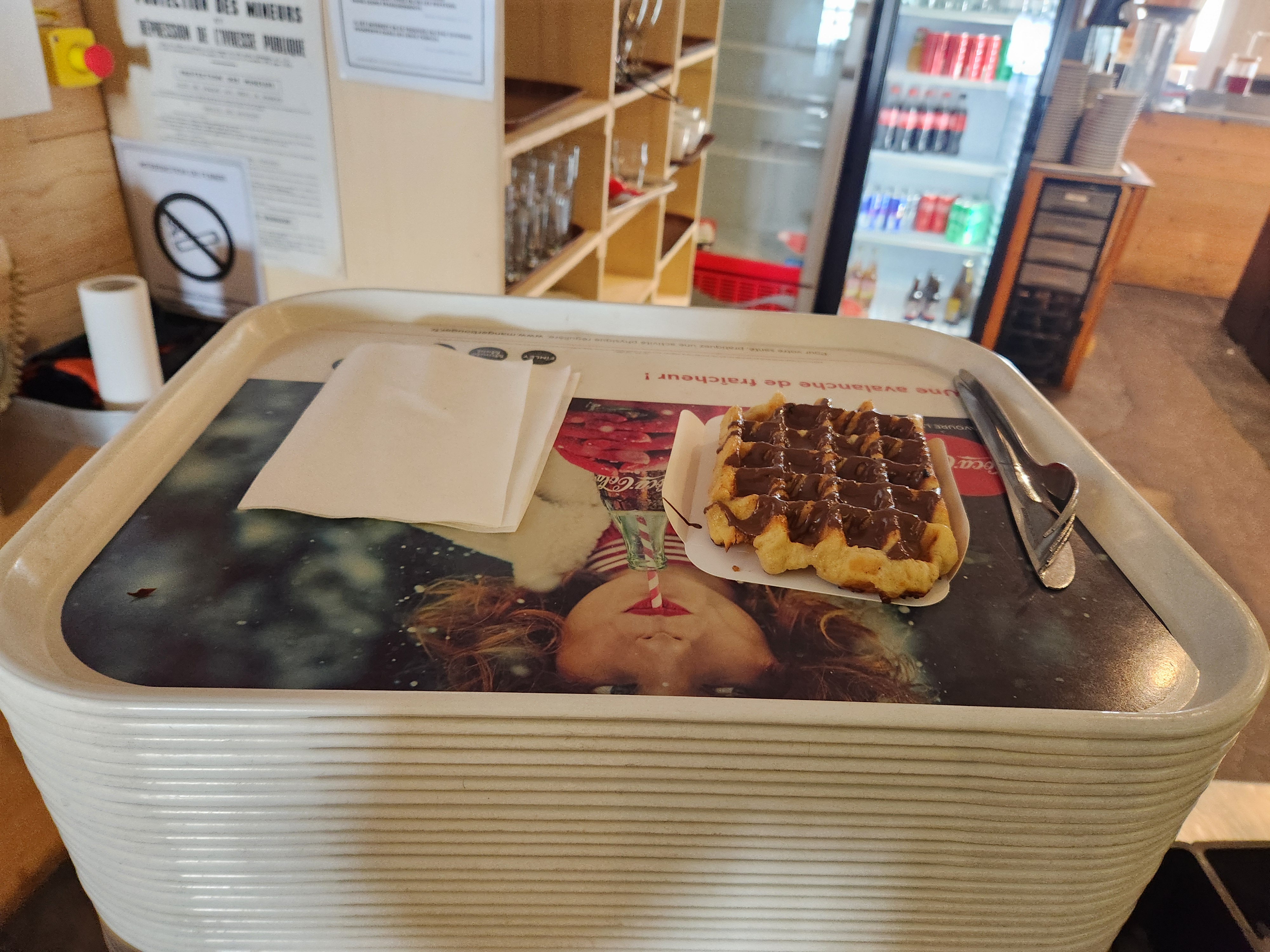 Je suis venu manger qu'une gaufre au chocolat. Nous sommes d'abord venu à 13h40. On nous a dit que les gaufres étaient servis qu'à 14h, étrange mais pourquoi pas. On revient commander nos gaufres à 14h. C'était que du sucre, j'ai pas pu la finir tellement elle était sucrée. Pourtant ça faisait 4h que je faisais du ski.