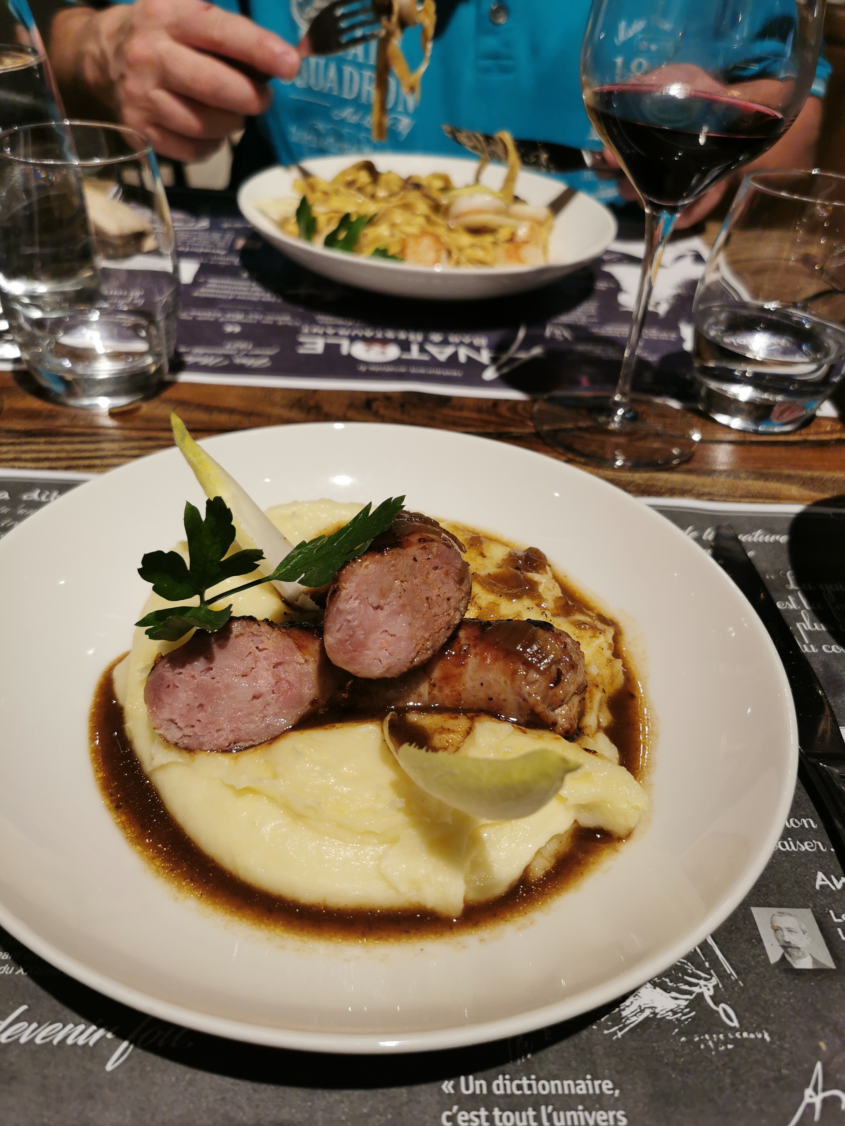 Accueil hyper sympa, une dizaine de bulots sauce aïoli en entrée, nous attaquons nos repas, pièce du boucher pour Madame avec frites, légumes et aligot. Pour moi aligot saucisse, que du bon, rien à dire... donc si vous passez par Clermont-Ferrand et au même endroit, il y a hôtel BB...