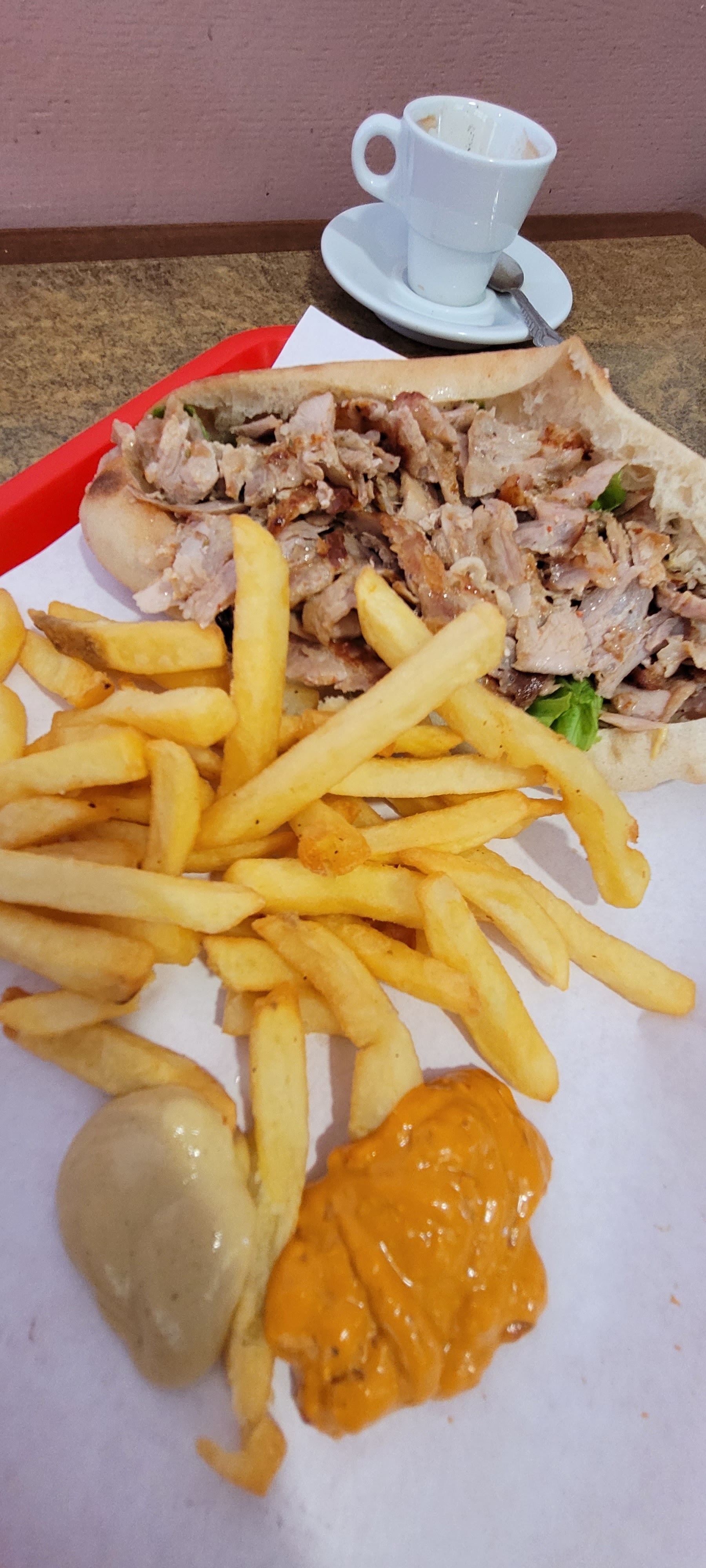 Le tacos est tout petit, la viande a une odeur bizarre et n'est pas bonne et grasse. Les frites industrielles sont pas très bonnes. Je n'ai même pas pu finir mon kebab tellement il me filait la nausée...