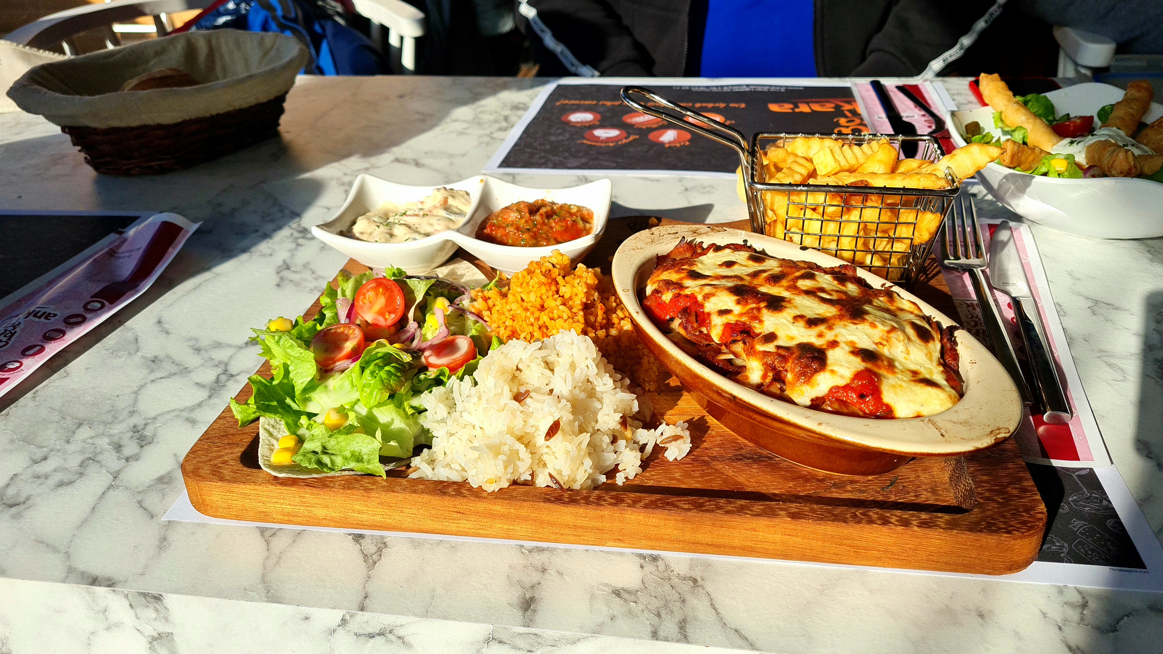 Ce restaurant turc propose une expérience inoubliable. L'ambiance y est chaleureuse et invitante, avec un décor qui évoque le raffinement et favorise la détente. Le personnel offre un service impeccable, accompagné de sourires sincères. Le lieu est d'une propreté exemplaire, et les sièges sont extrêmement confortables, ce qui rend la visite très agréable. Le restaurant est aussi adapté aux enfants, proposant des chaises hautes confortables pour eux. La nourriture est globalement acceptable pour le prix. Cependant, j'ai noté que le plat de viandes mixtes était particulièrement salé, ce qui a un peu gâché cette partie du repas. Malgré cela, je serais ravi de revenir et je recommande cet endroit.