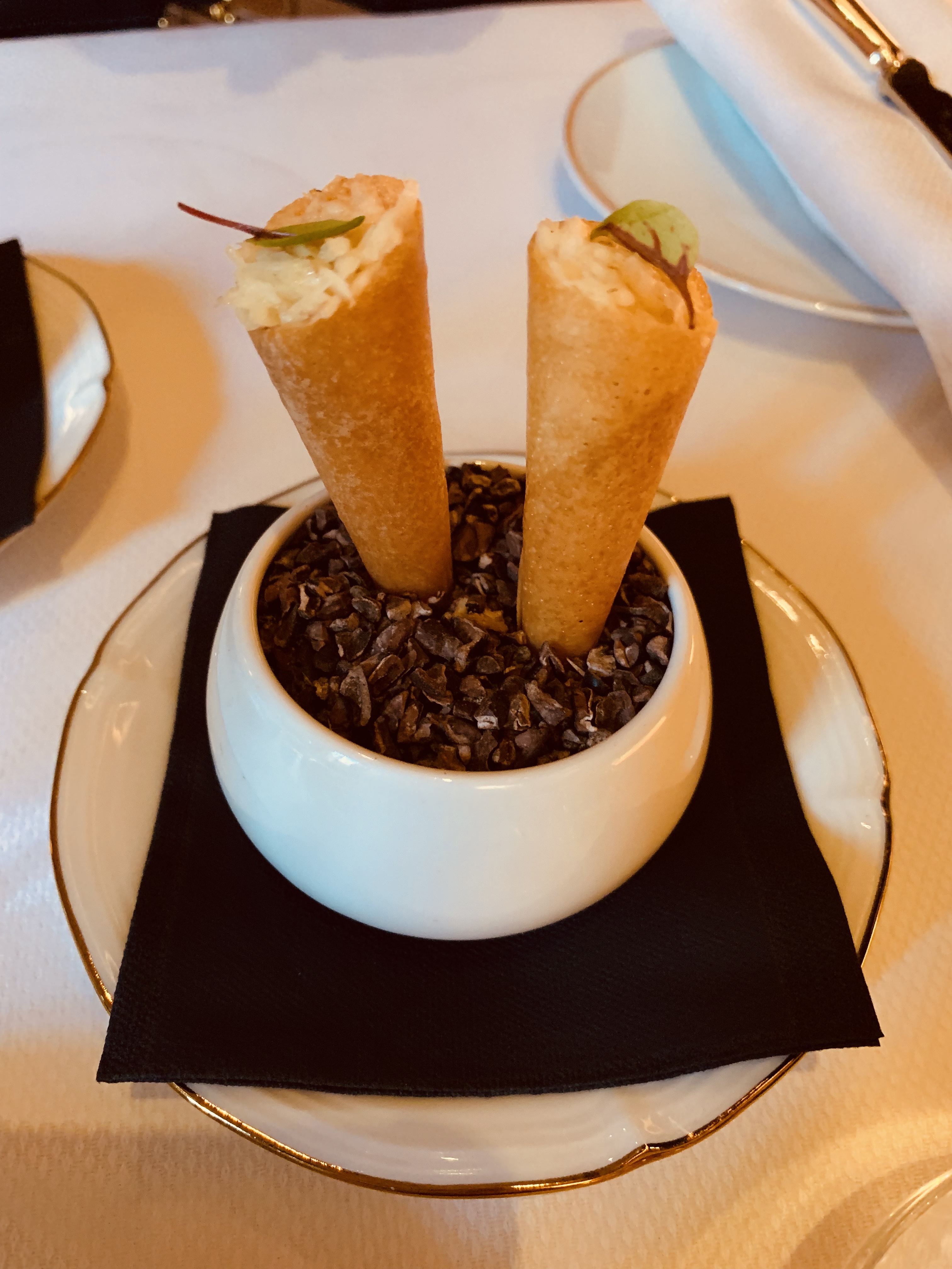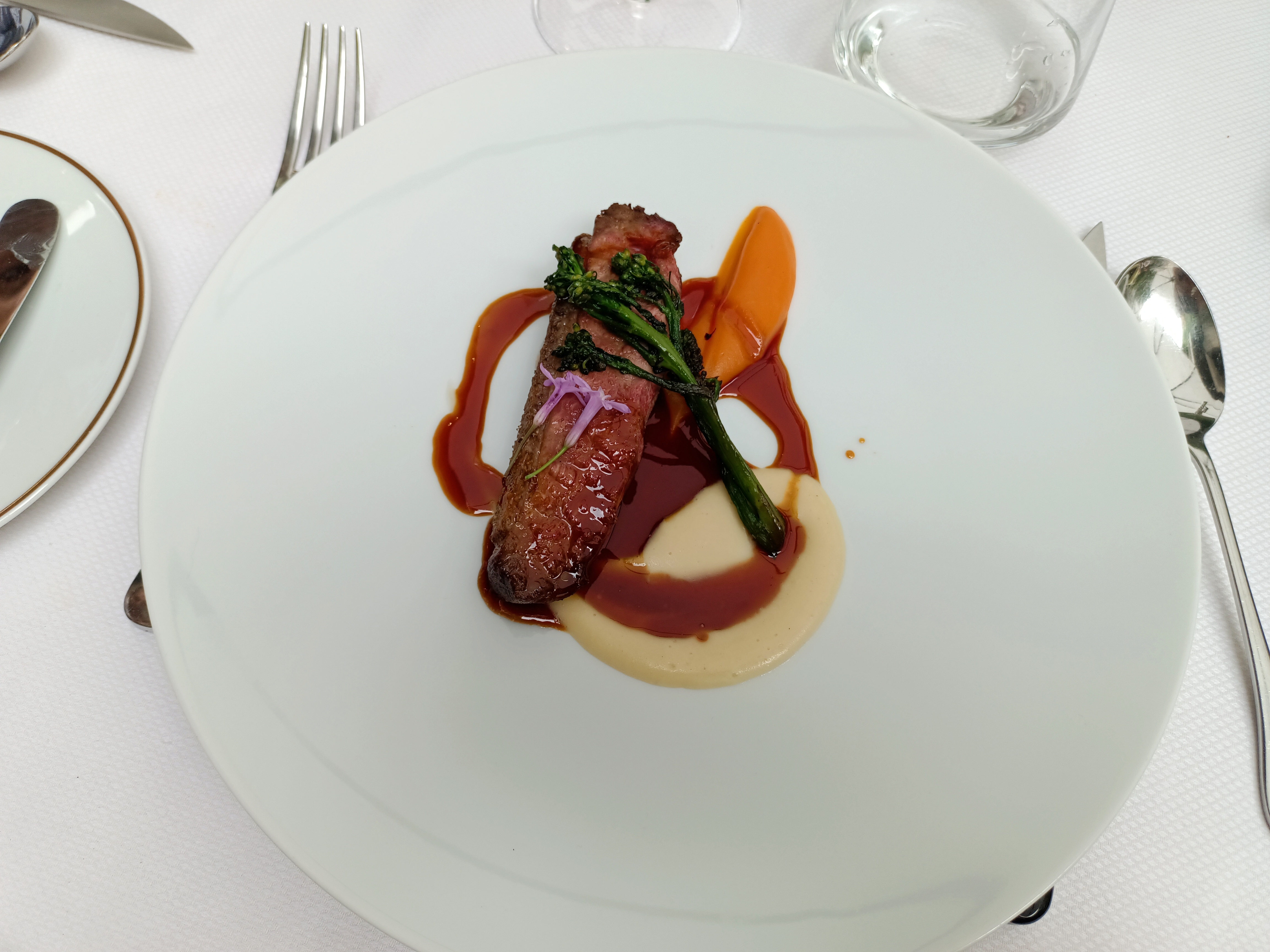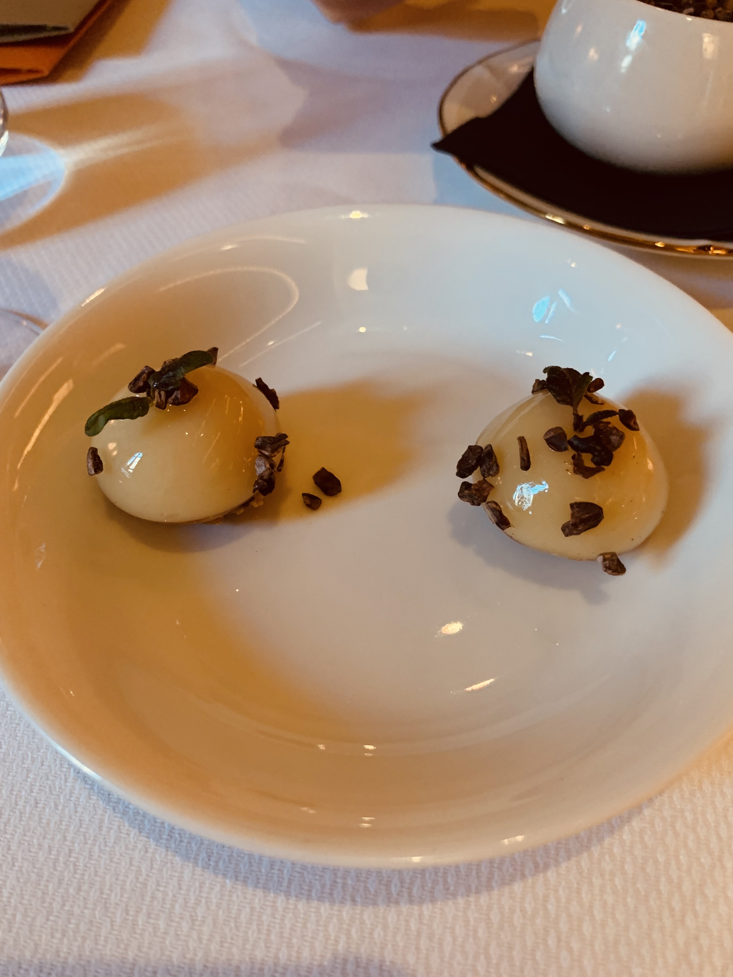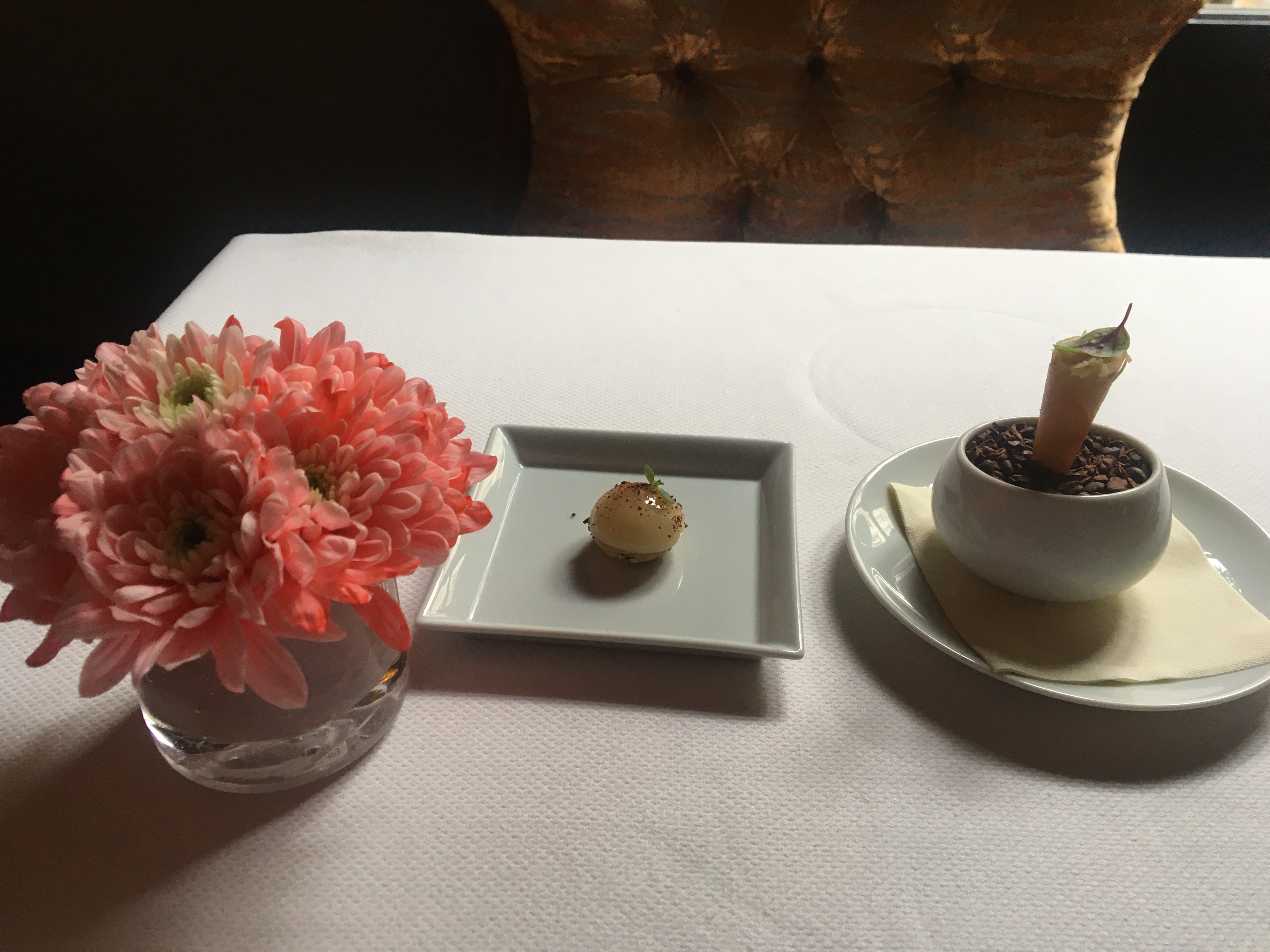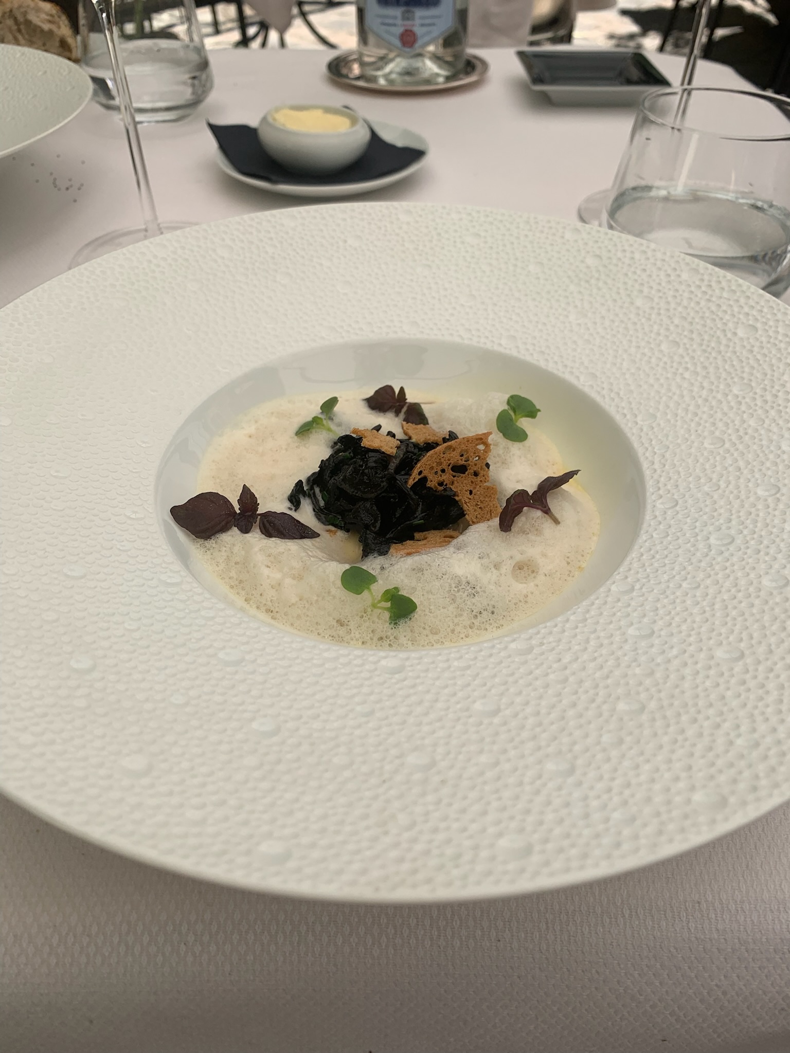 nous avons choisi le menu surprise du chef les yeux fermés. un bonheur. le tout accompagné par des vins au verre sélectionnés par le somelier. top dans un cadre super beau. final à l’open bar. une soirée mémorable