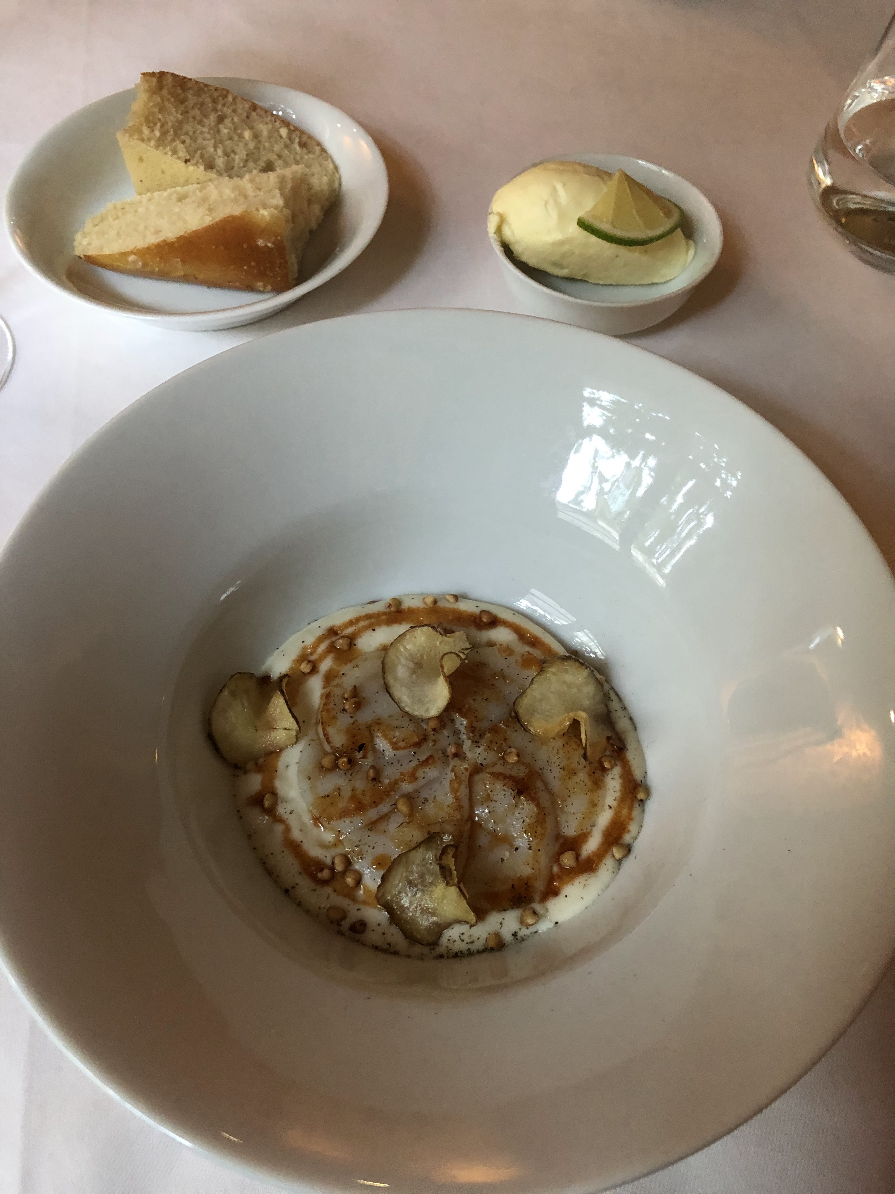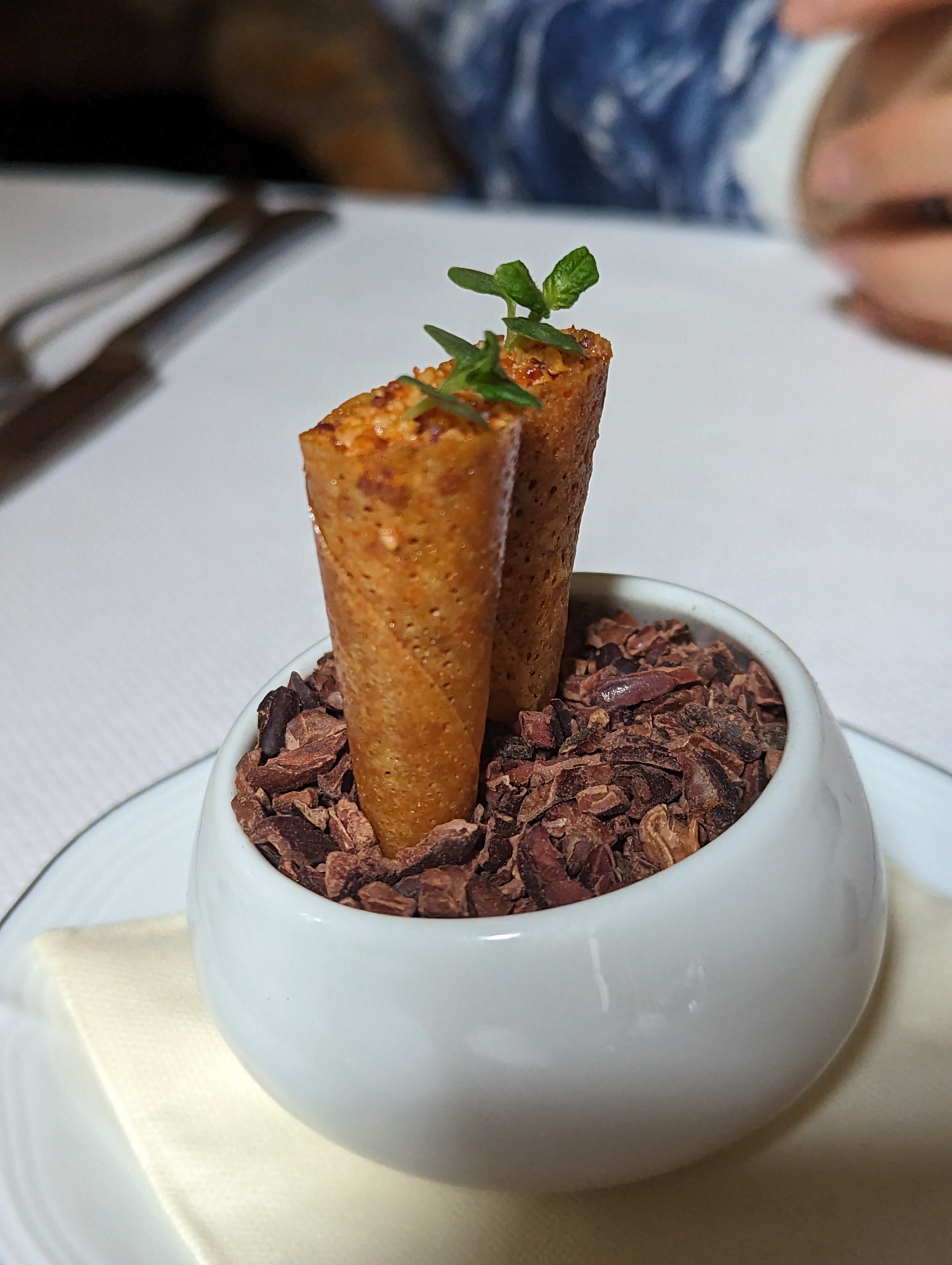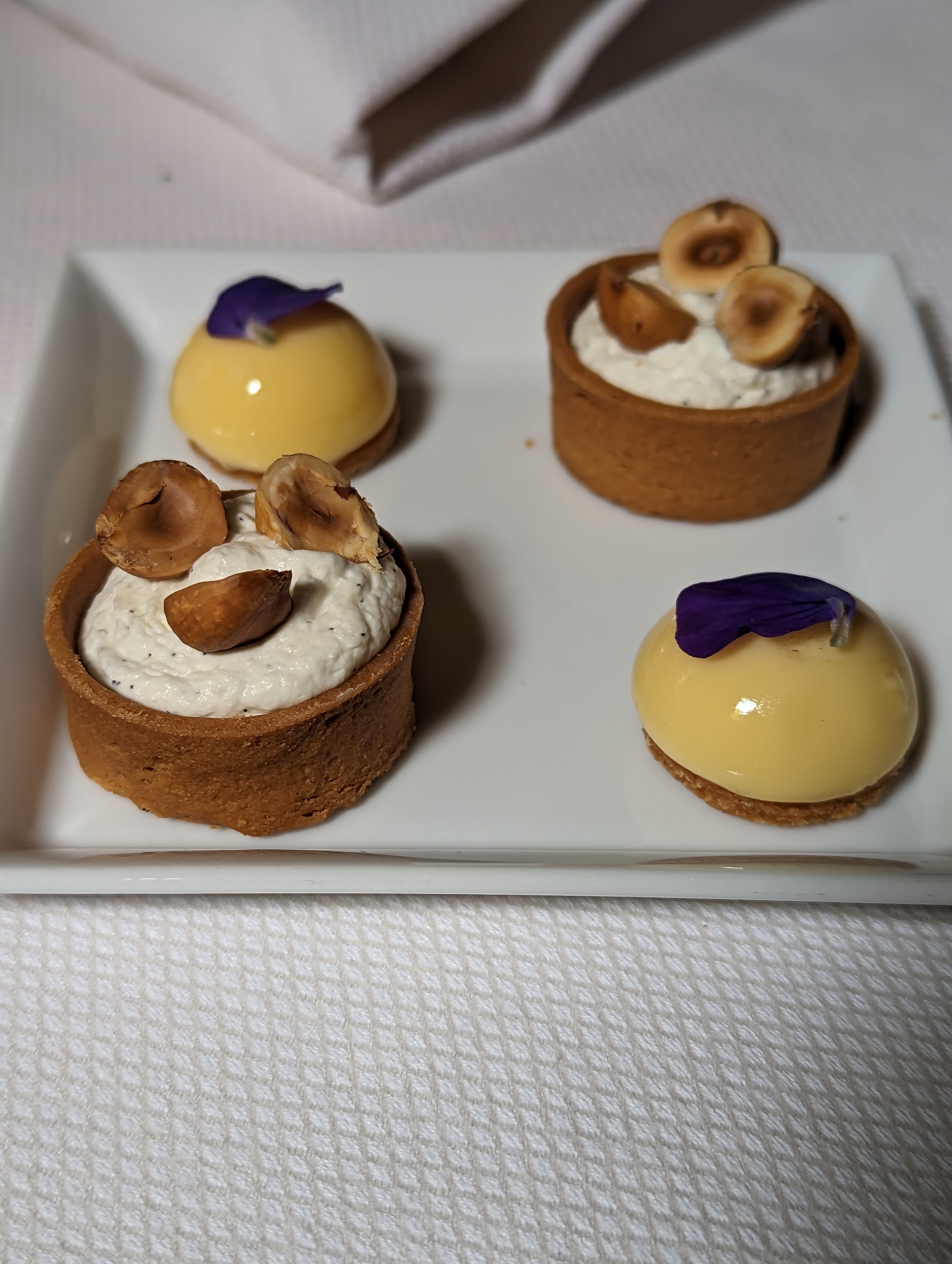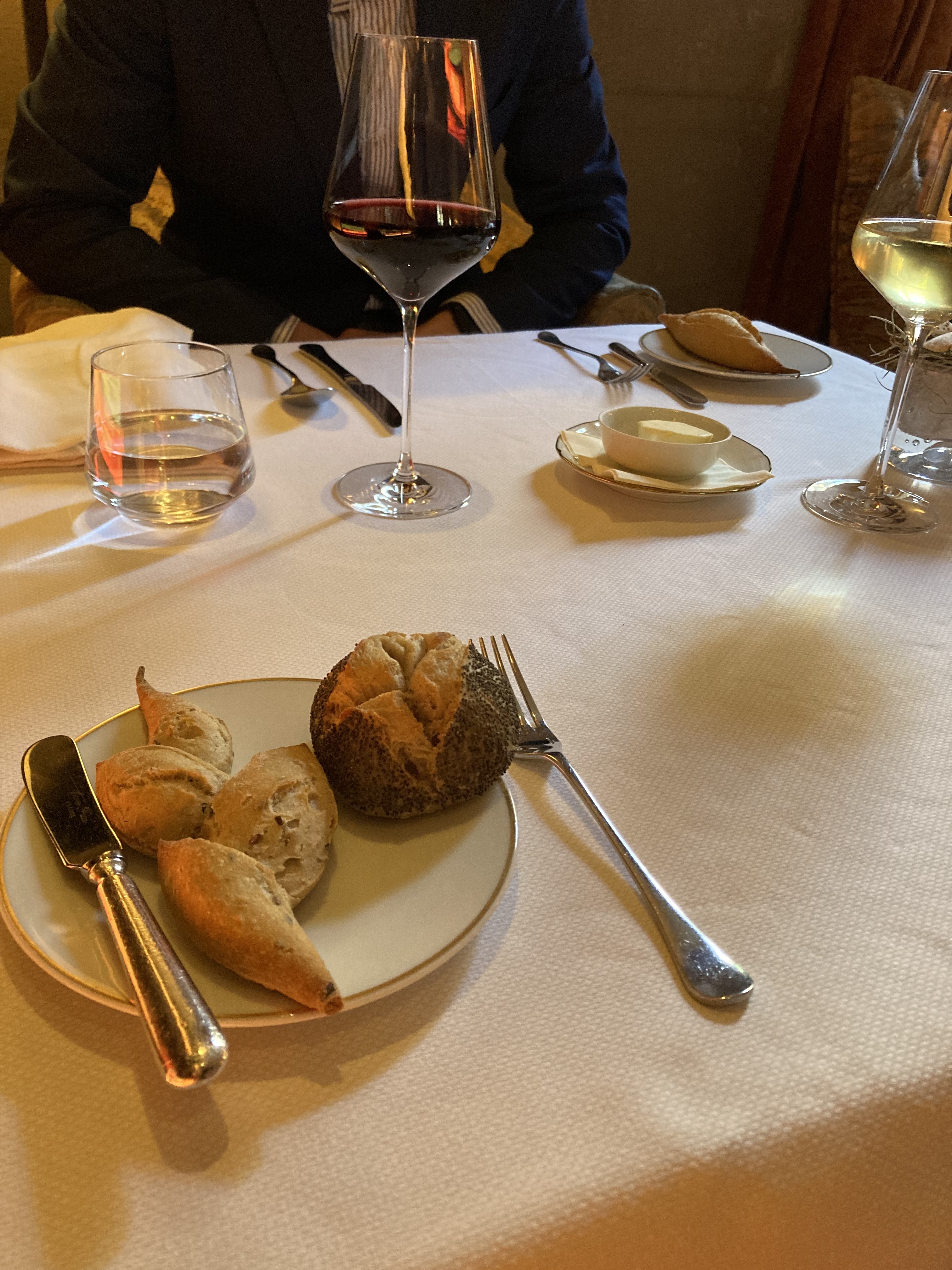 nous avons choisi le menu surprise du chef les yeux fermés. un bonheur. le tout accompagné par des vins au verre sélectionnés par le somelier. top dans un cadre super beau. final à l’open bar. une soirée mémorable