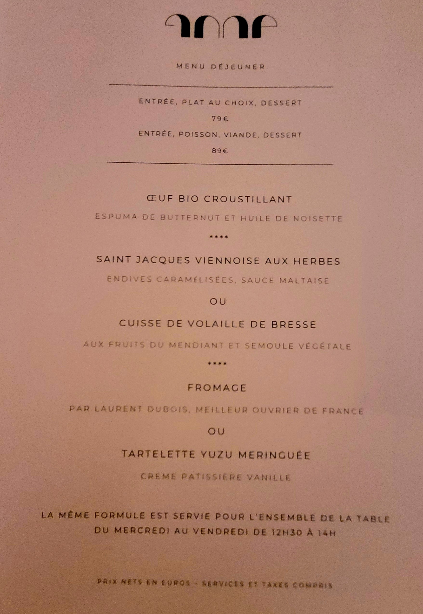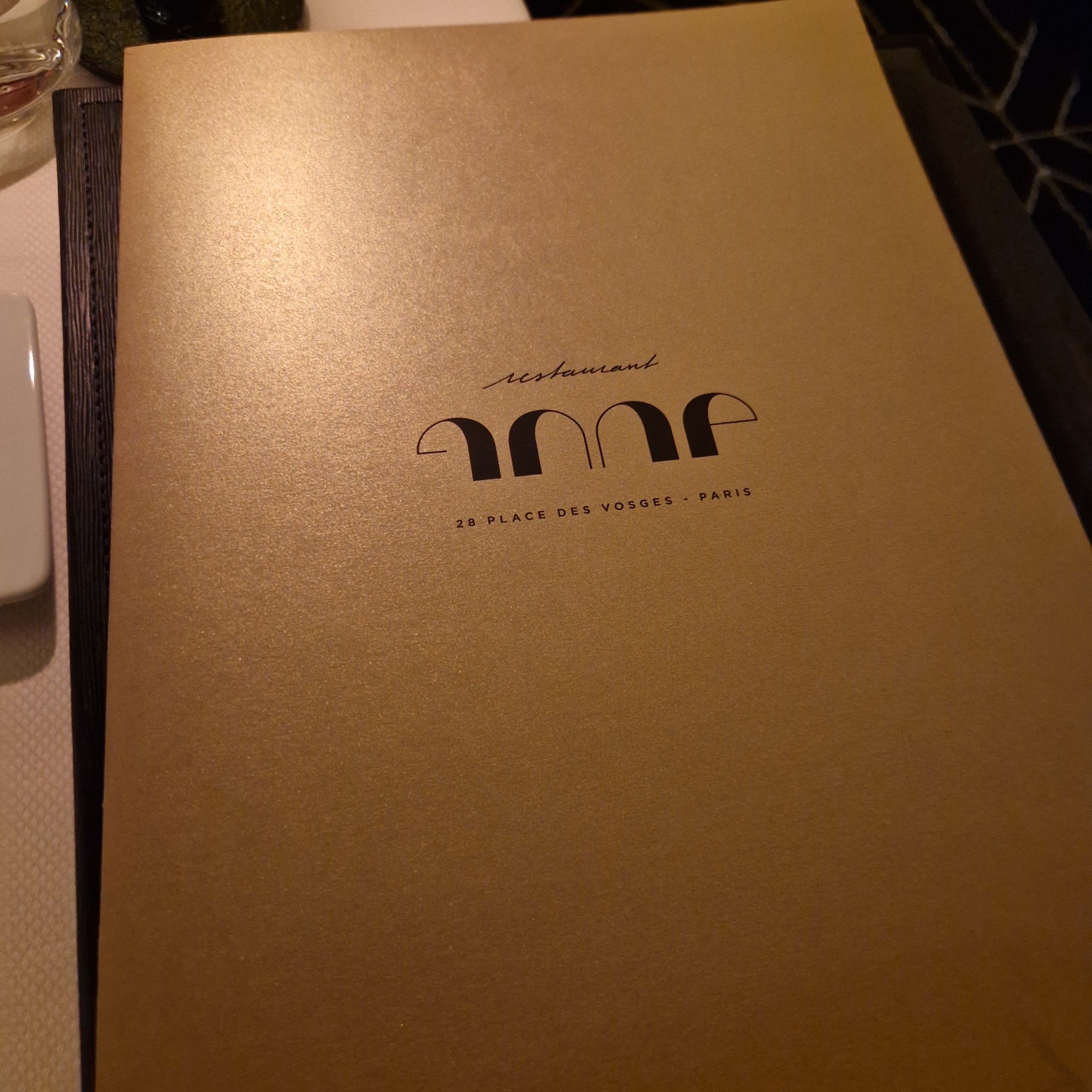 Au cœur de la place des Vosges, nous avons découvert ce restaurant Anne signé Mathieu Pacaud. Dans ce lieu très beau, nous avons pu déguster une excellente cuisine dans un menu carte blanche dédié au poisson. Service irréprochable et chaleureux. Cuisine digne de son rang. Chaque plat était une délicieuse découverte, le tout clos par un dessert que nous avons adoré. Mention spéciale donc, pour le soufflet au chocolat et sa boule de glace. Je recommande ce restaurant étoilé !