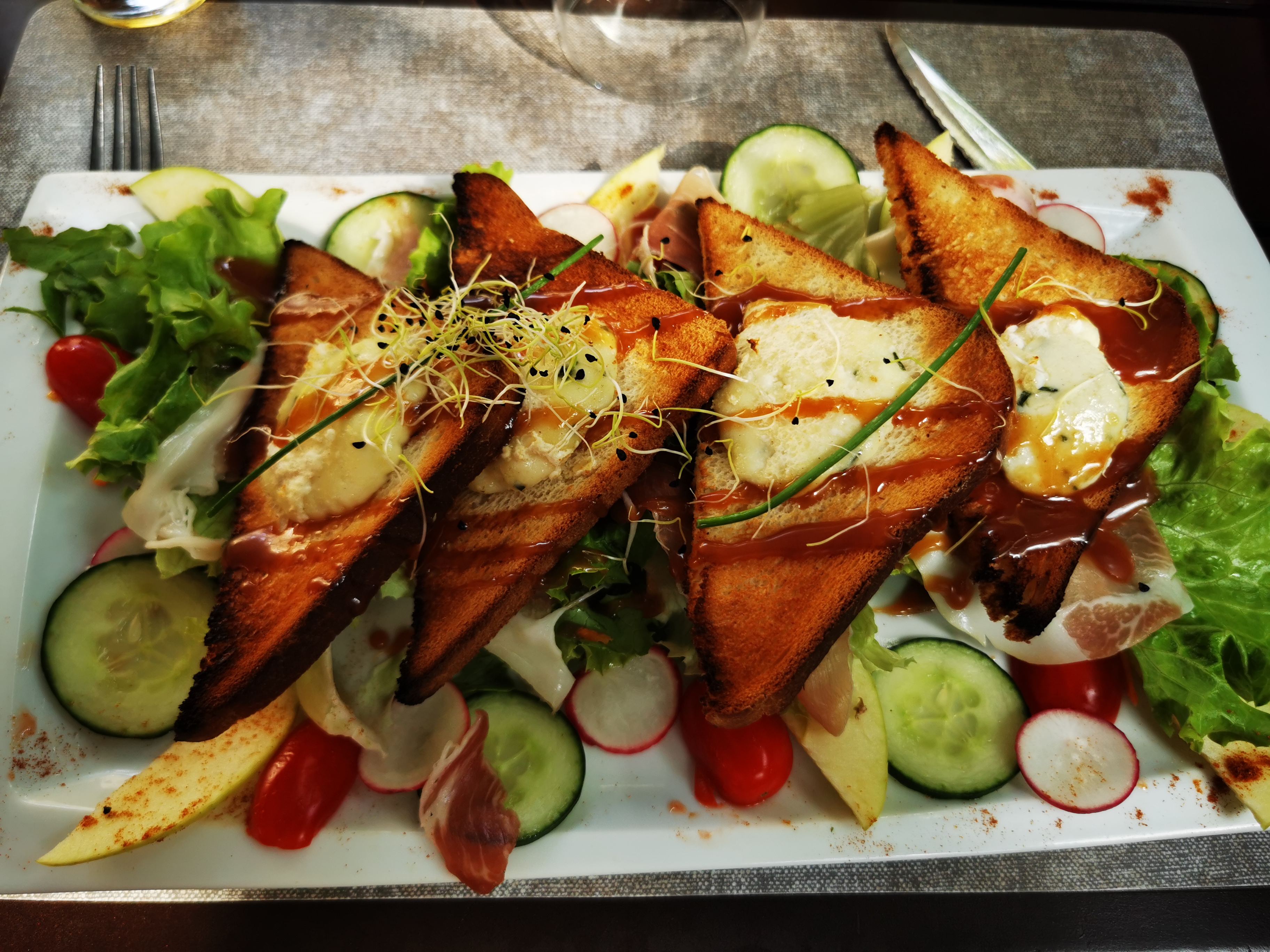 Ça aurait pu être un agréable moment. Sans compter sur le chef de cuisine qui est venu agresser les clients en terrasse en disant que si l'attente était si longue c'est que nous n'étions pas à Master chef. Gestes barrières non respectées, lui même ne portait pas de masque en cuisine et devant les clients. Je ne recommande pas cette établissement pour le personnel trop peu aimable.