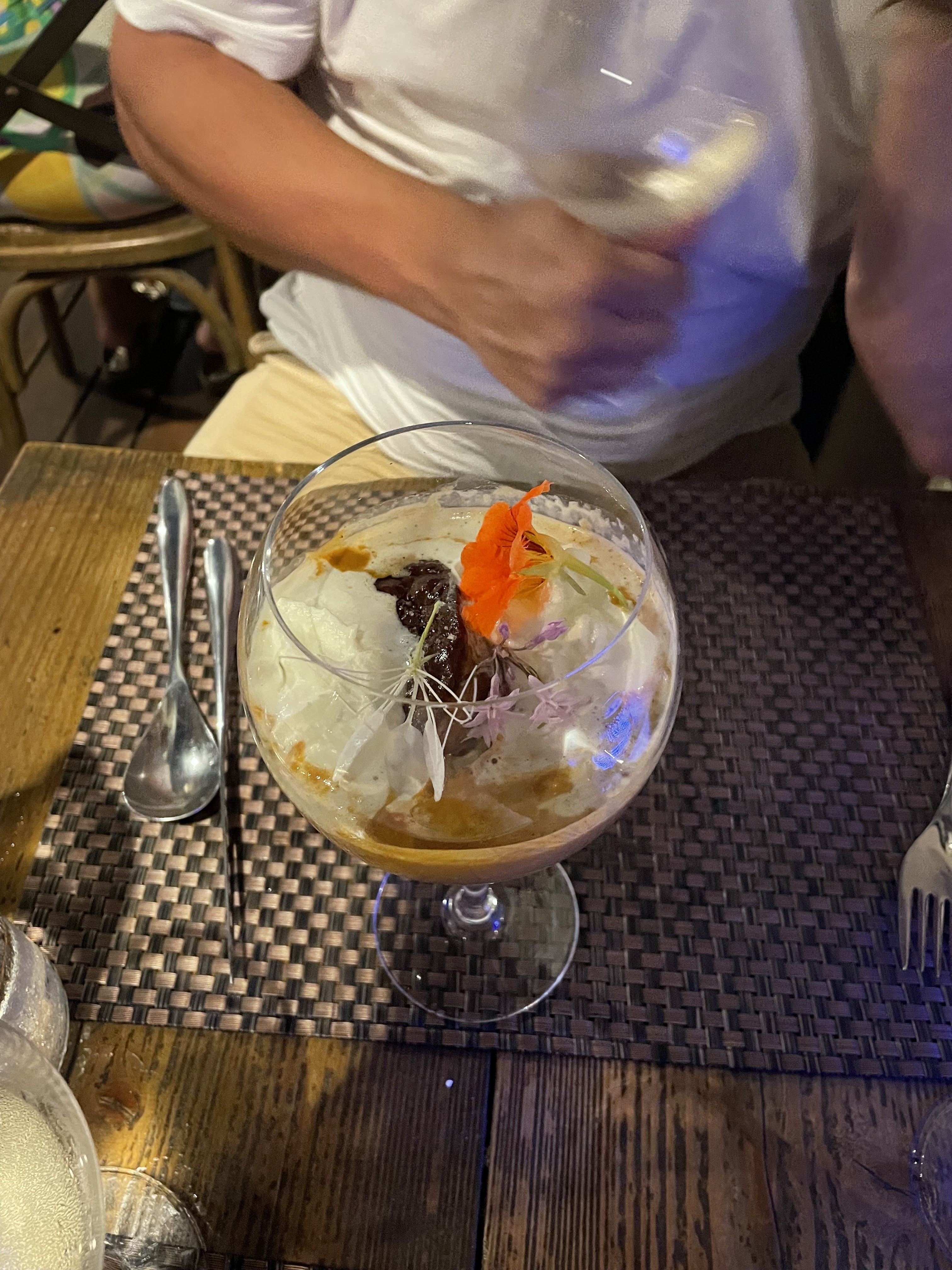 Propriétaire qui malheureusement passe plus de temps à répondre aux commentaires plutôt qu’à goûter sa propre cuisine. Cuisine sèche, en manque de saveur, et surtout trop chère pour ce que c’était. Ayant choisi parmi les plats les plus coûteux mettant en avant le terroir local, ma déception fut énorme. Les réponses aux avis négatifs précédent vous permette de vite cerner le personnage et vous questionne sincèrement sur l’envie de faire profiter cette personne de votre argent. Pour finir, enlever cette télé sur la terrasse cassant la surprise du dressage des plats accompagnés d’un montage vidéo plus qu’amateur. Une télé n’a rien à faire dans une salle à manger à moins que les plats ne suffisent pas à capter suffisamment l’attention des clients. Mention spéciale aux cocktails ainsi qu’au serveur qui les prépare, très sympathique et accueillant.