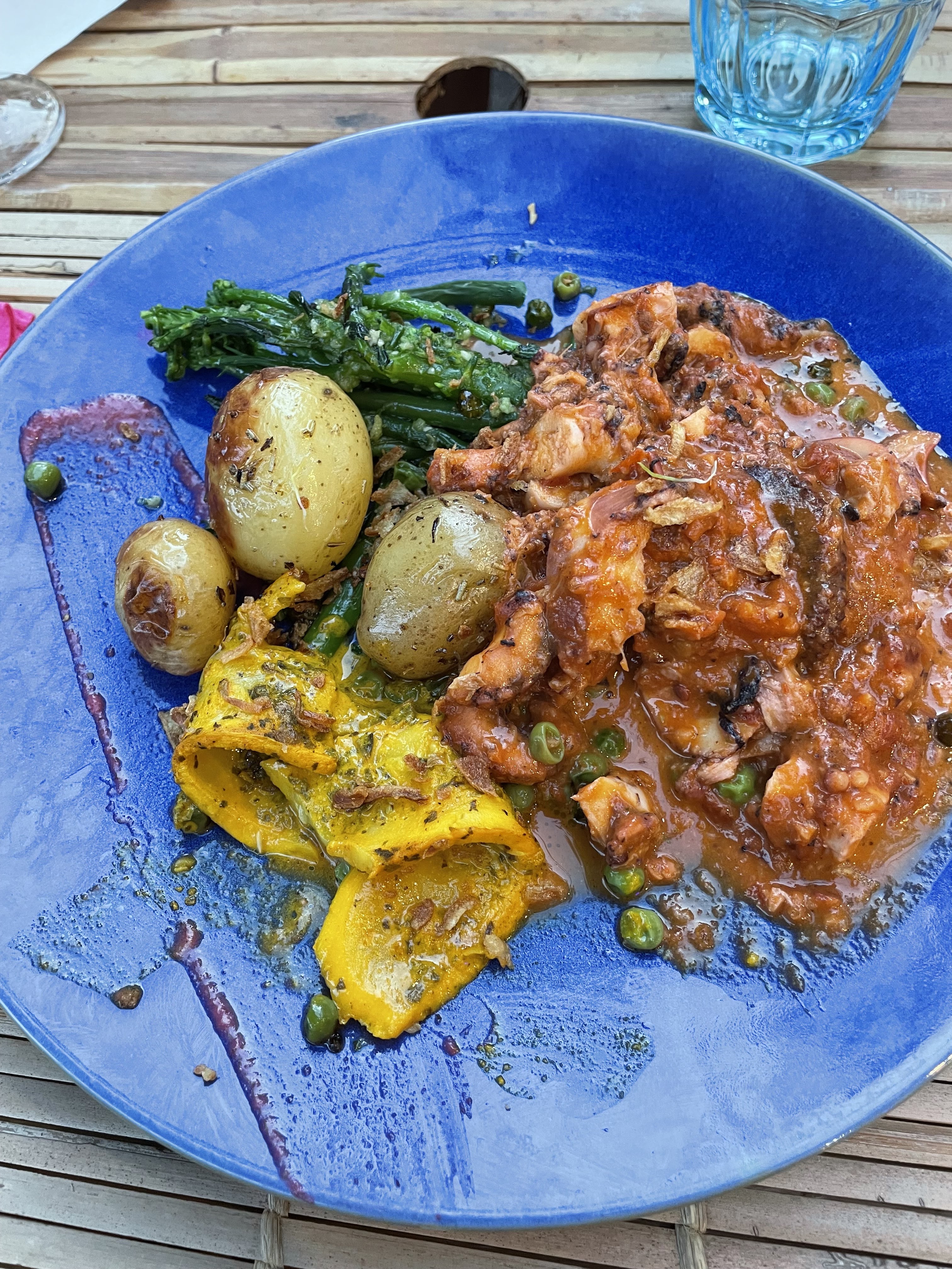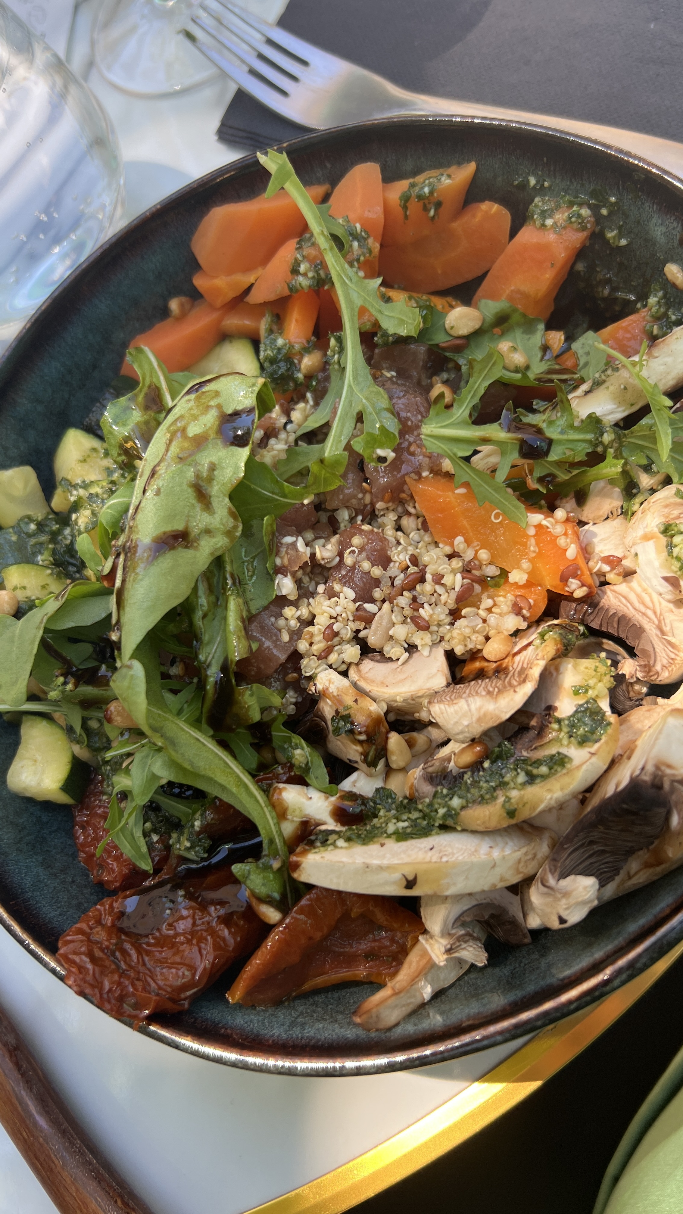 Délicieux cocktail St Germain Spritz et excellente cuisine avec de vrais légumes !