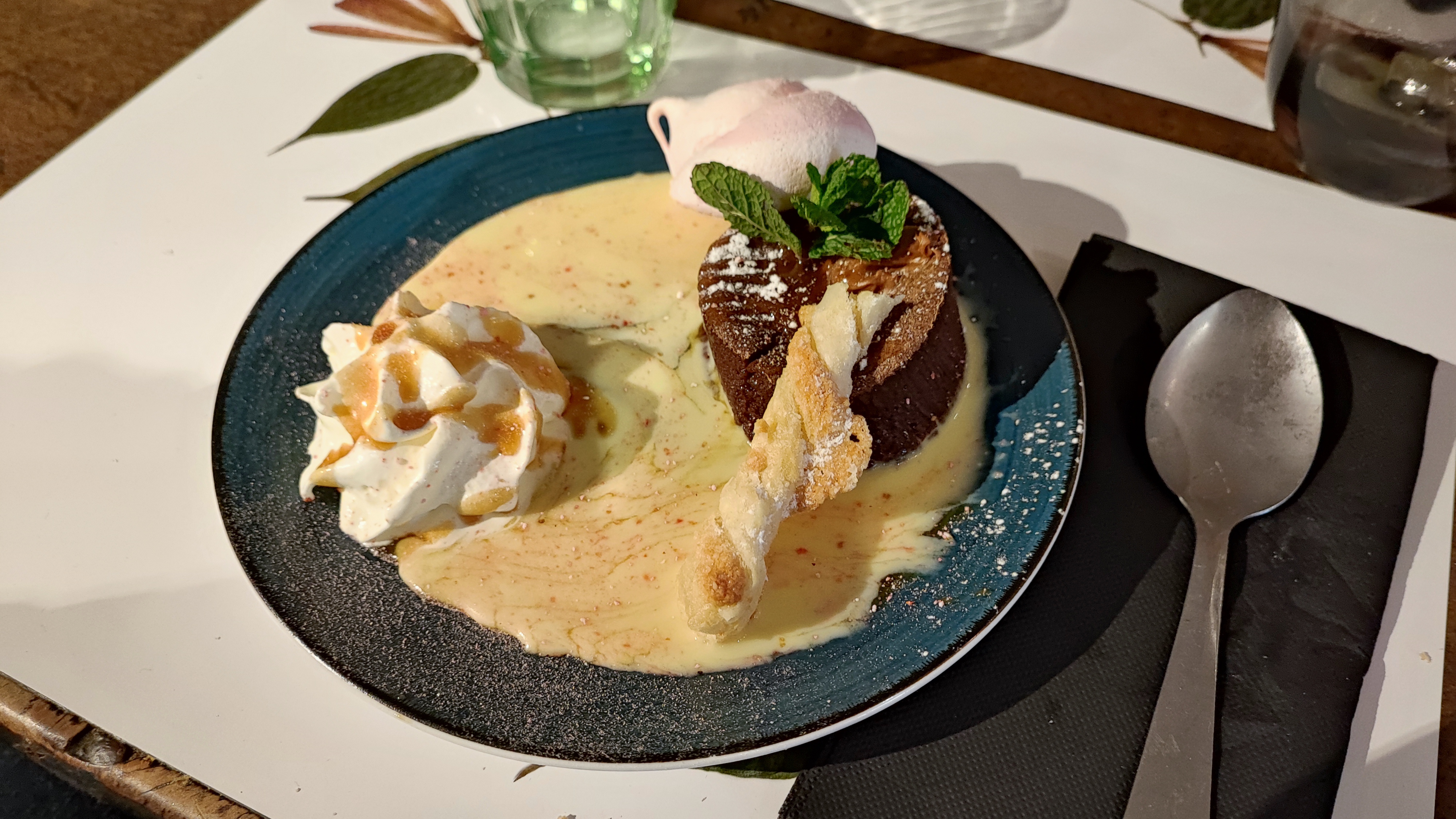 Super adresse trouvée par hasard. Plats simples et délicieux, note d'originalité dans les desserts. Prix très correct. Service agréable. Je recommande !