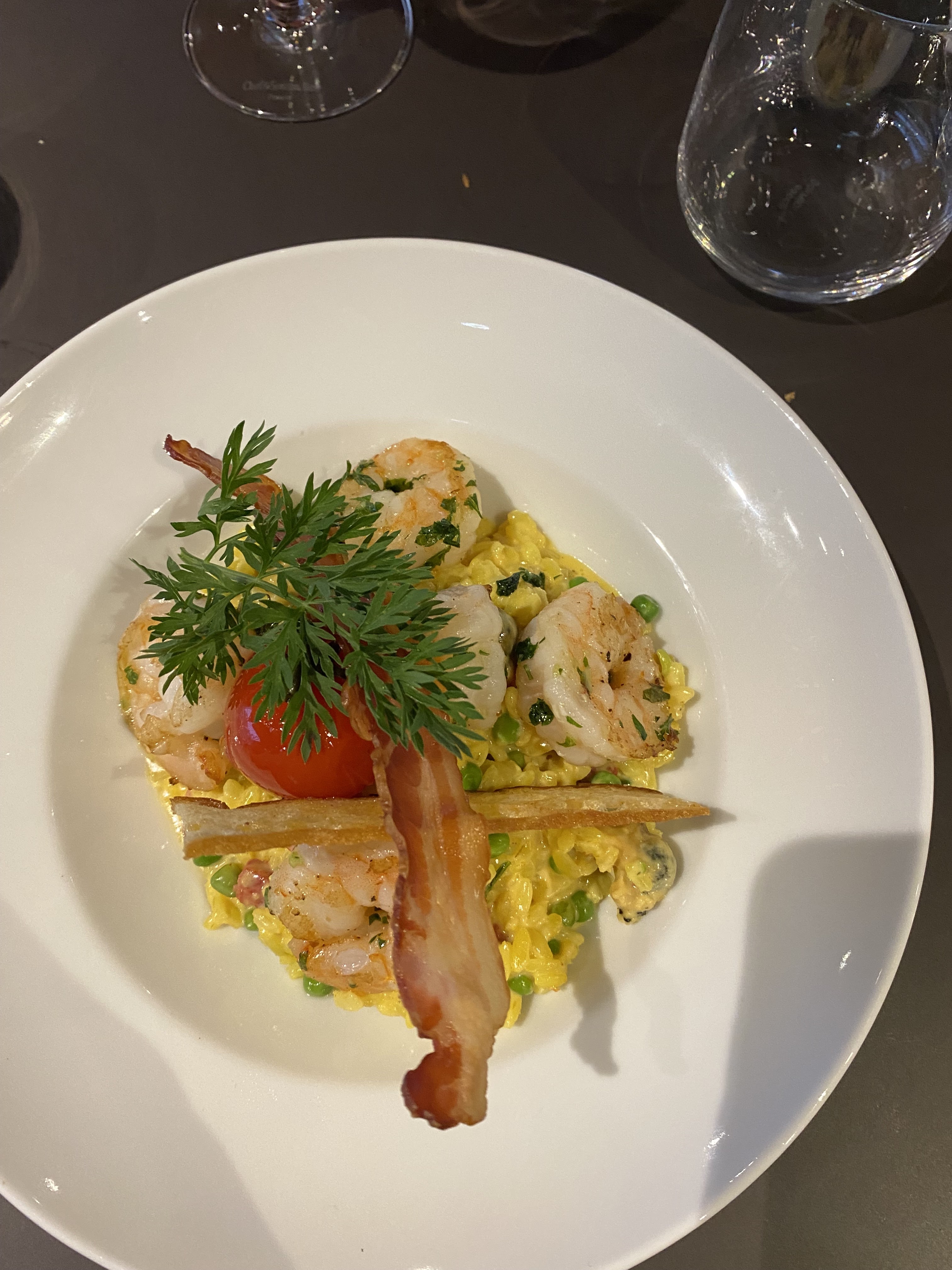 Bon repas, malheureusement immédiatement malade à la fin du repas. J avais pris un risotto scampis moules chorizo. Déception pour le coup
