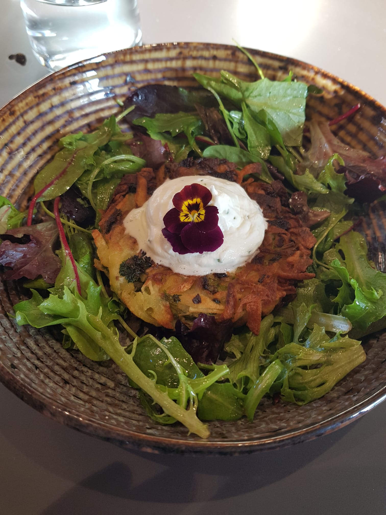Le cadre est très sympa surtout la terrasse, le menu végétarien est très appréciable, la cuisine est raffinée et recherchée, les saveurs sont au rendez-vous, le seul bémol selon moi c'est le rapport prix/quantité. Les gros mangeurs restent sur leur faim