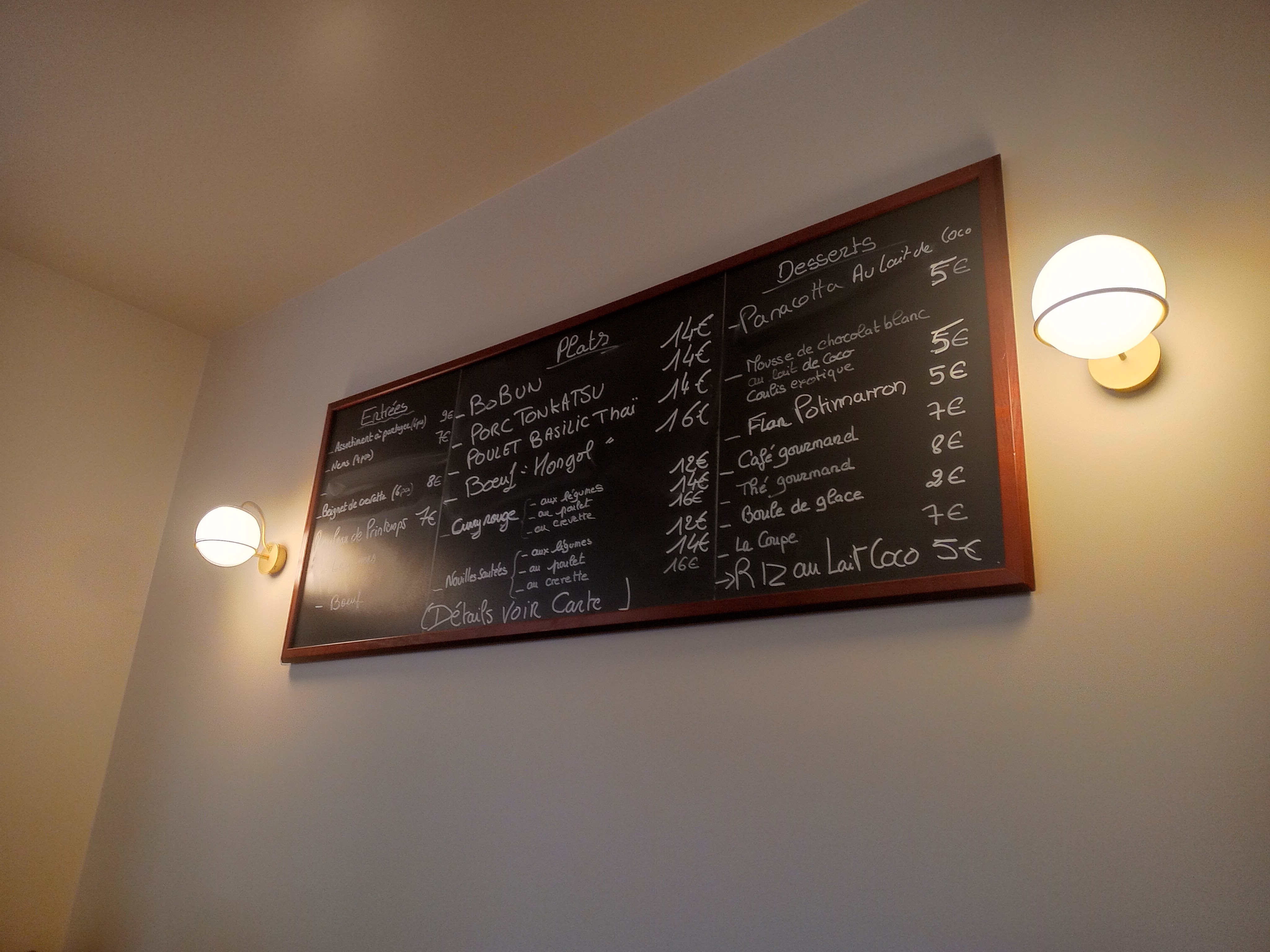 Sans réservation nous avons déjeuné dans ce restaurant authentique. Le patron est super accueillant ainsi que la barmaid , on choisi son menu asiatique sur une carte courte de plats fait maison ( bruit des woks allant bon train en cuisine ) Les desserts sont eux aussi fait maison , un décor zen . Bref n’y allez pas , courrez s’y !!!!