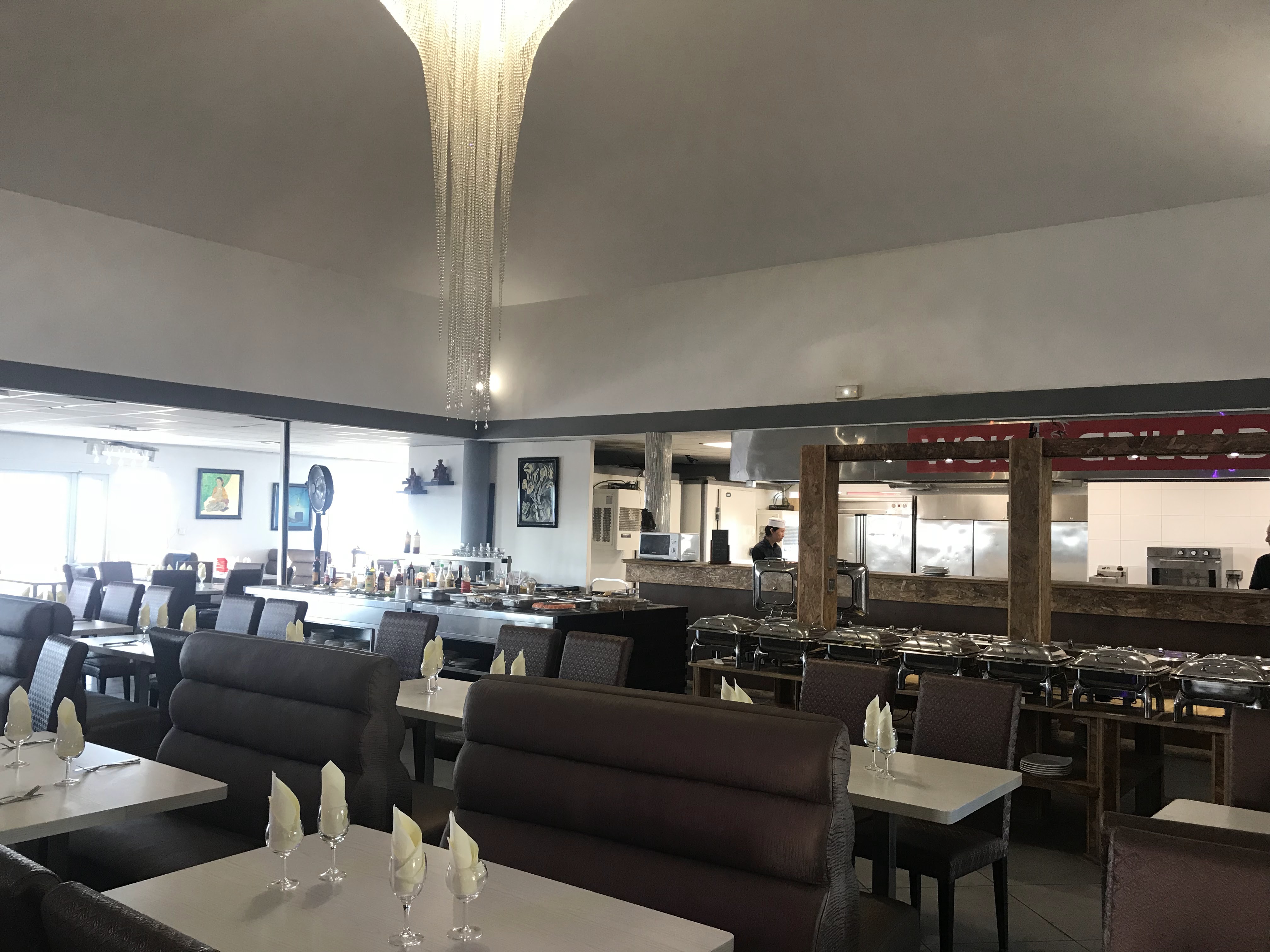 Nous y sommes allées entre copines un dimanche midi. A peine assises la serveuse insiste pour nous proposer un apéro. Les plats sont classiques, probablement industriels (ouverture des sacs devant les clients), sans recherche de goût. Les desserts français côtoient les desserts asiatiques bien calibrés (Les boules au coco sont spongieuses). Malgré tout nous avons mangé un buffet complet pour un prix raisonnable, mais ne vous étonnez pas si la vendeuse surveille votre assiette pour vous l’enlever à peine la dernière bouchée avalée. Ayant un point de comparaison avec un autre restaurant fonctionnant ainsi, je préfère celui près d’Aix.