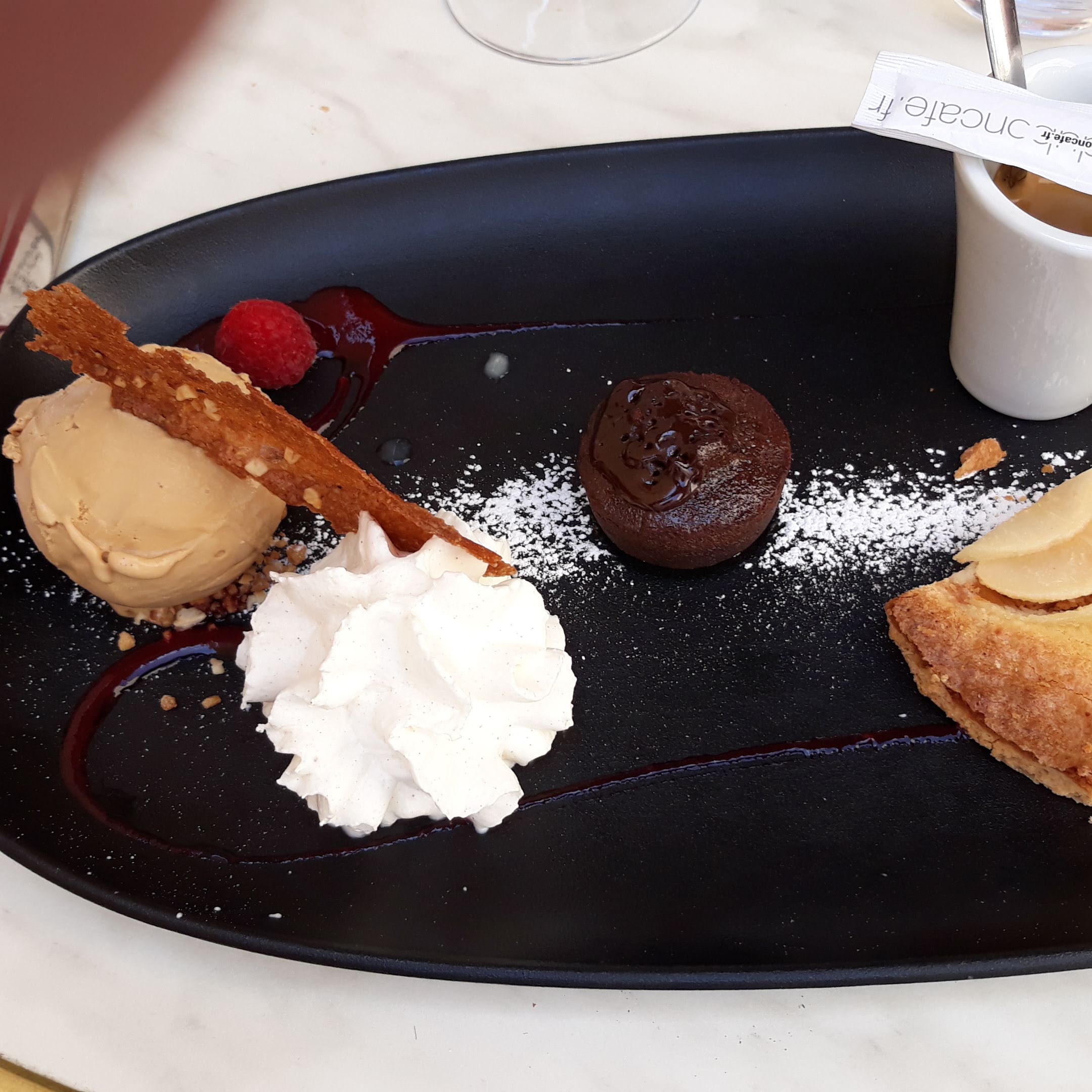 De l'entrée au dessert, 5/5. A faire absolument. Accueil parfait, service parfait. Merci