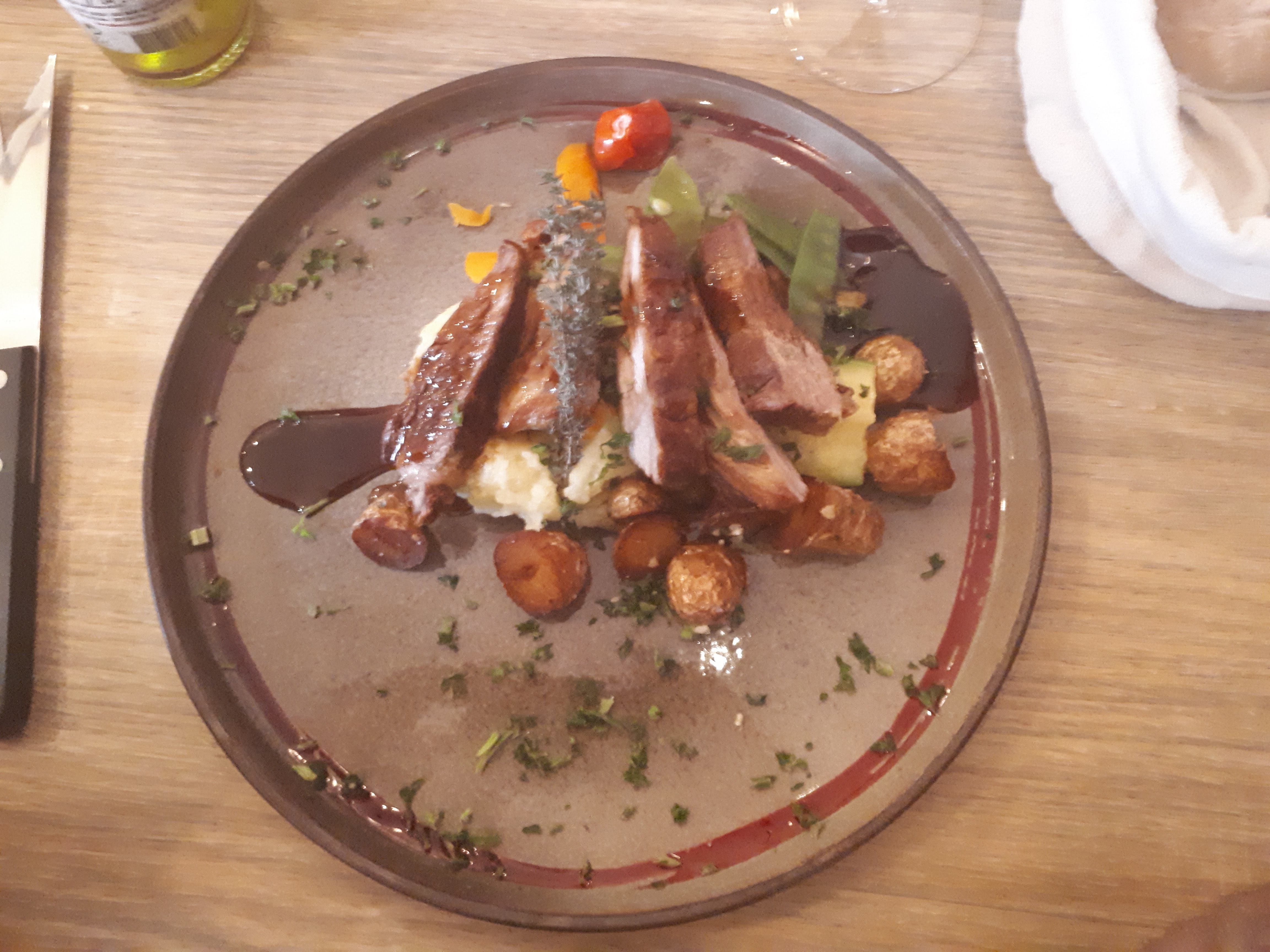 Bon repas, service rapide, terrasse intimiste, les saveurs sont présentes mais un léger regret sur le plat ou la cuisson de la viande était un peu plus cuite que prévue par contre entrée et dessert de très bonne qualité et très bien composés , je recommande cette table sans hésitation. Service avec le sourire et rapide si besoin c'est toujours un plus.
