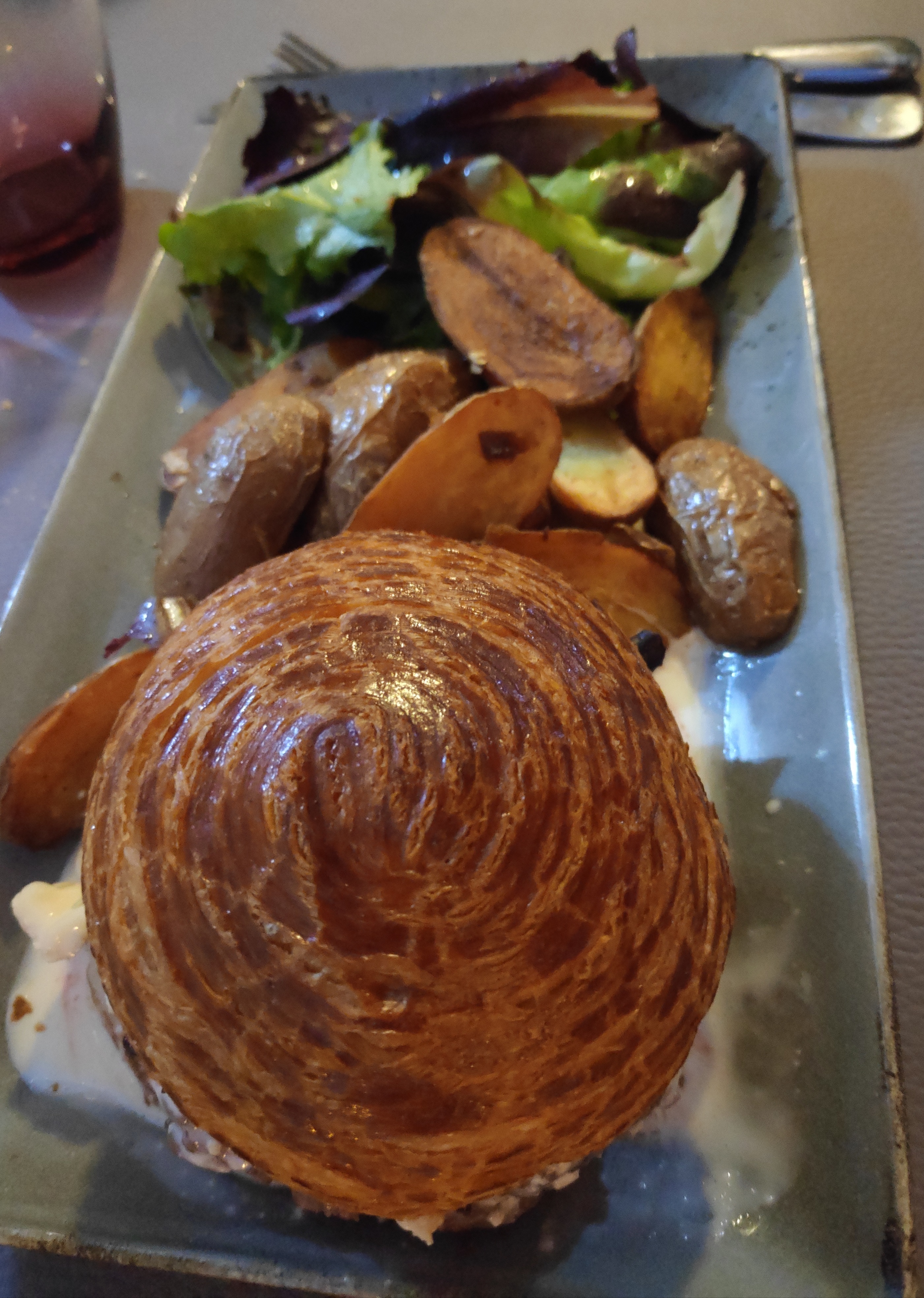 Cuisine très bonne pour le plat que j’ai pus prendre. Par contre nous avions prévenu que nous avons 4 h de route ensuite mais il y avait quand même beaucoup d’attente ( 2h30 pour apéro et plat). Une serveuse en plus aiderai sûrement à fluidifier un peu. Elles sont d’ailleurs très aimables.