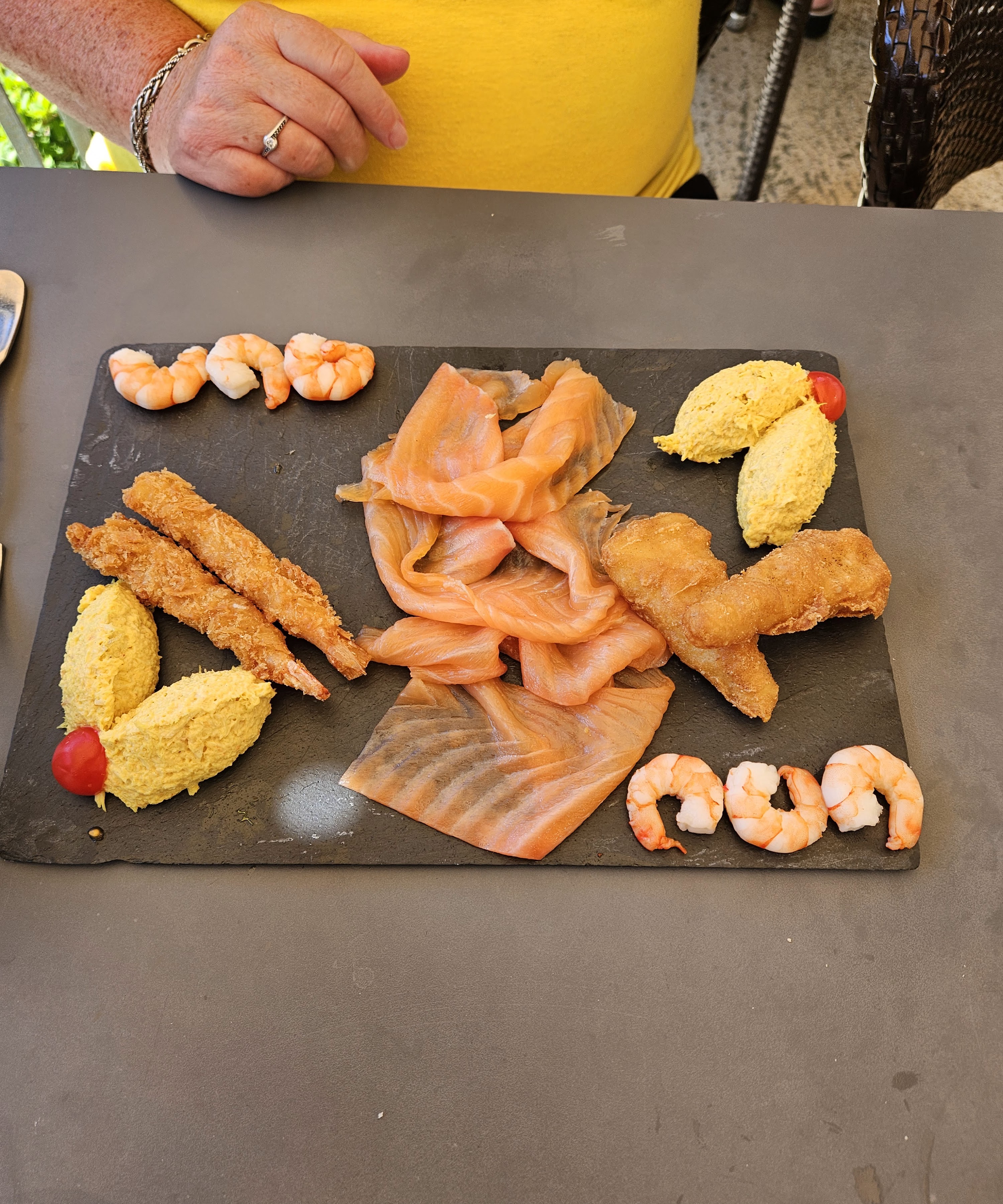 Assiettes froide très Bonne et bien servit ainsi que le dessert 🍰. Par contre le service un peu rapide entre l apérot et le Plat principal car le resto est une détente entre amies.
