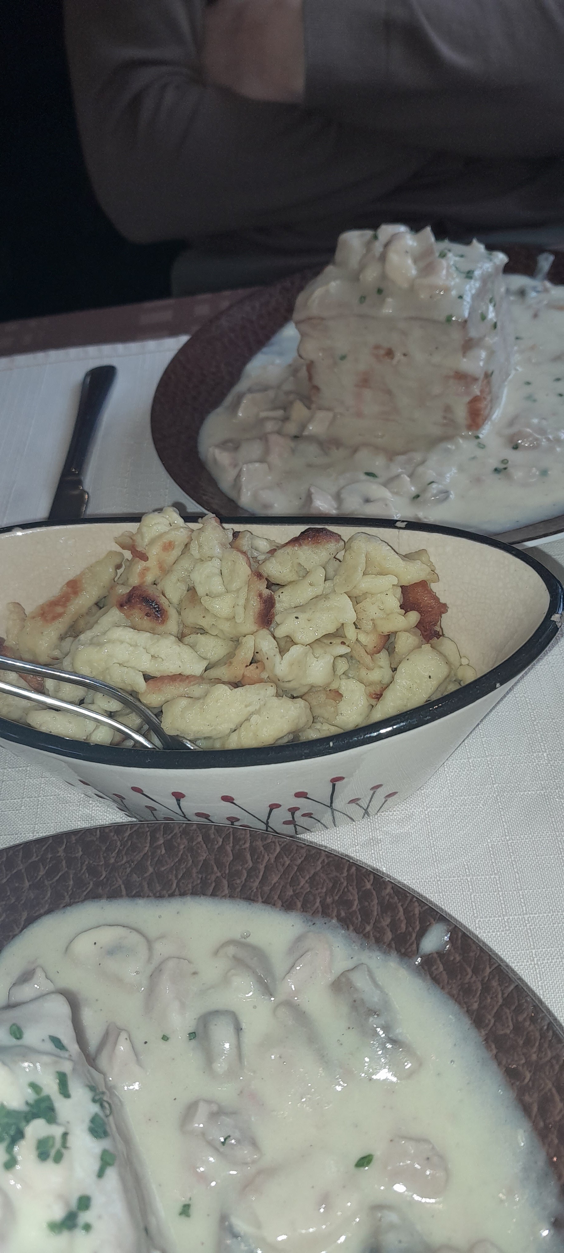 Commander à emporter, même avec du monde j'ai reçu mes plats en moins de 20 minutes, rognons et fleischkishles super bon avec les spaetzles sans oublier la salade qui était en accompagnement, Dessert impeccable on sent que c'est du fait maison, je recommande vivement. Fourchette de prix raisonnable