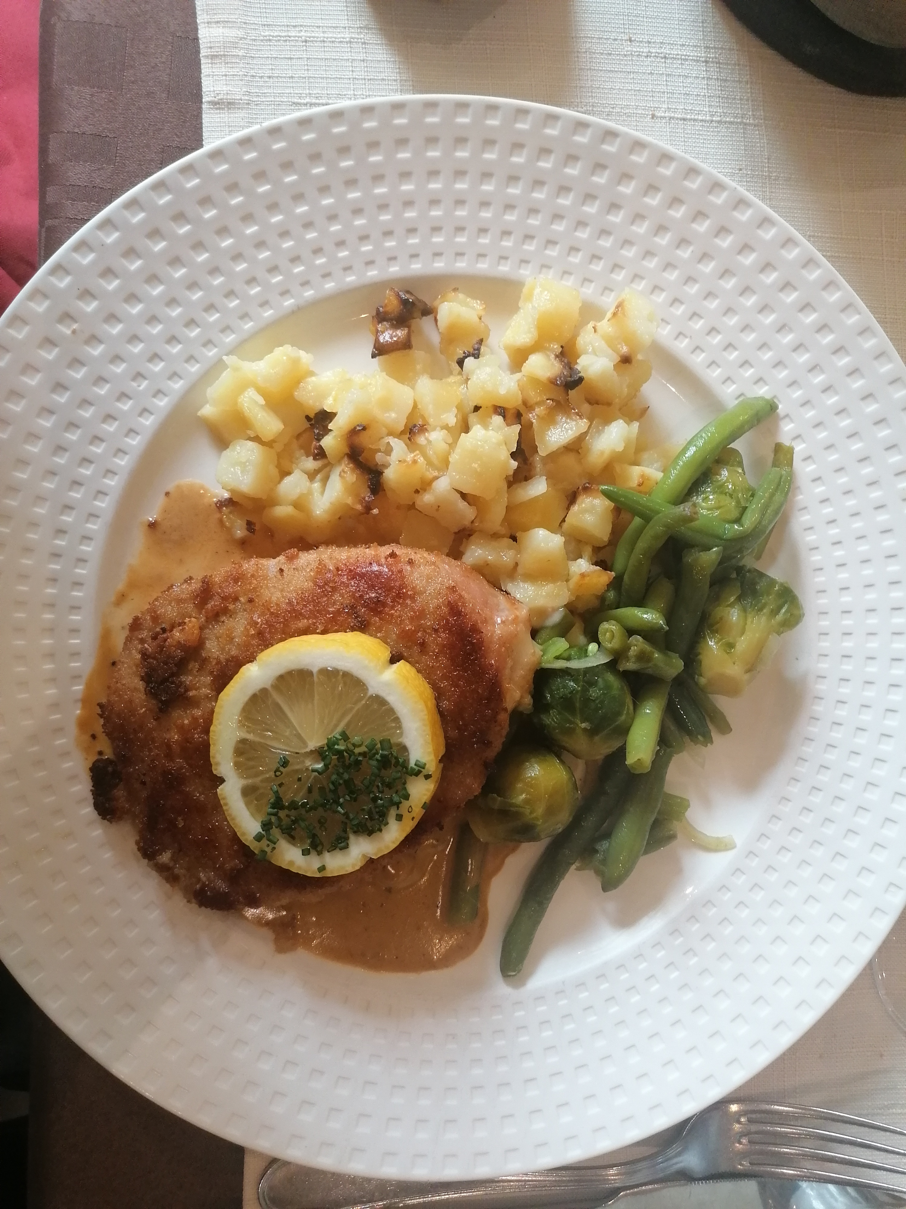 Nous y avons très bien mangé en famille, cordon bleu excellent, la sauce servie à part ce qui est vraiment top. Le tartare préparé devant vous et selon votre goût. De belles assiettes bien garnies. Le nougat glacé un délice ainsi que le carpaccio d'ananas .