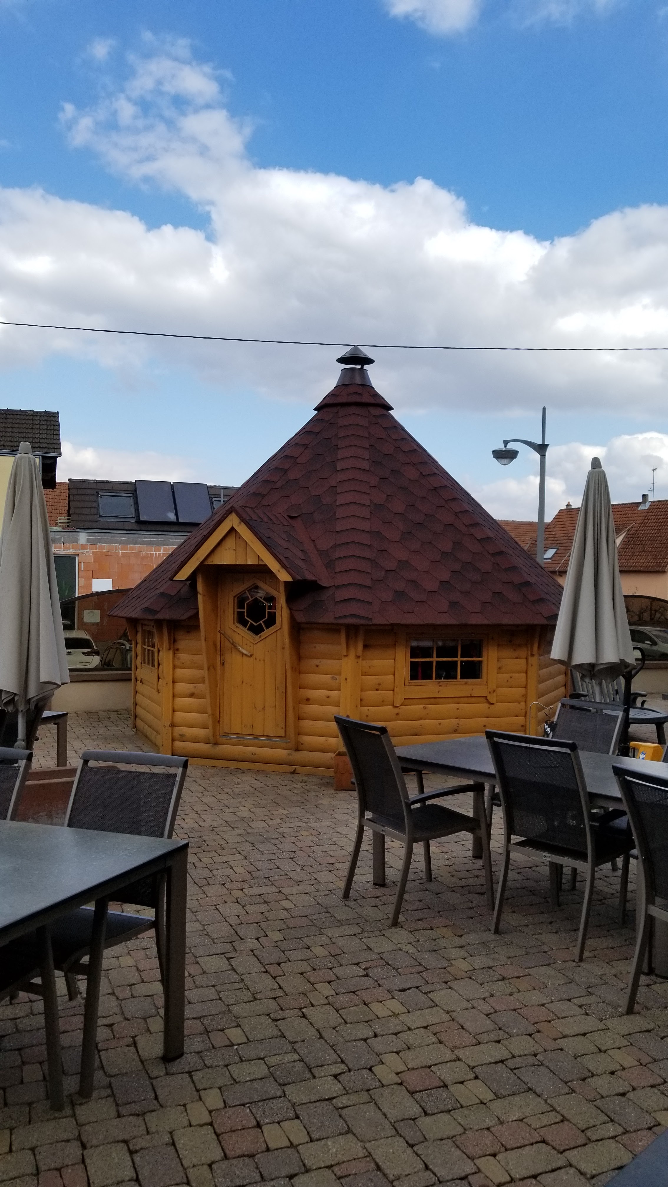 Terrasse très grande et très jolie. La carte est variée avec des spécialitées Alsacienne. Le repas est servi rapidement malgré le monde présent. Le service est courtois est rapide. L'accueil très bon.