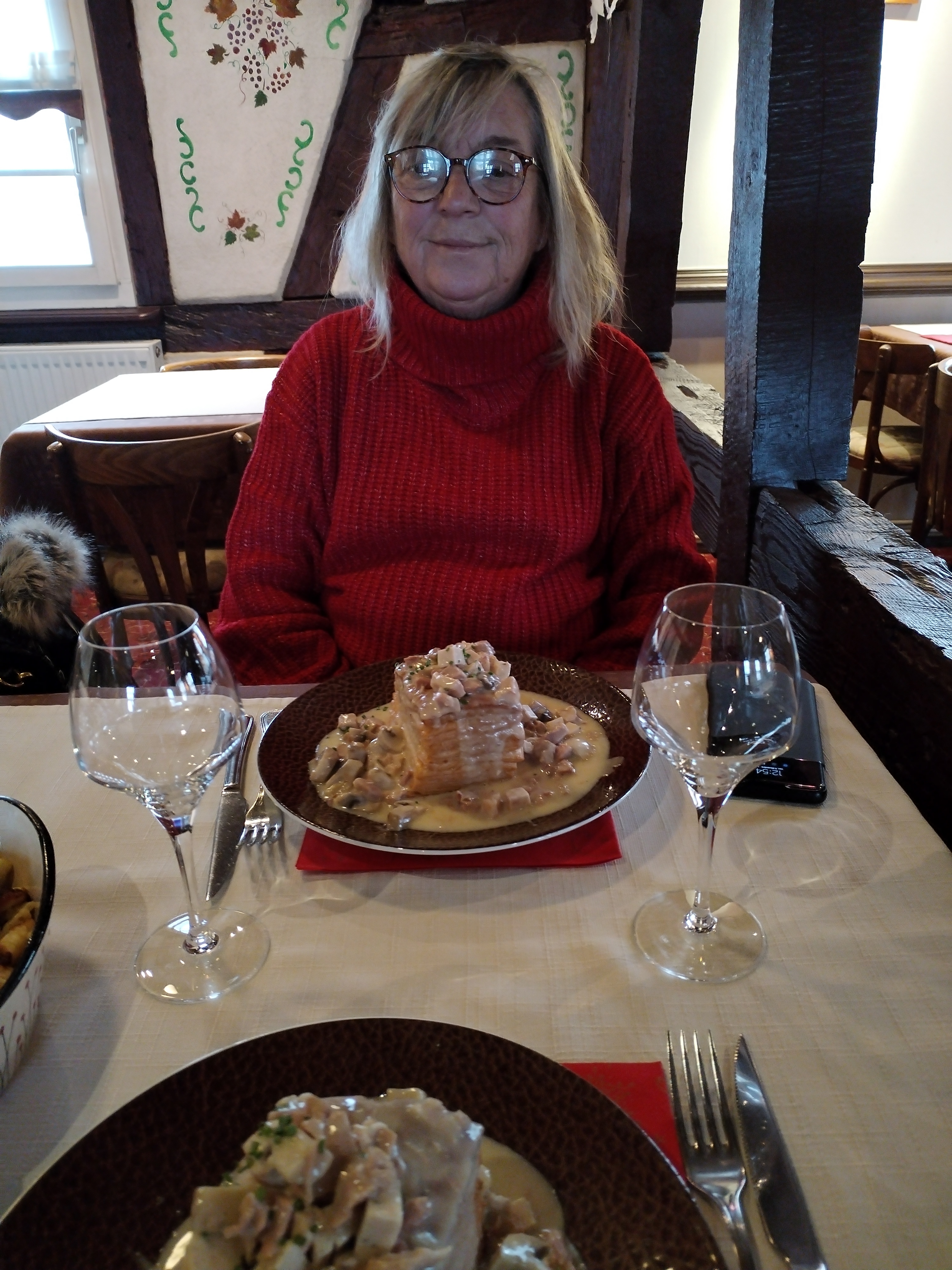 C'est un très joli restaurant typiquement alsacien, le service très sympathique malgré une grosse clientèle le dimanche. J étais déjà venue il y a qq années mais là j'ai été très déçue par la spécialité maison, la bouchée à la reine, je n'ai pas retrouvé ce que je venais chercher.