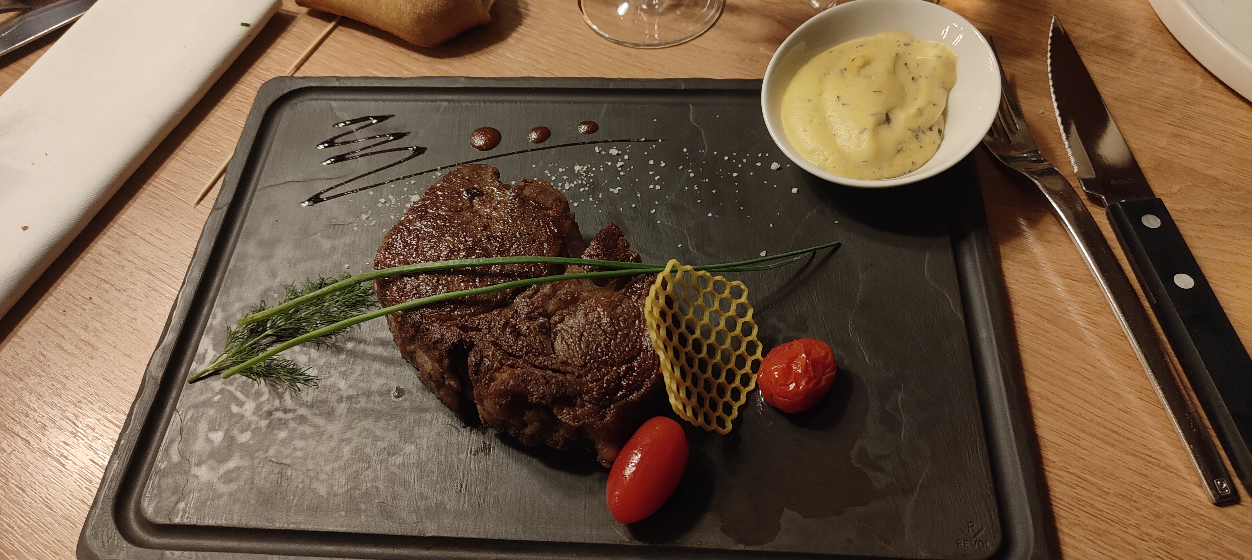 Déçu par le plat, les frites sont surgelées… Pour un établissement pareil on peut s’attendre à bien mieux. Néanmoins la viande est de très bonne qualité. La présentation du café gourmand est recherché.