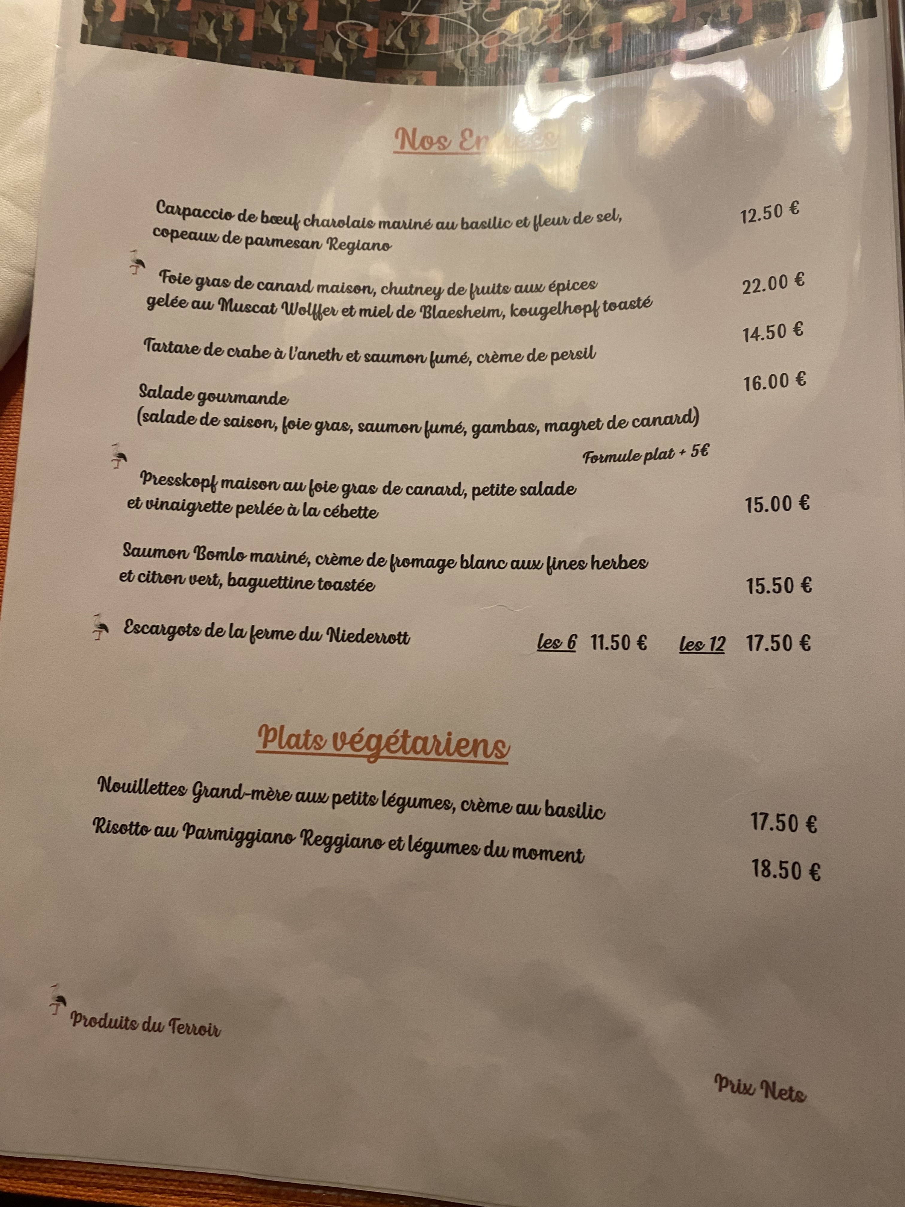 Très joli cadre, assiettes copieuses, bonne nourriture mais malheureusement une mauvaise ambiance et une mauvaise gestion... Nous avions réservé une salle pour un repas de groupe et avions prévenu 3 semaines à l'avance qu'un des convives ne mangeait pas de viande ni de poisson. Le jour venu, l'apéritif et l'entrée comportaient du poisson et au moment de servir le repas le serveur est arrivé en disant que végétarien et vegan ça ne veut rien dire, en plus on ne sait pas ce que c'est et qu'ils ne savent pas quoi servir....deux minutes avant de servir tout le monde !! Résultat : le convive végétarien s'est retrouvé avec une assiette de pâtes nature et de petits légumes avec en accompagnement....un bol de spaetzle natures. Des pâtes accompagnées de pâtes et de pain, avec quelques légumes sur le côté, en gros. Tout ça au même prix qu'une pièce d'entrecôte avec une sauce aux girolles...ça fait mal. Le tout sous les regards et les commentaires désobligeants et déplacés du serveur, malheureusement très antipathique. Dommage pour un restaurant de standing qui a toutes les cartes en main pour proposer un service agréable et de qualité à ses clients, mais qui faute d'organisation (paresse ?) oublie certains principes des plus élémentaires.
