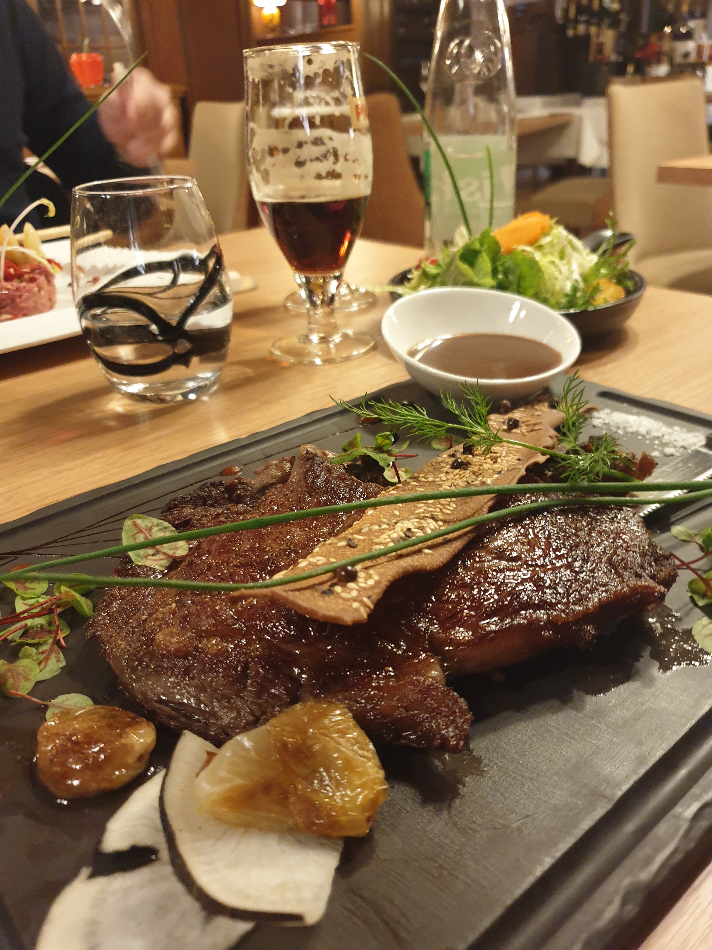 Un bon restaurant avec des plats très goûteux et de très bonne viande.Les dessert très bon et le service top.. mais au moment de l'addition on remarque que c'est mal vue de demander un geste car la cuisson de la viande nétait pas bonne. Plusieurs fois lors du repas on a stipuler que la viande était trop cuite sans réaction ou solution proposer. Nous avons reçu les cafés offert après avoir lourdement insister.. .(5.00€ contre une viande a 33.00€ pas très honnête) PS: la viande n'a même pas été fini par ma conjointe, il restait plus de la moitié Cependant le reste était bon et c'est une bonne adresse. Je pense que nous n'avons pas eu de chance