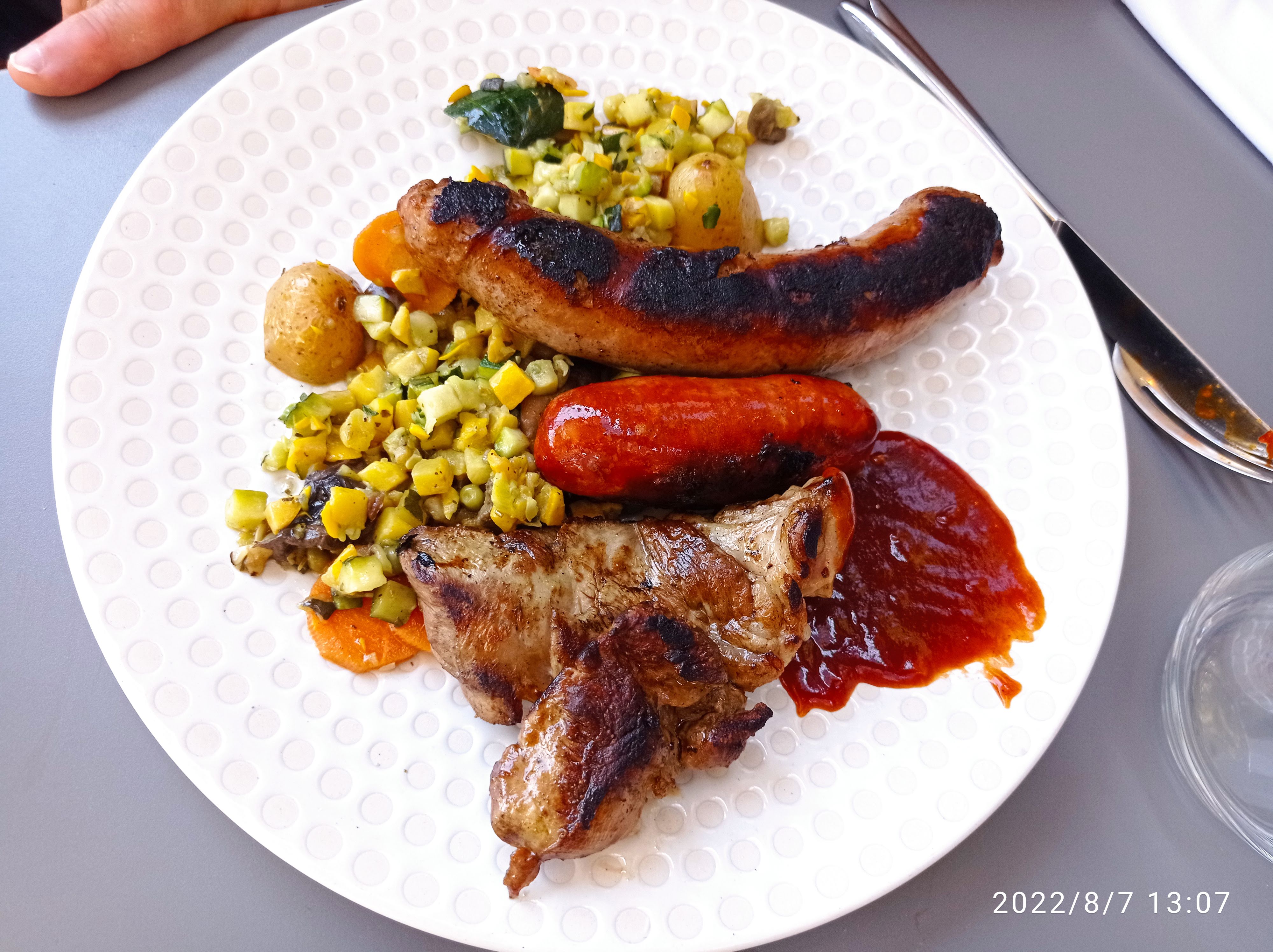Bonne cuisine et bien sûr particulièrement les viandes et poissons au brasero. Bémol:il aurait été de bon ton lors de la réserve de nous prévenir qu’il y avait un concert et que nous serions placés à 1m de l’enceinte.