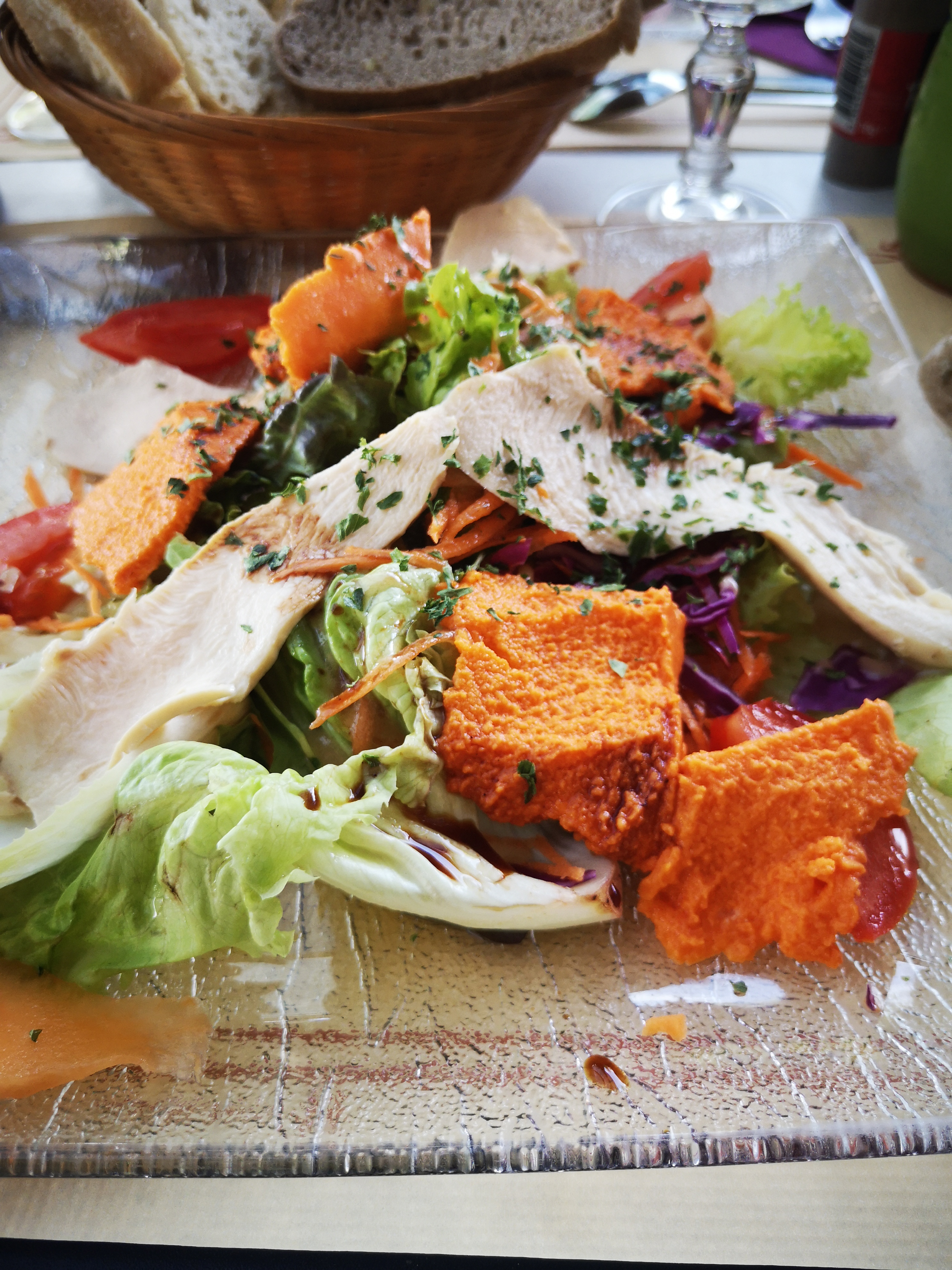 A peine bonjour de la patronne!! C'est pourquoi??( Dans ma tête je pense à un sckech de Bigard🤣) Je dis : bonjour Madame, nous voudrions déjeuner, nous sommes deux personnes...une table au soleil!! ( Et dans ma tête loin des autres clients trop serrés..COVID😰) Pas de table au soleil....me dit elle. En fait il y en avait 4 mais cela dérangeait Mme de faire quelque pas de plus.👎👎Nous sommes partis