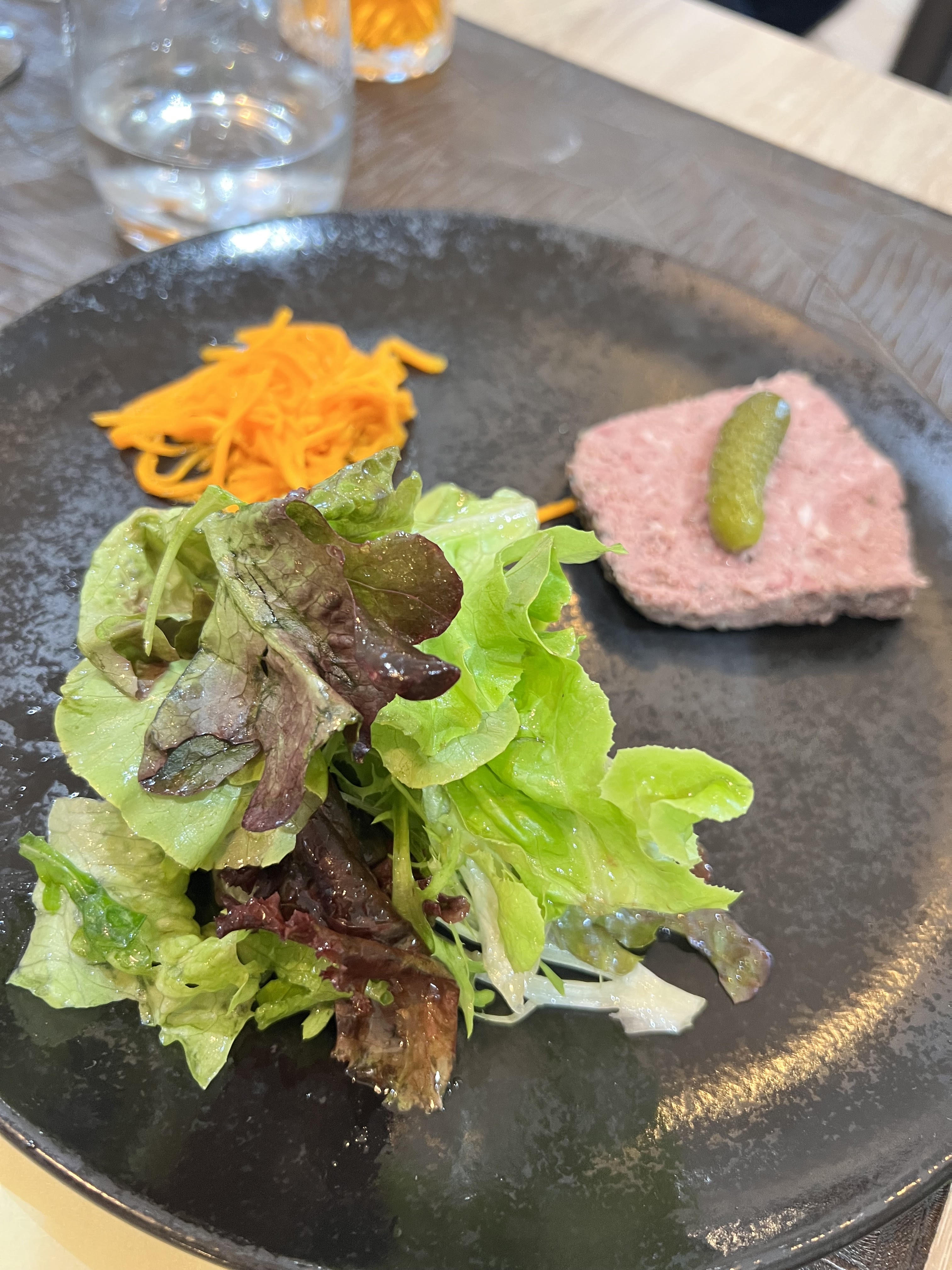 Alors franchement pour un repas de Noël a 30 environ ! Super quoi ! Début un peu difficile mais normal ont va dire ! Et après de l'entré au dessert c'était top je m'attendais a ça ! Foie gras excellent ! Saumon gravlax excellent 🤤! Paleron de boeuf excellent ! Dessert très correct ! Le reste des assiettes personnes étaient dessus ! Aucun regret ! Je connaissais le resté en comité restreint c'était top et a 30 c'est pareil ! Bravo 👏🏻👏🏻