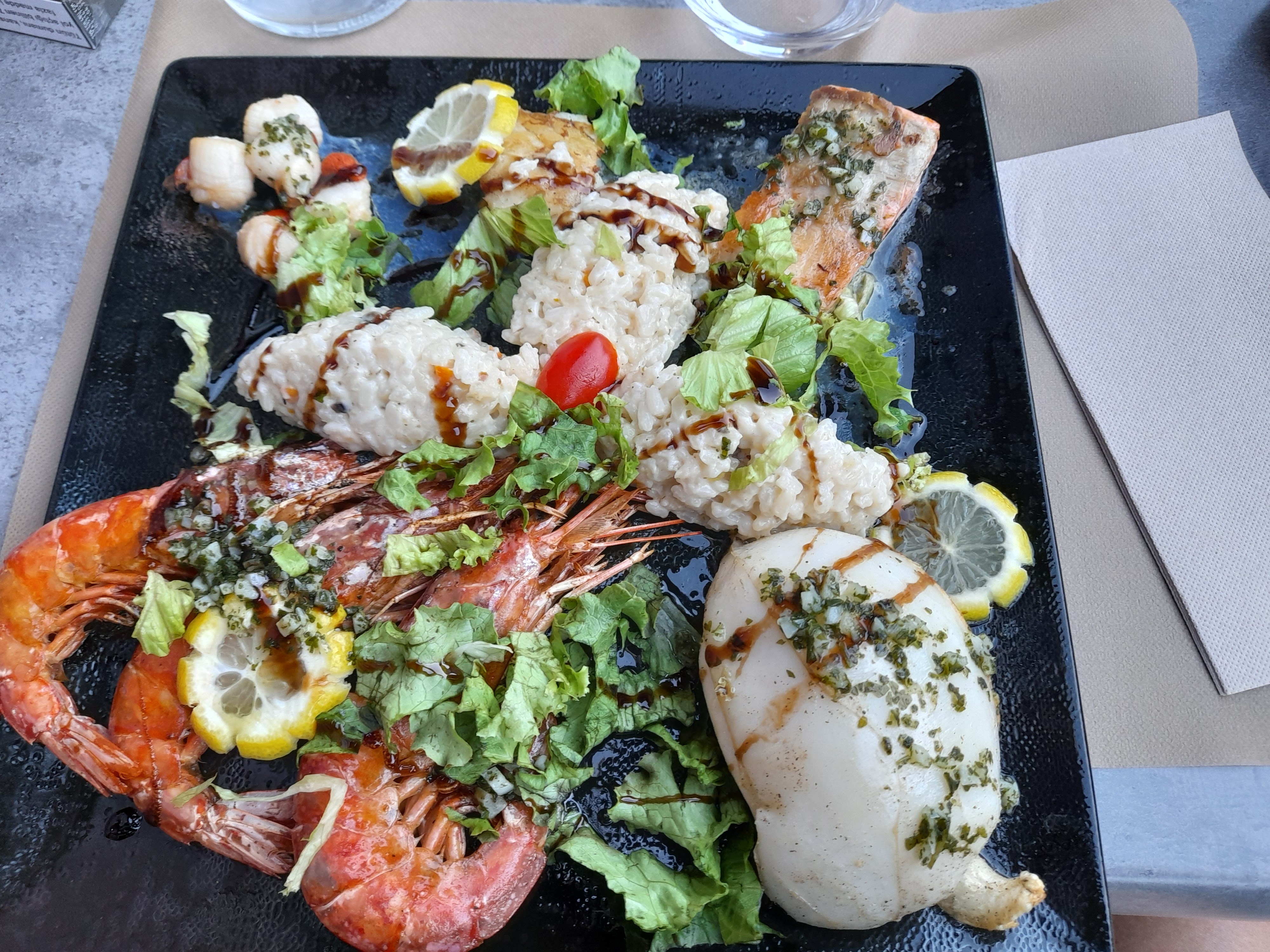 Nous avons très bien mangé, midi vers 13h. Entrecôte, frites et salade ainsi qu'un risotto au poulpe. service très sympathique !