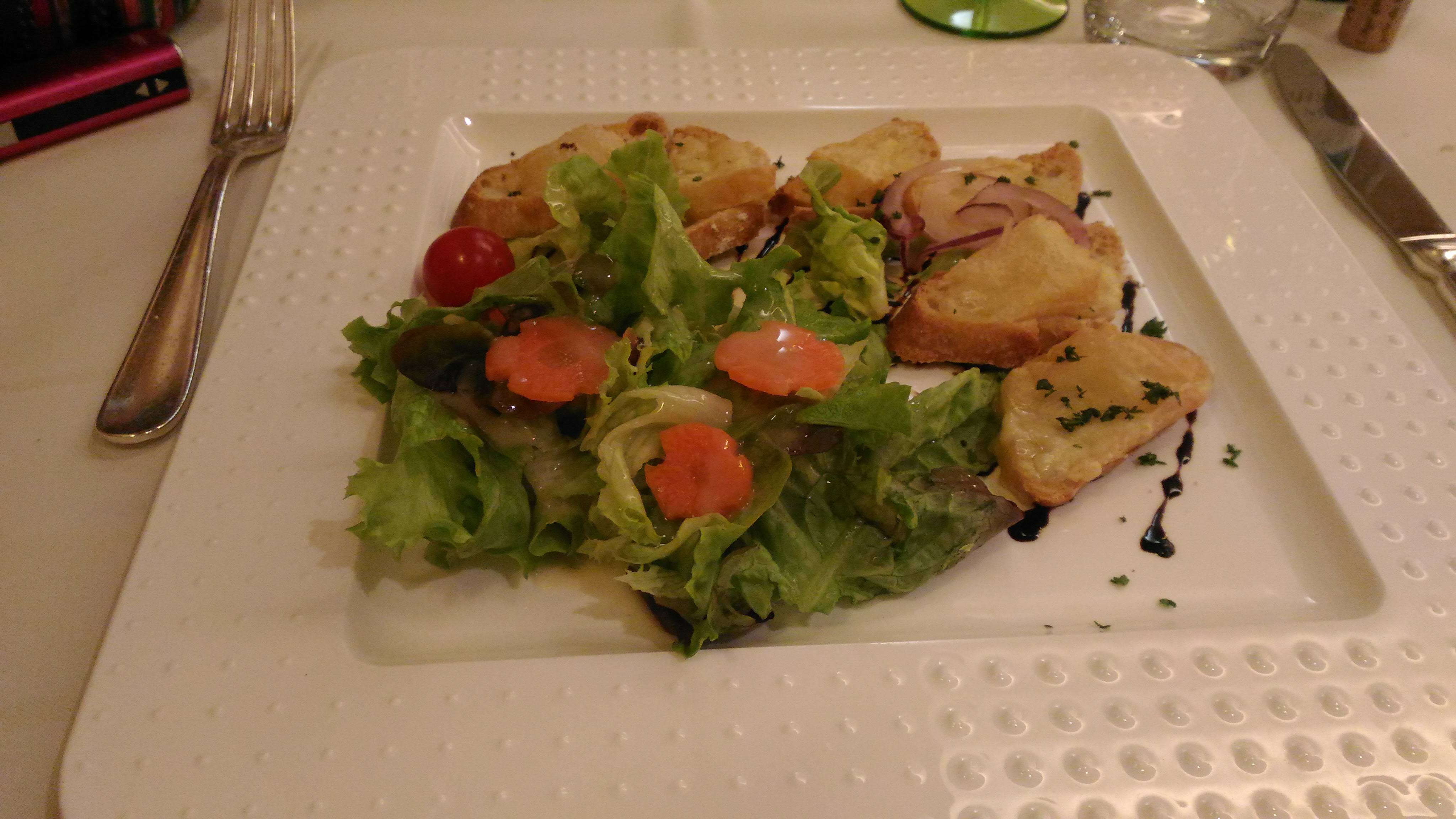 Nous avons démarré notre soirée par un apéritif sur la terrasse où nous avons pris des Aperol Spritz qui ont été servis les verres à moitié vides (or la veille les verres étaient bien remplis deux fois plus pour le même prix), ce qui était clairement décevant vu la facture salée de 9,90€ par Spritz! Lorsque nous avons fait la remarque à la serveuse elle nous a juste dit que la patronne était là aujourd’hui et que du coup les serveurs devaient bien respecter les mesures. Aucun effort sur la facture et 30 minutes après, les spritz sur la table d’à côté étaient de nouveau bien remplis. Quant au repas, les plats étaient très bons, mais le serveur était plus préoccupé par finir son service que par notre repas (on nous demande de choisir le dessert alors qu’on était encore en train de manger le plat, il débarrasse alors que tout le monde n’avait pas fini de manger, nous demande de signer la facture alors qu’on était en train de manger le dessert… il était 21h quand nous sommes sortis!). Finalement, nous avons été plutôt déçus par notre soirée.