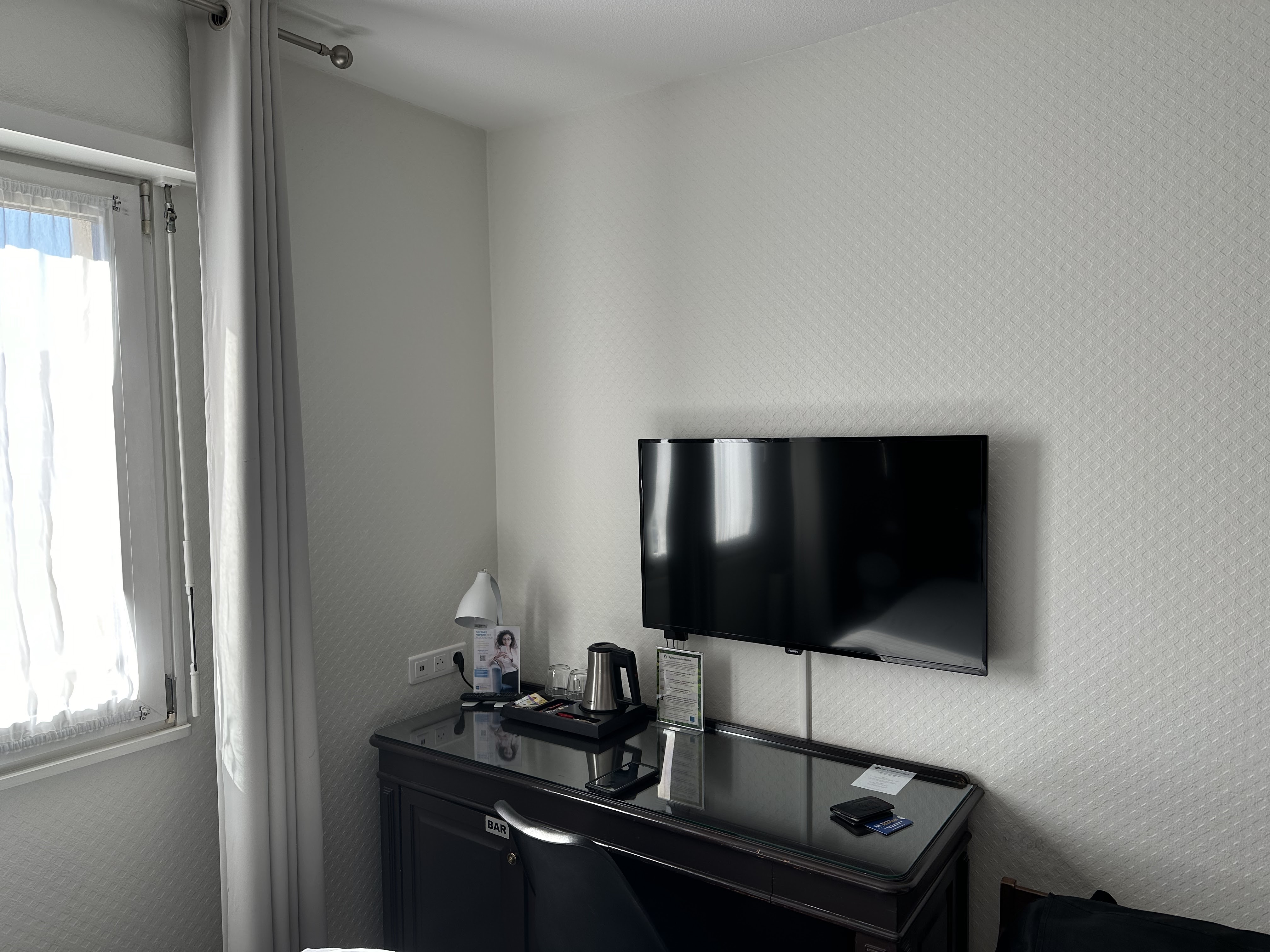 Chambre correct bien que je je l'imaginer plus grande. Bémol sur les chambres : cendrier pas vidé Bouilloire sale j'ai du la laver dans l'évier Bureau mériterais d'être repeint Un guide de l'hôtel sur la restauration, le bar, les horaires de services.... Serait un plus car je me suis aperçu que trop tard qu'il y avait ces infos sur la TV. Concernant l'hôtel en lui même le personnels est très sympathique le côté restaurant est chaleureux. Dommage pour les toilettes condamnés. Pour le spa la piscine était très froide et pas assez de fauteuils. Correct dans l'ensemble.