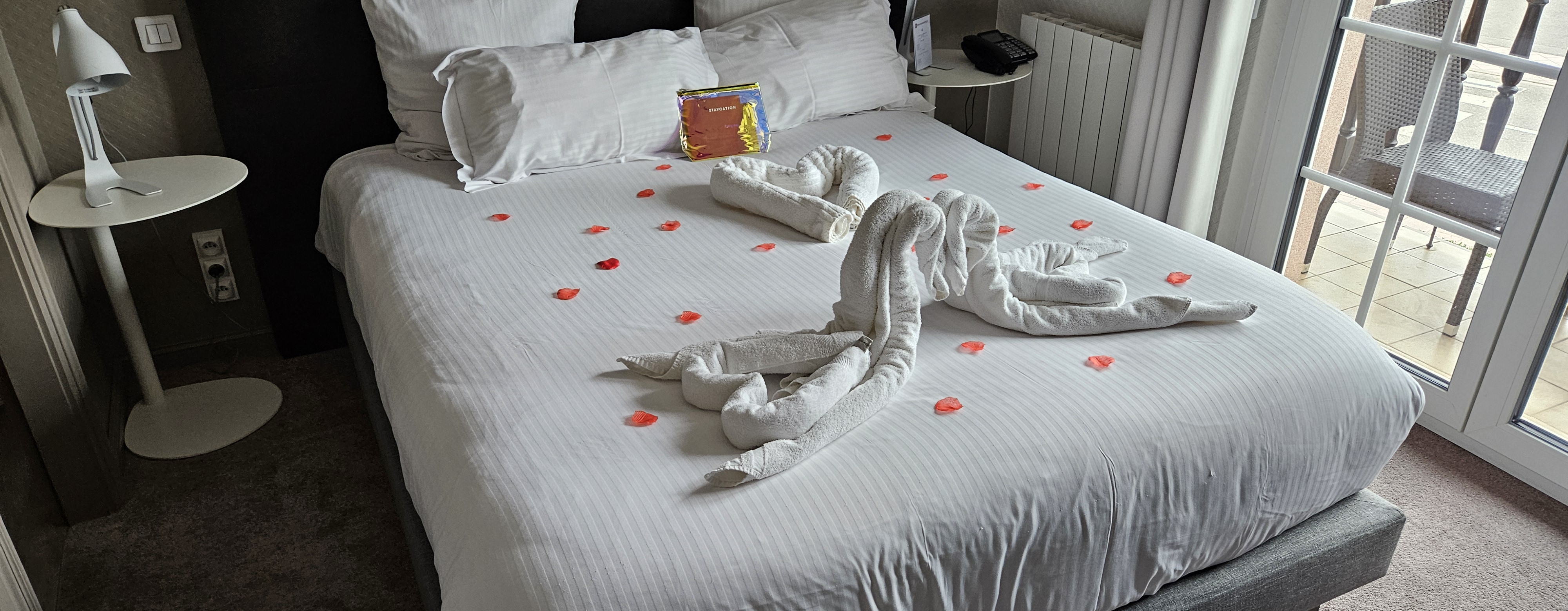 Week-end en amoureux réservé sur weekendesk Espace détente, propre, avec spa, hammam, sauna, piscine. Dommage, ça manque de transats. Chambre peu spacieuse, peu de place pour tourner autour du lit. Salle de bain moderne, mais pareil, place limitée Côté restaurant, cuisine de qualité Et je félicite le serveur Marcello, car il y avait une dame âgée à côté de nous qui était très exigeante.. Et faut savoir garder son calme.. Je lui dis chapeau.. 😉👏 De belles prestations dans l'ensemble