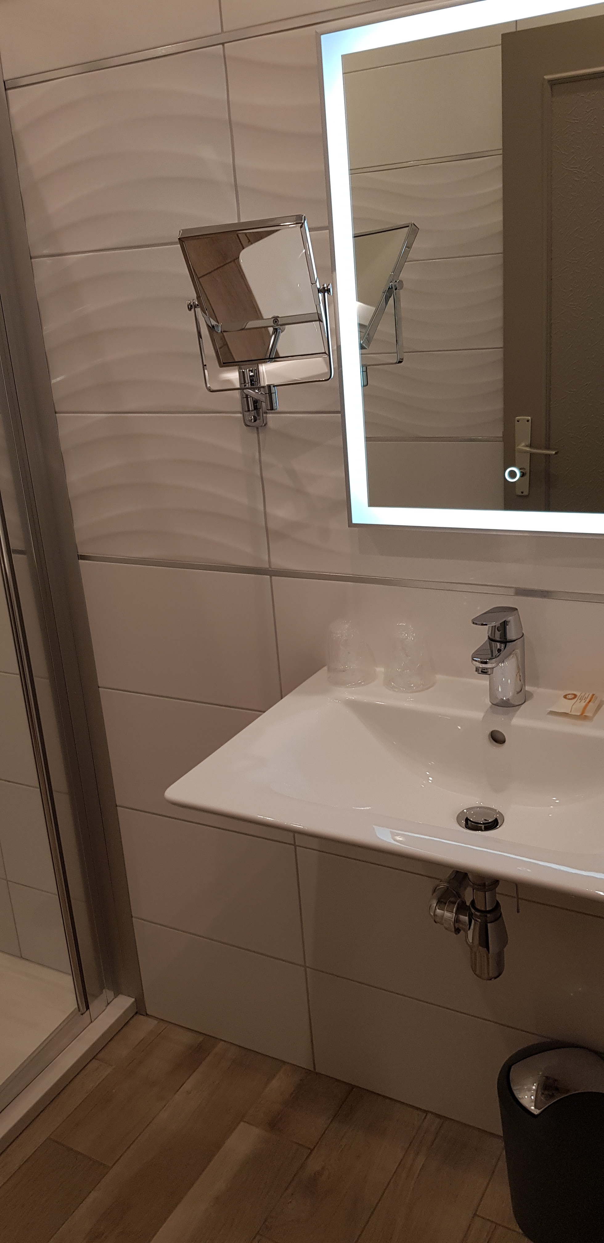 Chambre et SDB très propre et sobrement décoré. Bon Accueil. Par contre le restaurant n'est pas du tout à la hauteur d'un hôtel 4*. Le pauvre serveur n'a pas été formé, service maladroit. Menu très décevant, on veut jouer le gastro mais les aliments sont posés avec grossièreté: feuilleté au fromage sans goût et pas du tout fait maison comme cela a été vendu, plat principal arrivé presque froid, frite pas cuite, dessert banal... Décevant !
