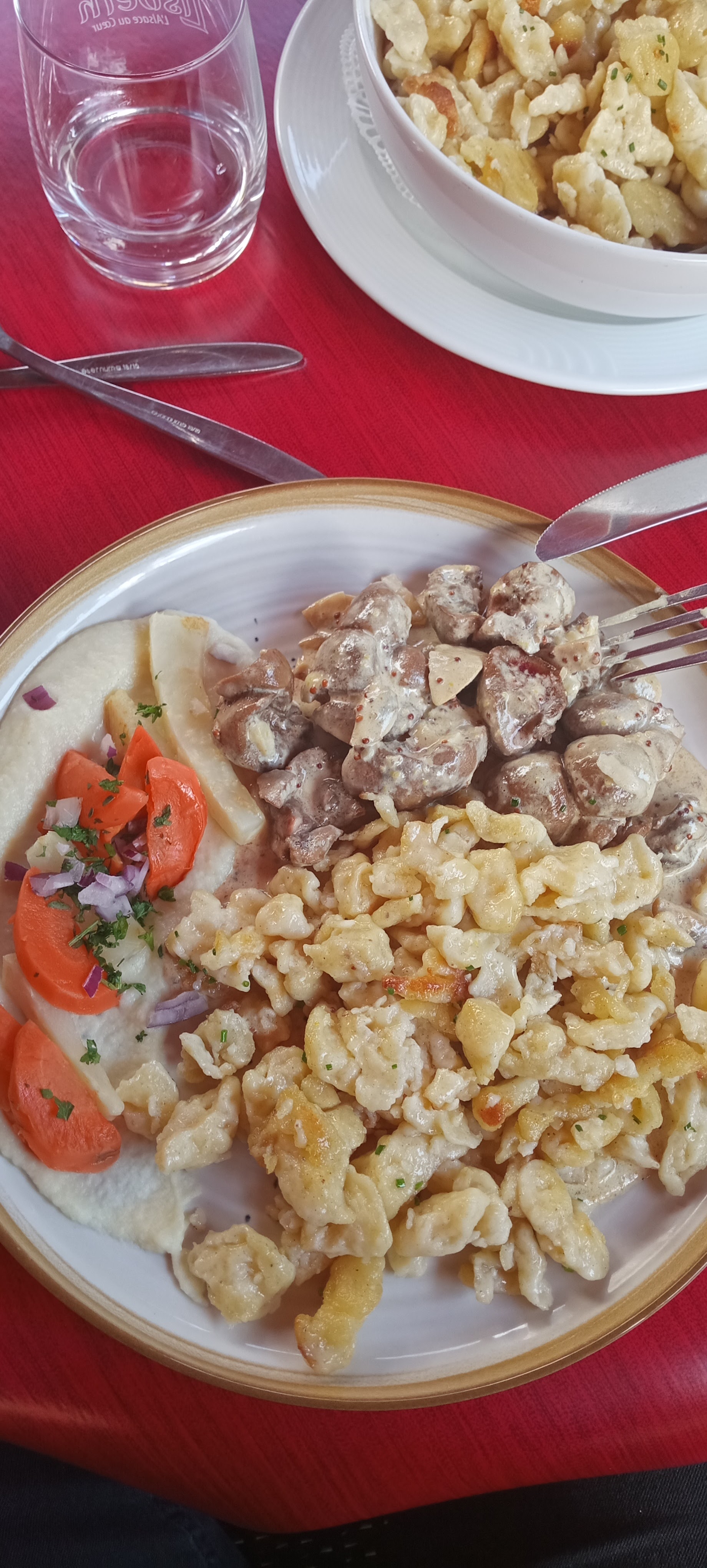 Une adresse que je fréquente depuis plusieurs années qui a, certes, eu des hauts et des bas comme tous les restaurants mais qui propose une cuisine de très bon niveau pour ce type d'endroit. Nous étions trois à table et tout le monde était très satisfait, sachant que tous trois sommes des gourmets. Pour mon entrée j'ai pris une simple salade alsacienne au gruyère et cervelas préparée avec des produits de qualité, puis des rognons sauce moutarde à l'ancienne et champignons qui étaient délicieux, j'avais demandé une cuisson à point qui était parfaitement exécutée, avec en accompagnement des spaetzle très corrects également. Pour faire passer tout cela une bouteille de Riesling de chez Mure à Rouffach pour 32 Euros, un prix très raisonnable, seul bémol le vin n'était pas assez frais et il a fallu attendre longtemps pour qu'il refroidisse dans le saut à glace, sinon que du bonheur. J'y retournerai pour essayer leur choucroute aux rois poissons.
