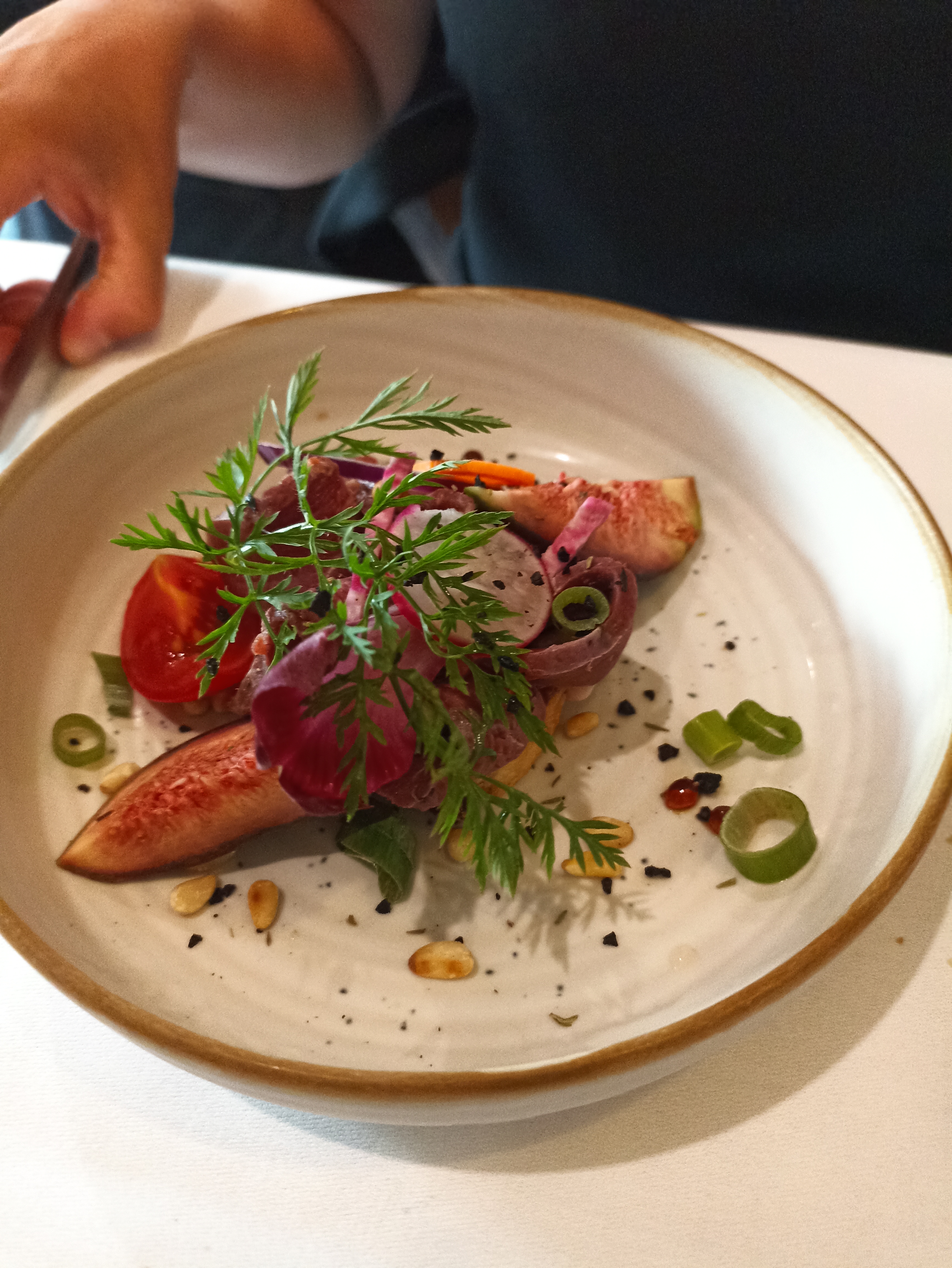 Très bien mangé les assiettes aussi bonnes que jolies bon acceuil depuis le temps que l on passe devant pas déçu de s être arrêté on y retournera avec plaisir