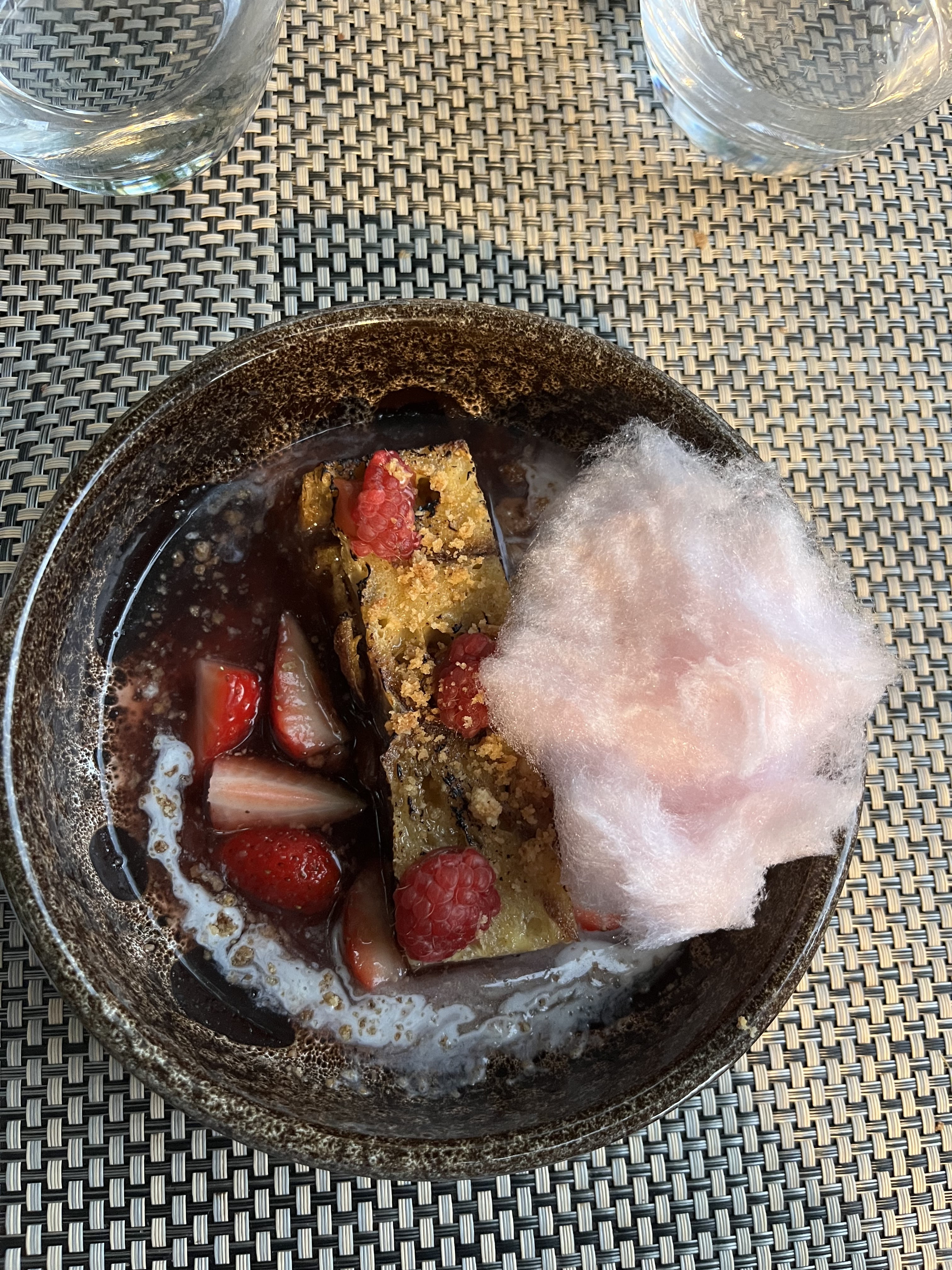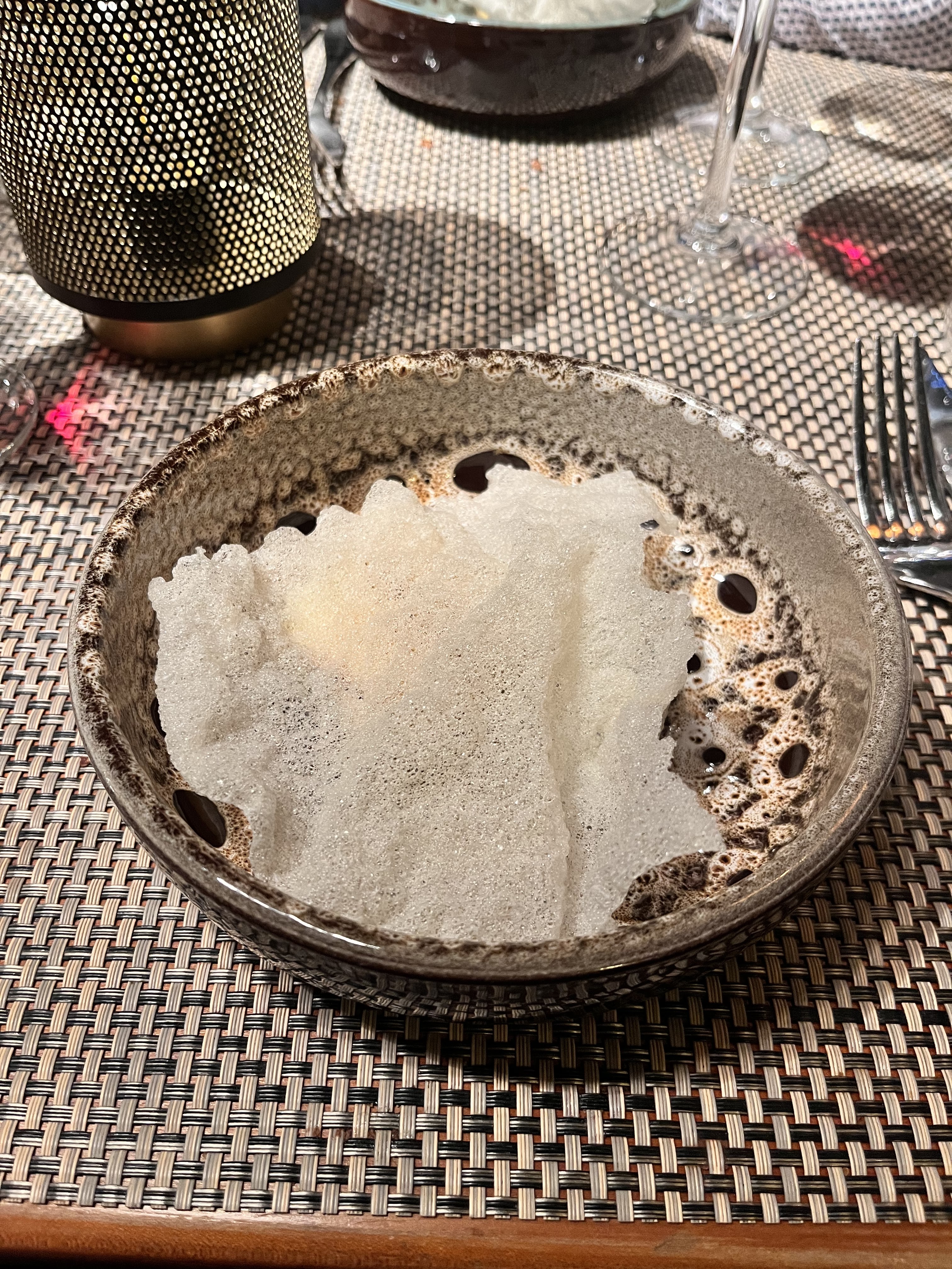 Une prestation en dessous du niveau attendu pour un restaurant du guide Michelin. la plancha un flop; pain sec et dur, foie gras coulant. Jambon ibérique banal et du macro étonnamment sur une planche à viande. Un ensemble faisant moins de 200g pour 2 personnes pain compris. Un doute plane sur la fraîcheur et qualité du cœur d’artichaut (en boîte ou sous vide). Erreur de commande; poulet reçu à la place du filet de bœuf. Le filet est arrivé 10mn en retard, cru et nerveux; renvoyé en cuisine! Le saucier à la main lourde sur le sel. Le chef faisant le tour du restaurant mais ne s’arrête pas à toutes les tables, très moyen! Le tout pour une addition salée.
