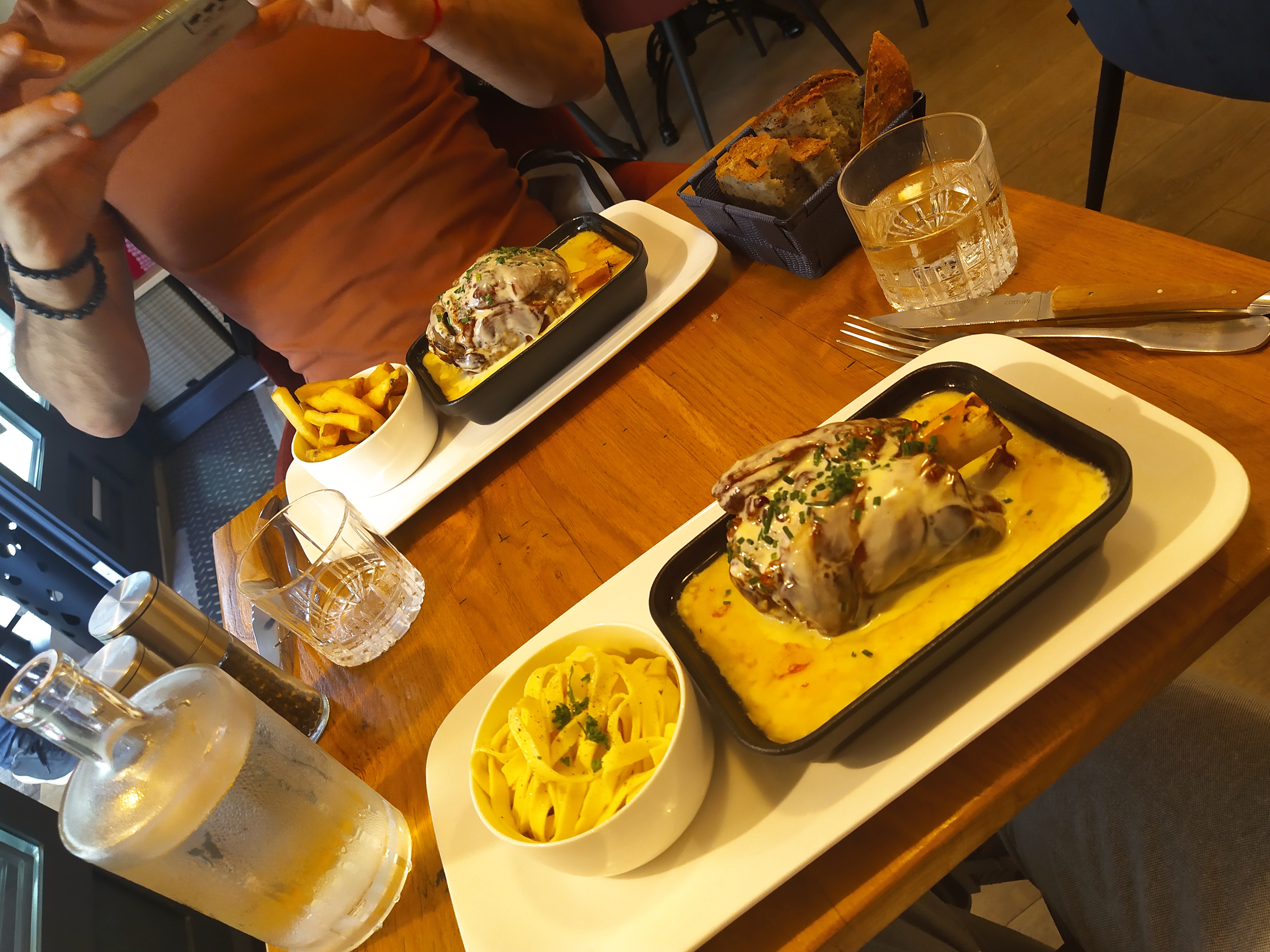 Nous avons été ravis de notre soirée dans ce restaurant ! Les plats étaient délicieux, nous avons pris un boeuf bourguignon (un des meilleur que j'ai jamais mangé) ainsi qu'un jarret de porc cuit à la perfection ! En dessert deux brioches perdues divinement bonnes !! Et le service a été parfait, les serveurs ont été adorables et très attentionnés ! Je recommande vivement 😃