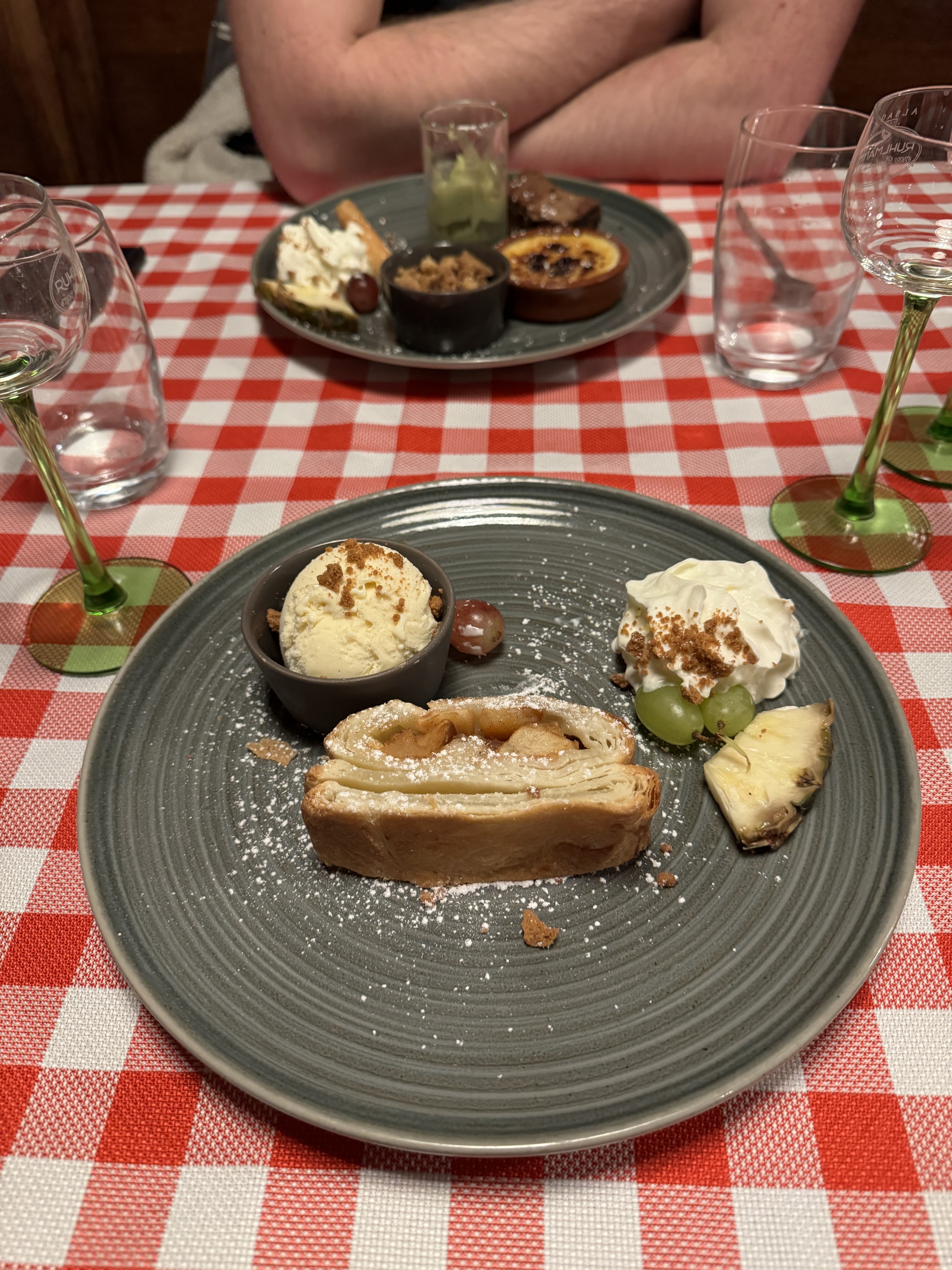Test de la soirée moules frites du jeudi soir, une belle découverte les moules étaient bonnes. Nous avons continué avec un dessert qui n’était pas exceptionnel (crème brûlée), nous ne reprendrons pas de dessert à l’avenir.