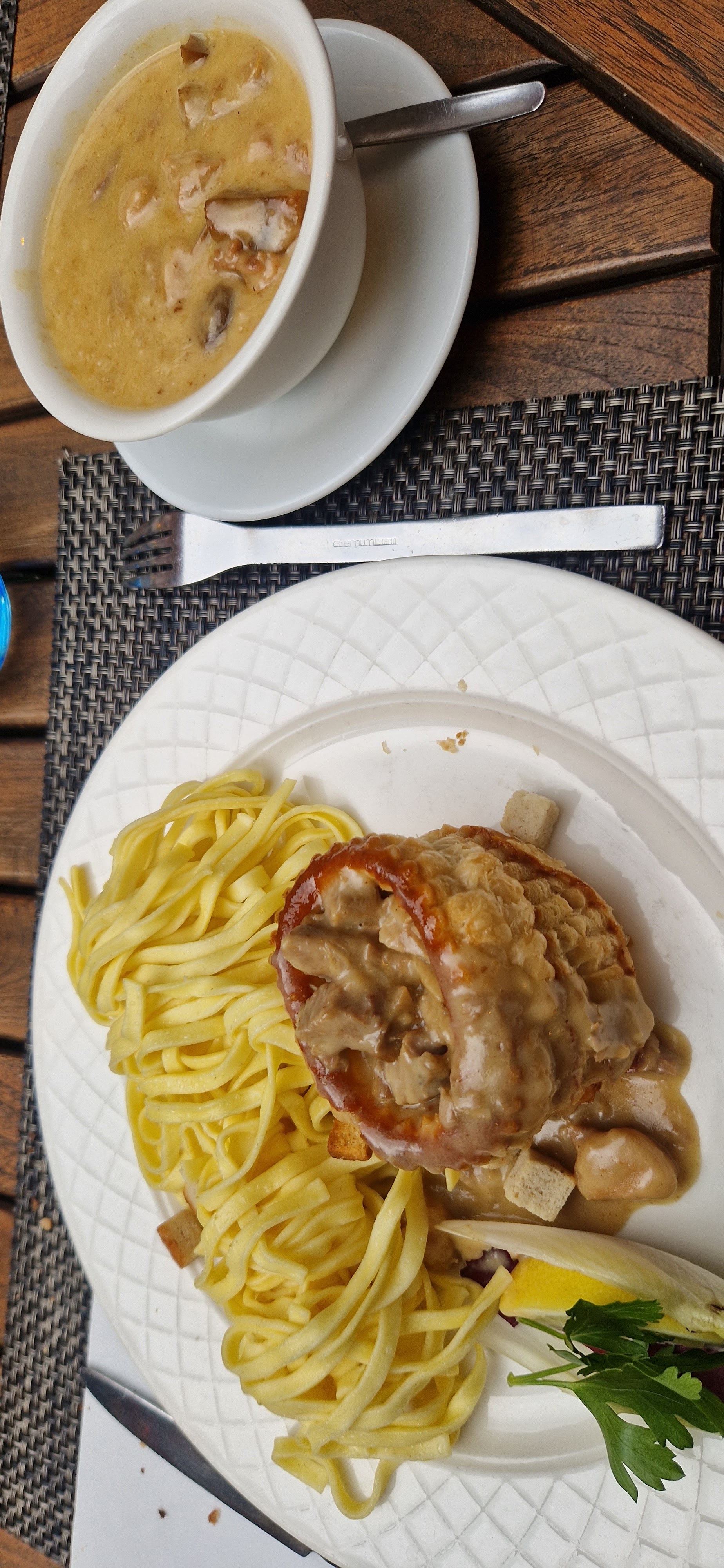La nourriture n'était malheureusement pas très convaincante. Ce restaurant nous a été recommandé par des connaissances, mais il n'a pas livré la marchandise. Nous avons commandé trois escalopes viennoises qui étaient très bonnes, avec des frites au milieu. La tarte flambée était bonne, mais rien de spécial. Mon jarret de porc avec spätzle, qui était proposé comme spécialité de la maison, était pourtant très bon. Le cordon bleu avait un goût de cellule de refroidissement et n'était pas très savoureux. Nous n'avons pas été servis très chaleureusement et le restaurant est plutôt bruyant et pas très accueillant pour les touristes qui ne parlent pas français.