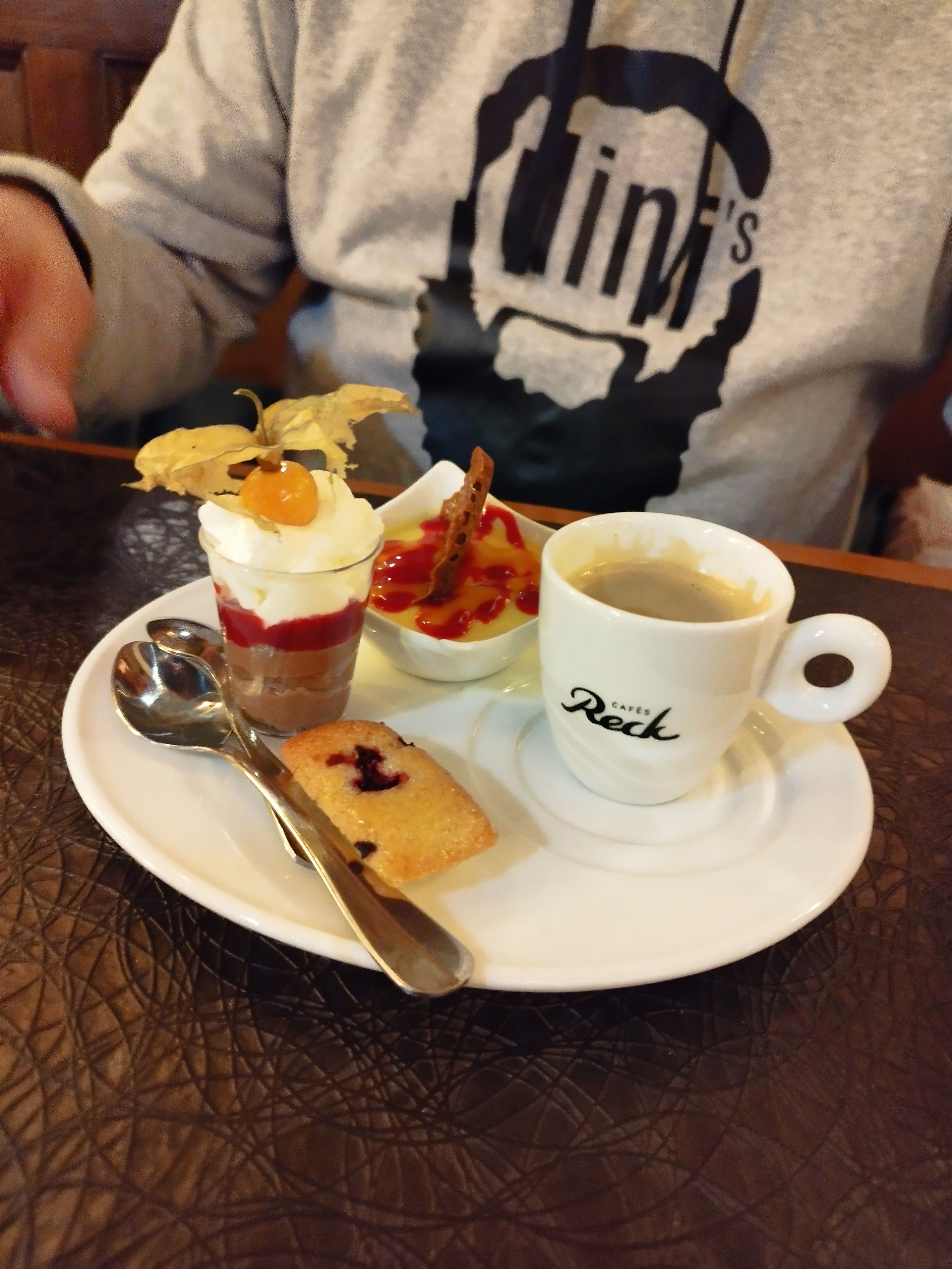 Tartes flambées et desserts très bons! Pas eu le temps de prendre des photos des tartes. Un serveur très aimable et l’autre à queue de cheval nettement moins … mais globalement satisfaits
