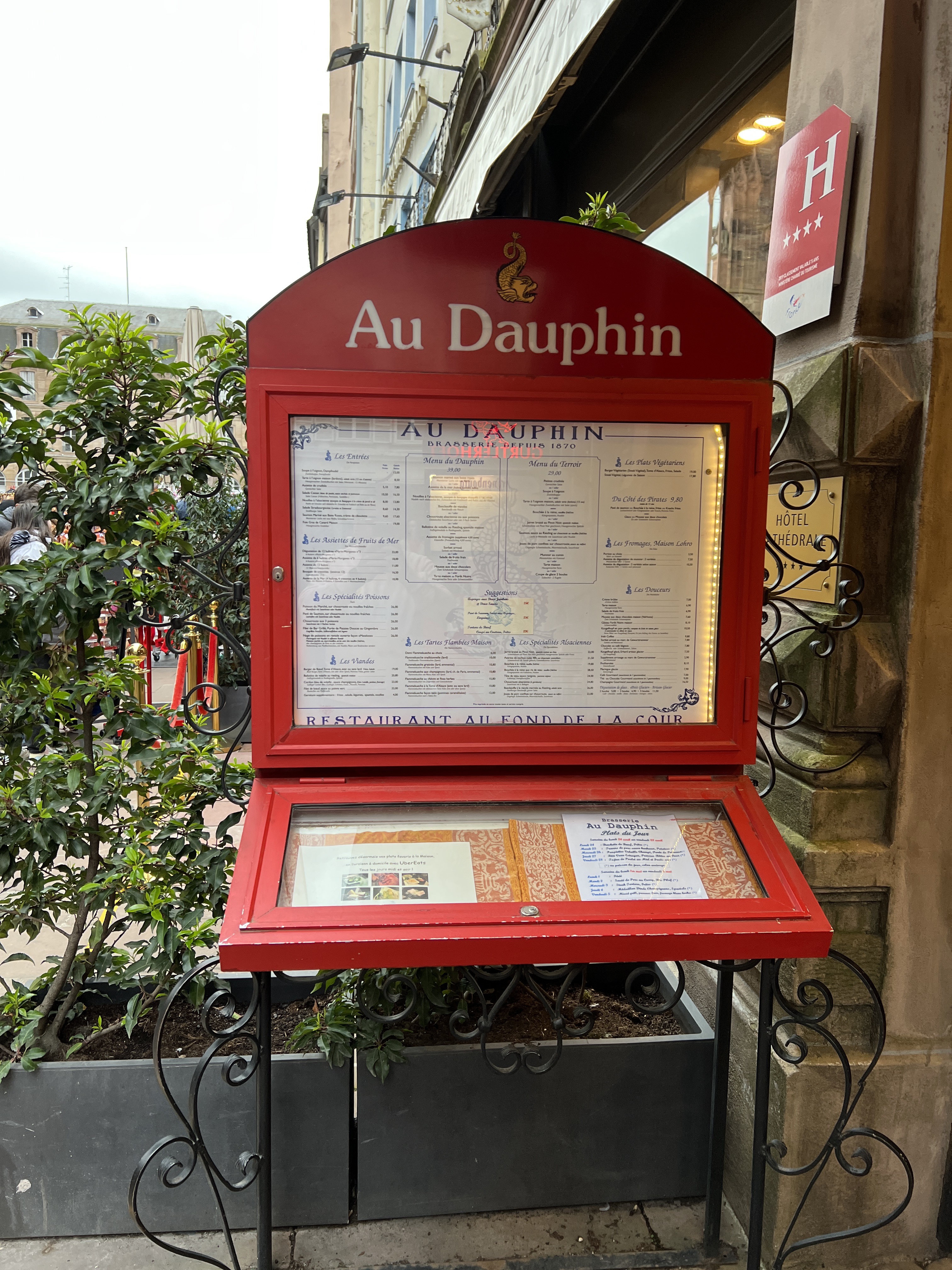 Voici toutes les informations sur le Restaurant français Restaurant Au Dauphin qui ce trouve au 13 Pl. de la Cathédrale, 67000 Strasbourg (67). Sur cette fiche vous trouverez les photos, l'adresse, les horaires d'ouverture, le numero de téléphone et les avis clients.Vous pouvez églement rédiger un avis si vous le souhaitez en bas de page.