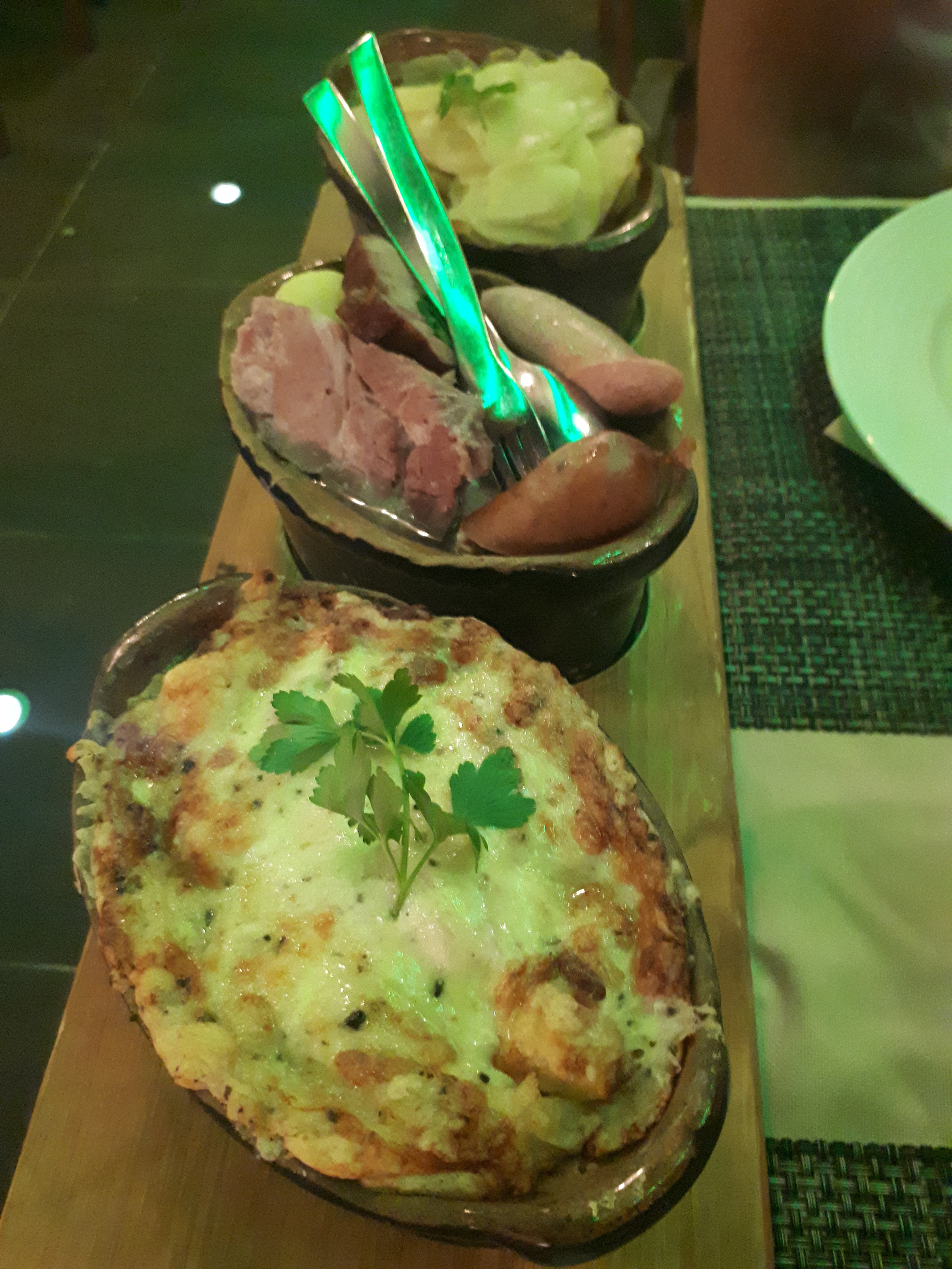 Ne perdez pas votre temps et votre argent avec ce restaurant. Je suis venue dîner avec ma famille pour le réveillon de noël. Budget de 500€ pour 4 personnes et 1enfant Un problème à chaque étape du repas. 1h d’attente pour qu’on prenne notre commande. Le restaurant nous avait assuré qu’il n’y aurait aucune trace de porc…les amuses bouches étaient avec du jambon de porc. Après plusieurs relances aux serveurs et une longue heure d’attente l’entrée arrive et erreur sur celle de l’enfant, il reçoit du saumon gravlax au lieu de fumé. A nouveau oublié par les serveurs, nous les relançons encore. Le plat arrive enfin, déception gustative. Cela faisait déjà 3h30 que nous étions arrivés, l’attente étant trop longue pour le dessert nous avons écourté le dîner et prit le reste à emporter. De plus les serveurs ne savent pas de quoi ils parlent, sauf 1, bon courage à lui. Aucun geste commercial compensatoire n’a été fait
