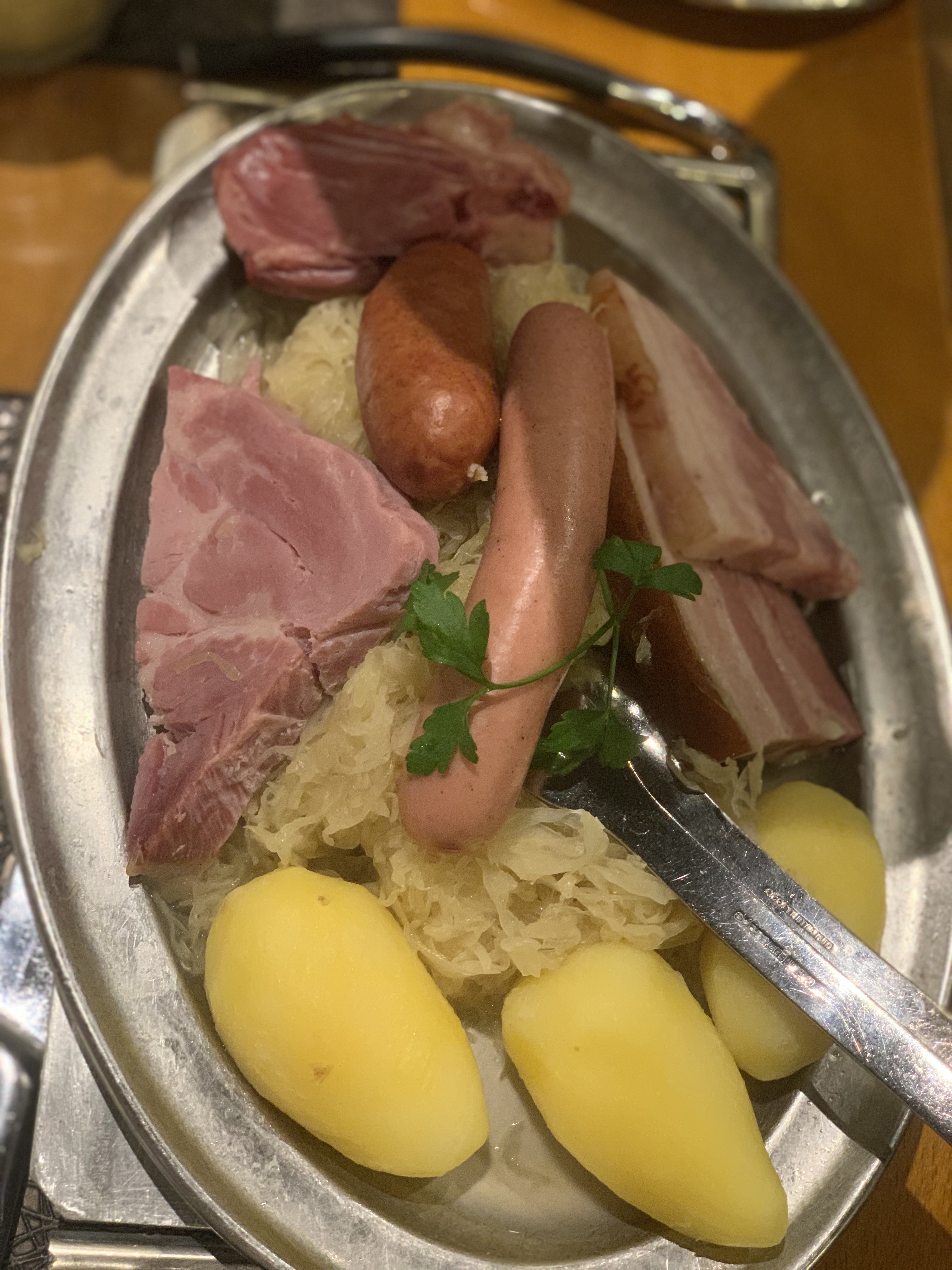 Très bonne expérience. La choucroute et le jarret étaient délicieux et copieux. Le service rapide et aimable (surtout à l'accueil). Déception cependant sur le dessert, les profiteroles étaient très secs et sans intérêt. Pensez à réserver, pas mal de monde le soir !