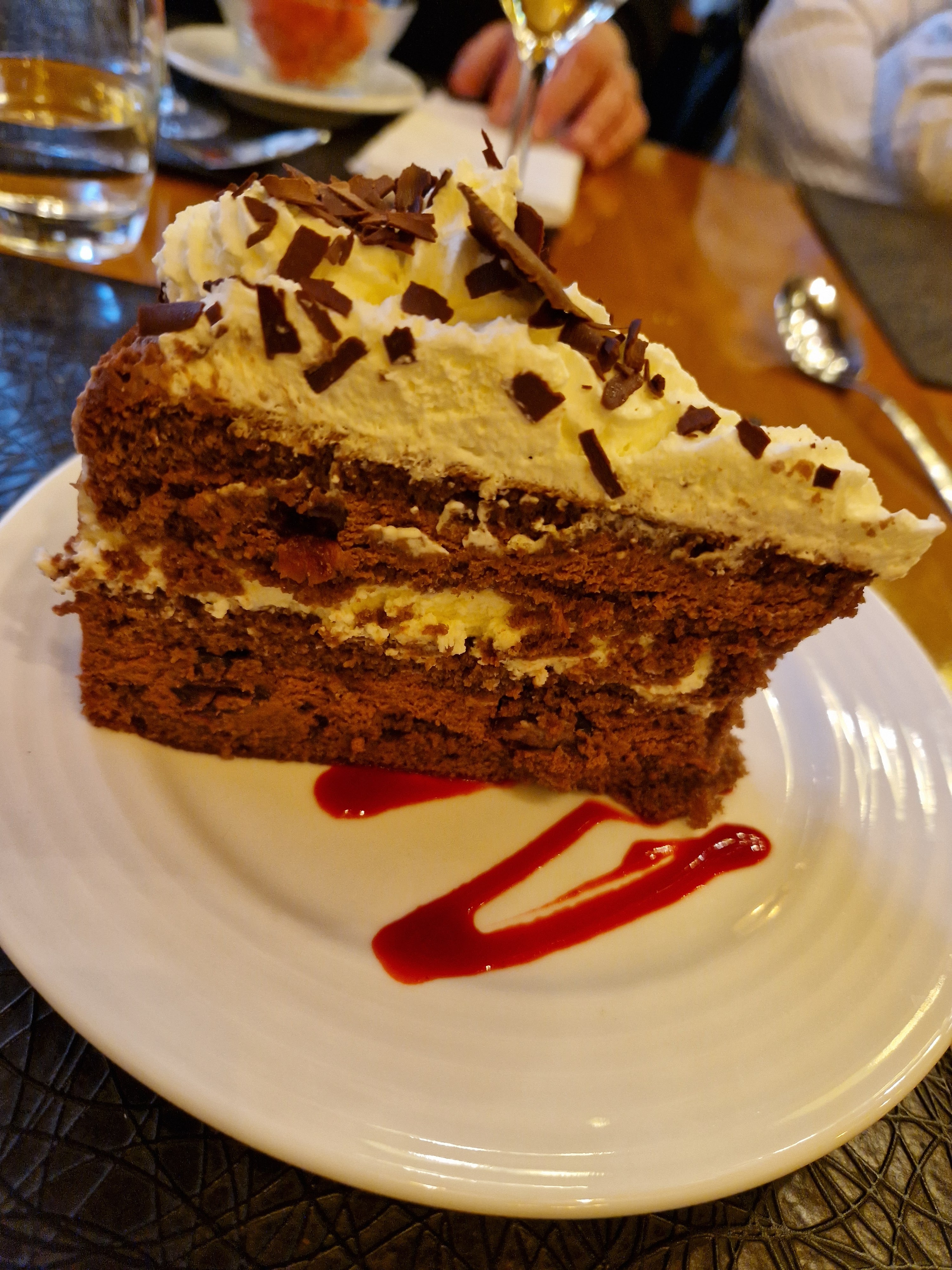 Personnel très gentil et disponible ! Très belle entrée sous les déco de Noël, Jarret de porc incroyable que j’ai goûté dans l’assiette de mon conjoint bien que le cerf était très bon aussi. Voisin de table agréable bonne ambiance Je recommande !