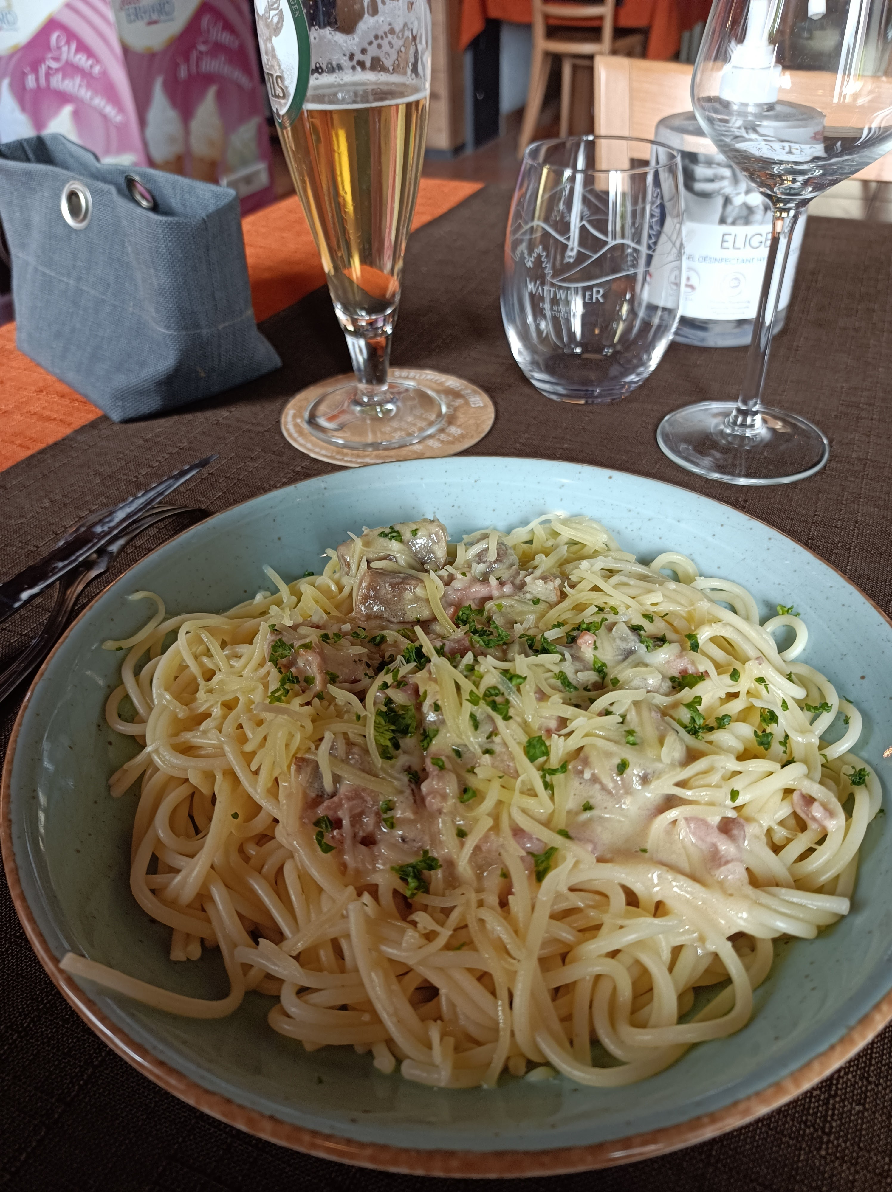 Accueil tip top , menu du jour très bon (salade italienne et carbonara en ce mardi midi), portion bien généreuse ! À refaire, merci à très vite 🌞