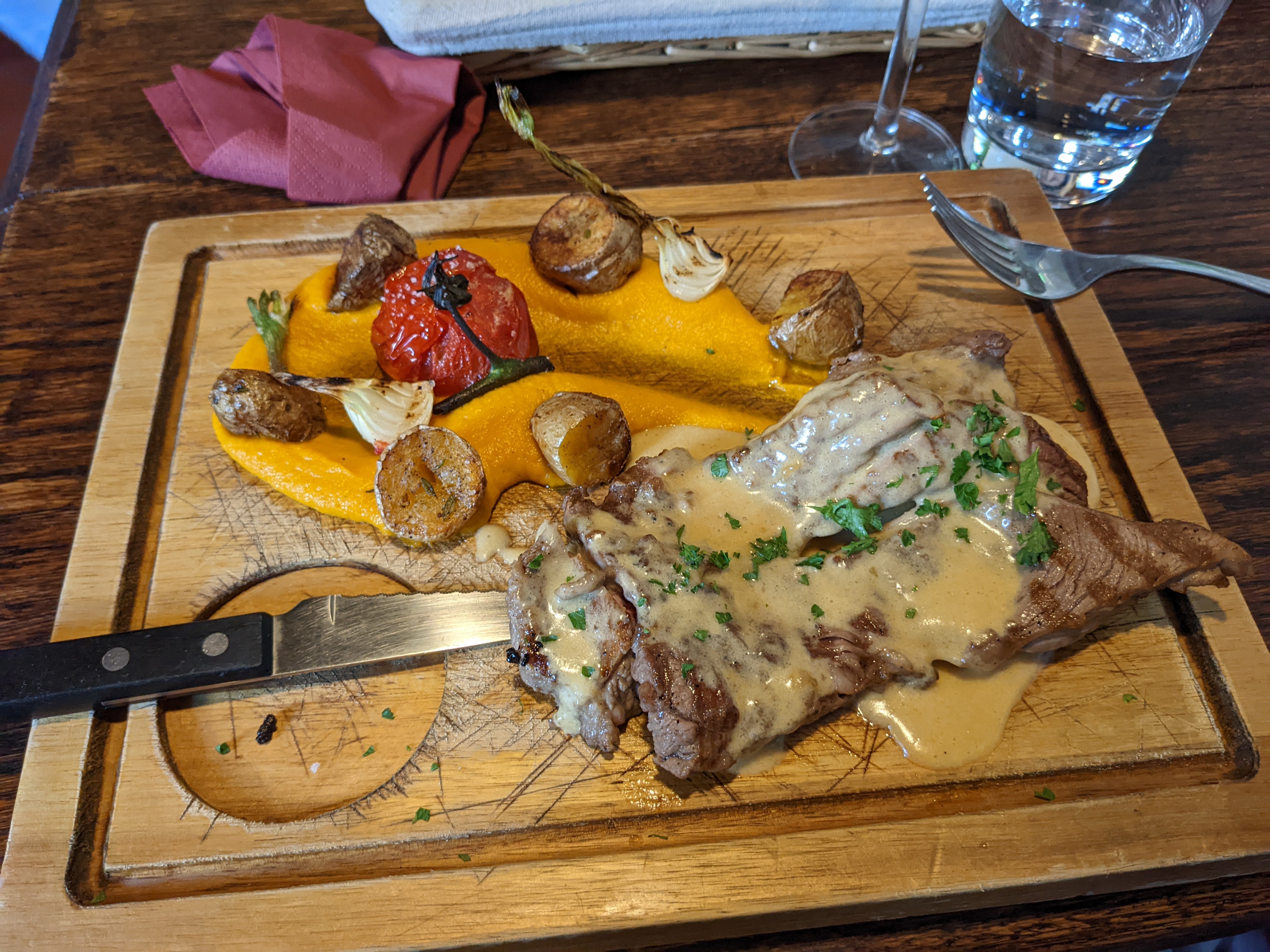 Petit restaurant sympa au coeur de la cité. Réservation prise en fin d’après-midi pour le soir même. Bon accueil, des plats typiques. Notre choix s’est porté sur un camembert au four en entrée suivi d’un cassoulet. Pas un choix très léger, certes… mais que c’était bon !!