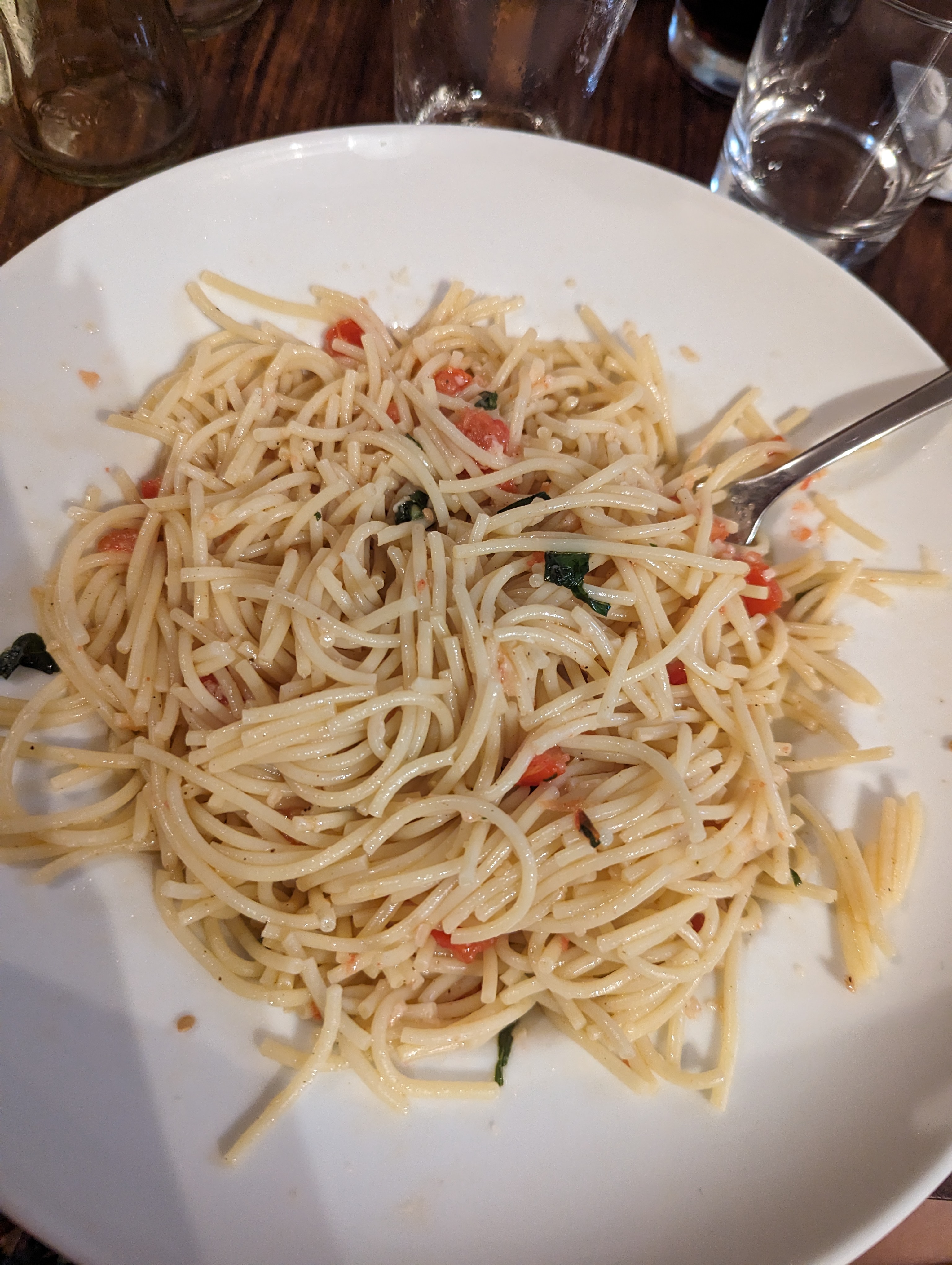 Les pizzas sont excellentes, les linguines également et la salade aux chèvres était très bien présentée. On a mangé trop vite, j'ai pas eu le temps de faire des photos de nos plats et la salle à l'étage a une super déco