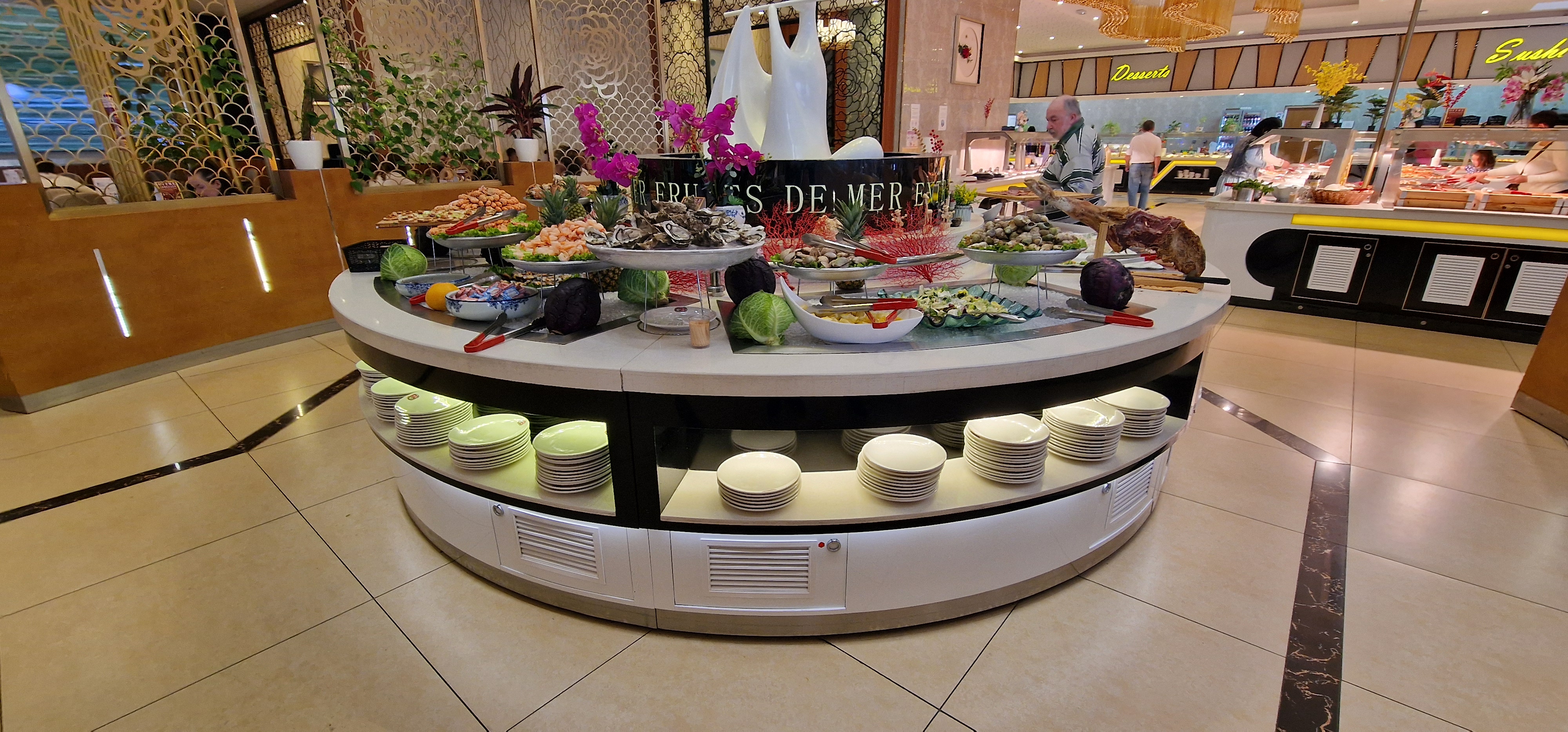 Restaurant agréable, apéritif servi grâce à un robot mais beaucoup d’aliment pas super au top… des makis avec de la sauce samouraï… une carcasse d’agneau à se servir nous mème avec que ce n’est pas très hygiénique… mais le reste est bon. Même les glaces ne doivent pas être changé à chaque fois et il y a des morceaux d’autre glaces mélangés au autres parce que l’eau de ne doit pas être changer régulièrement et les clients ne doivent pas à chaque fois nettoyer dans l’eau. Par contre beaucoup de de choix en fruits de mers et de fruits exotiques et commun. Beaucoup de viande au caramel Je pense ne pas y retourner. 24,90€ un soir trop chère pour ce que c’est