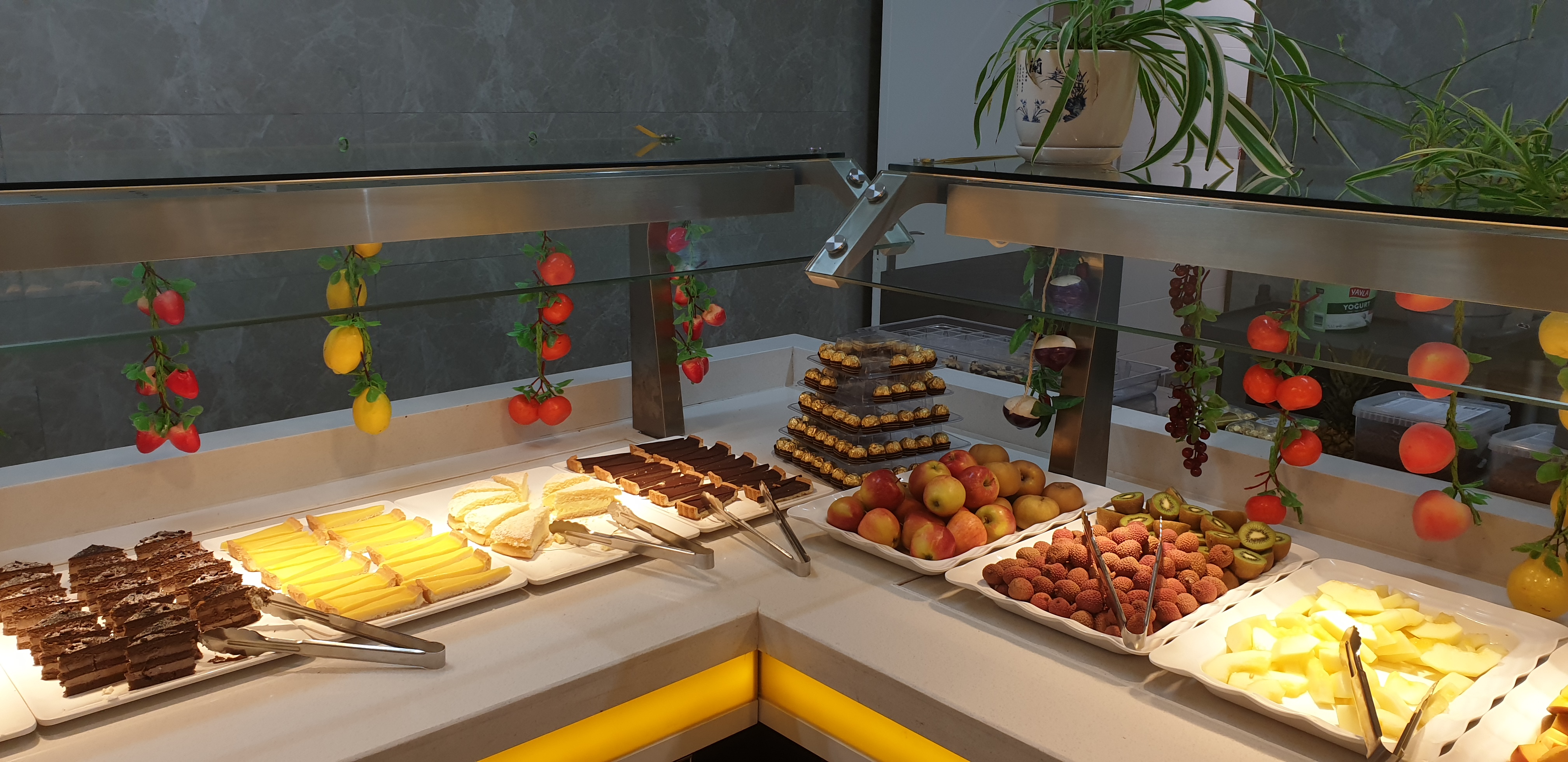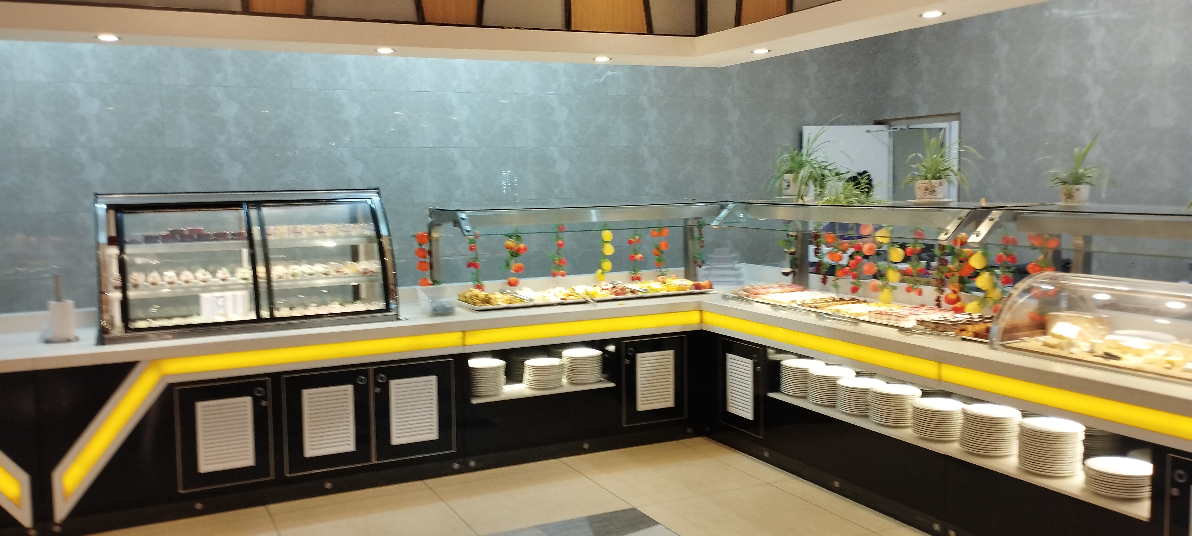 Un buffet généreux, des produits frais, un grand choix, de bons plats cuisinés. C'est propre, bien achalandé Le service de l'eau par un robot 🤖 est drôle et sympathique ! La salle est immense et jolie